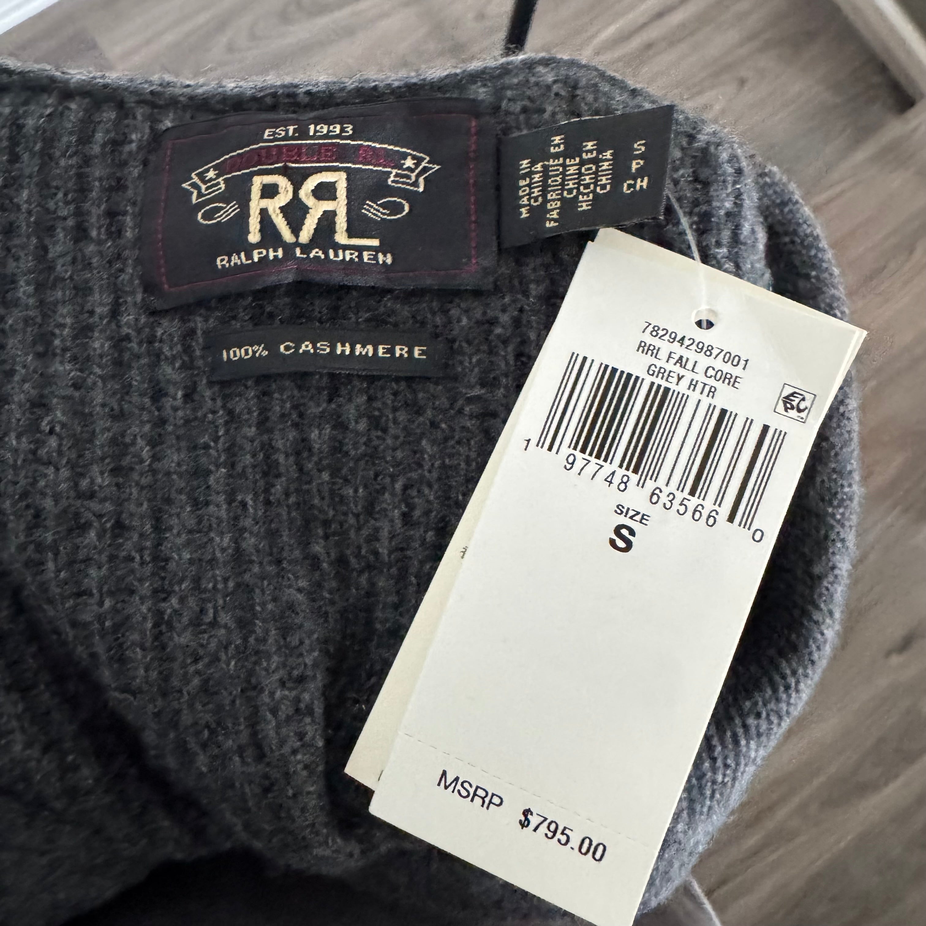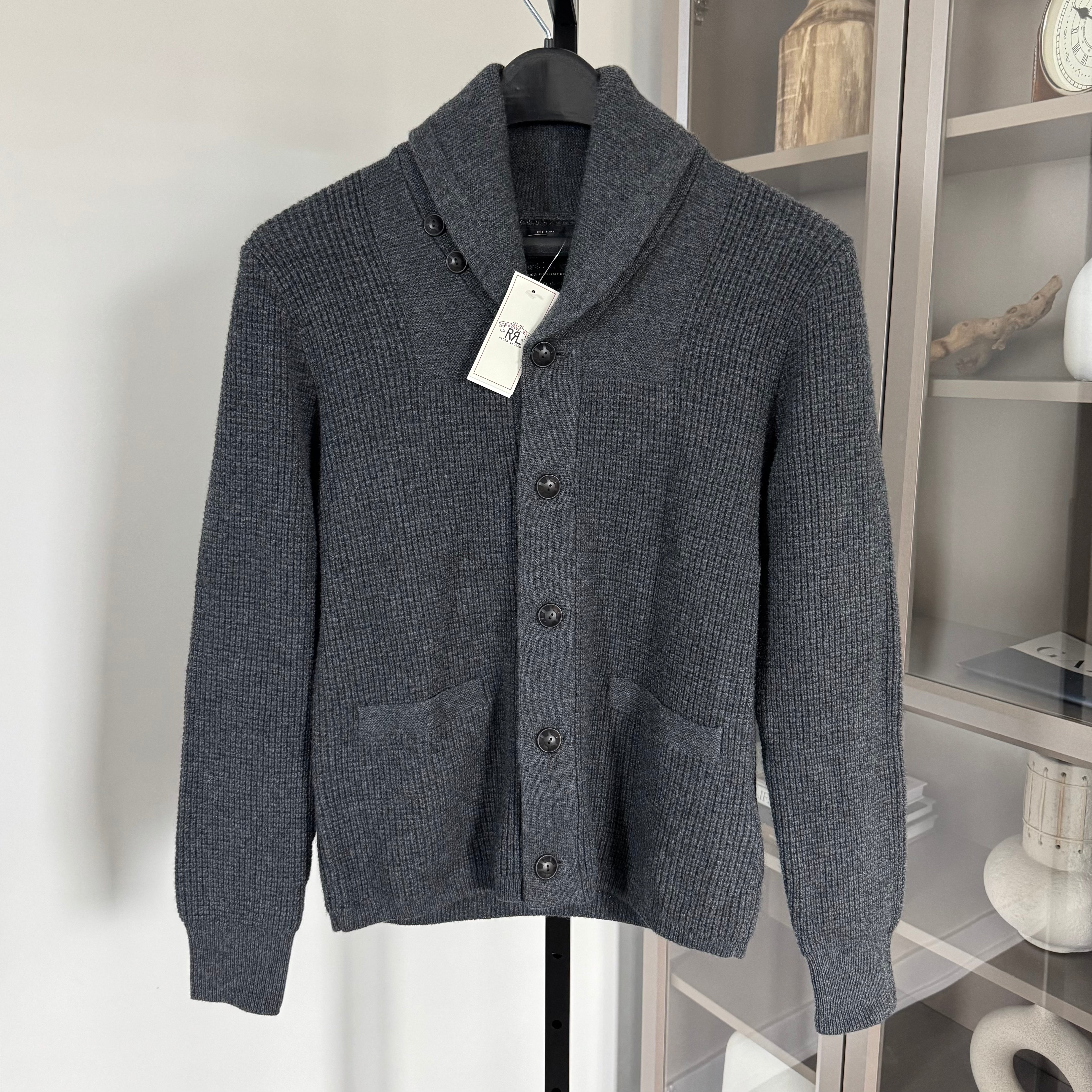 Ralph Lauren Double RL Cashmere Heather Grey Shawl Collar Sweater Cardigan
