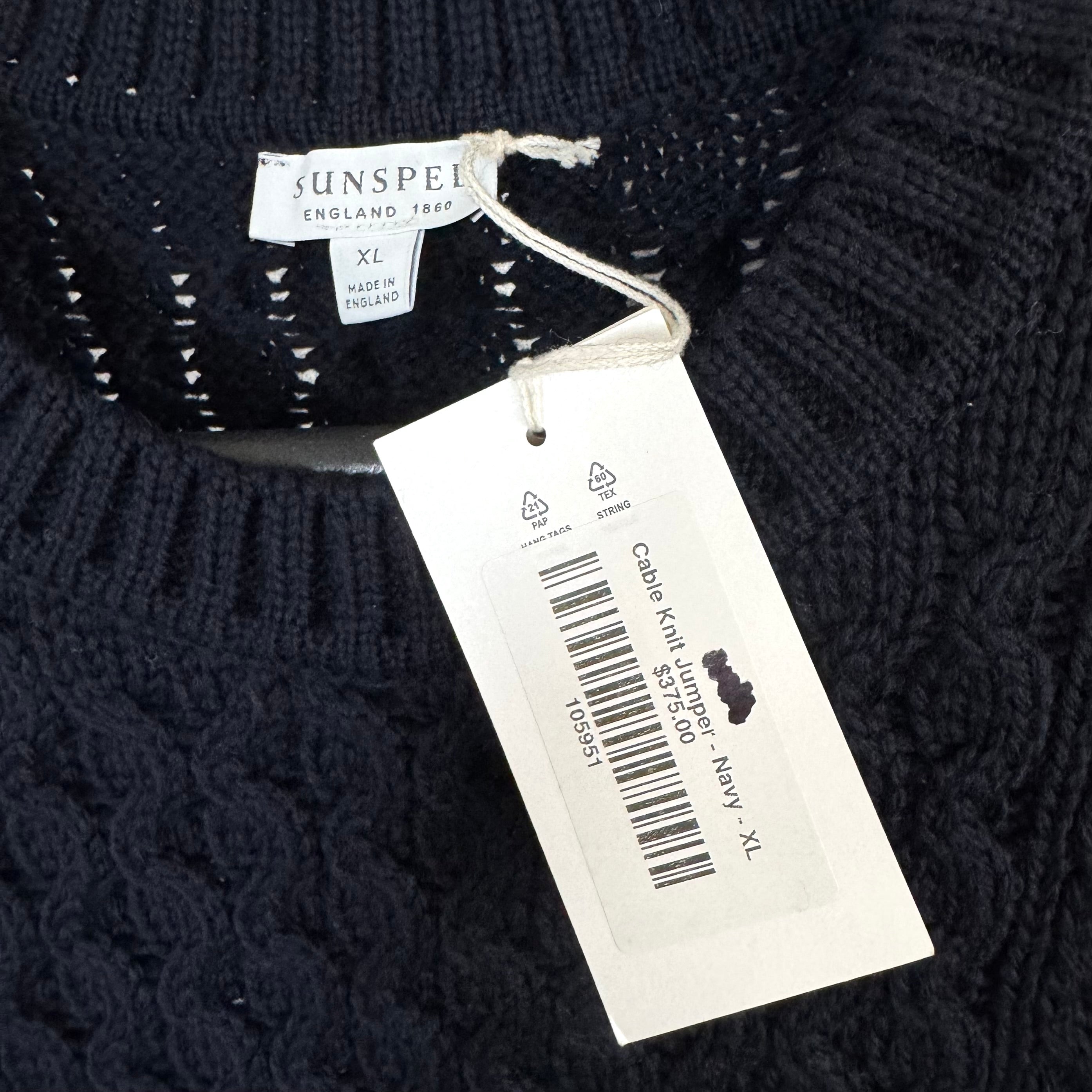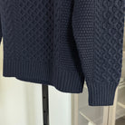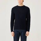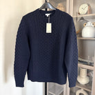 Sunspel Navy Cable Knit Fisherman Crewneck Jumper