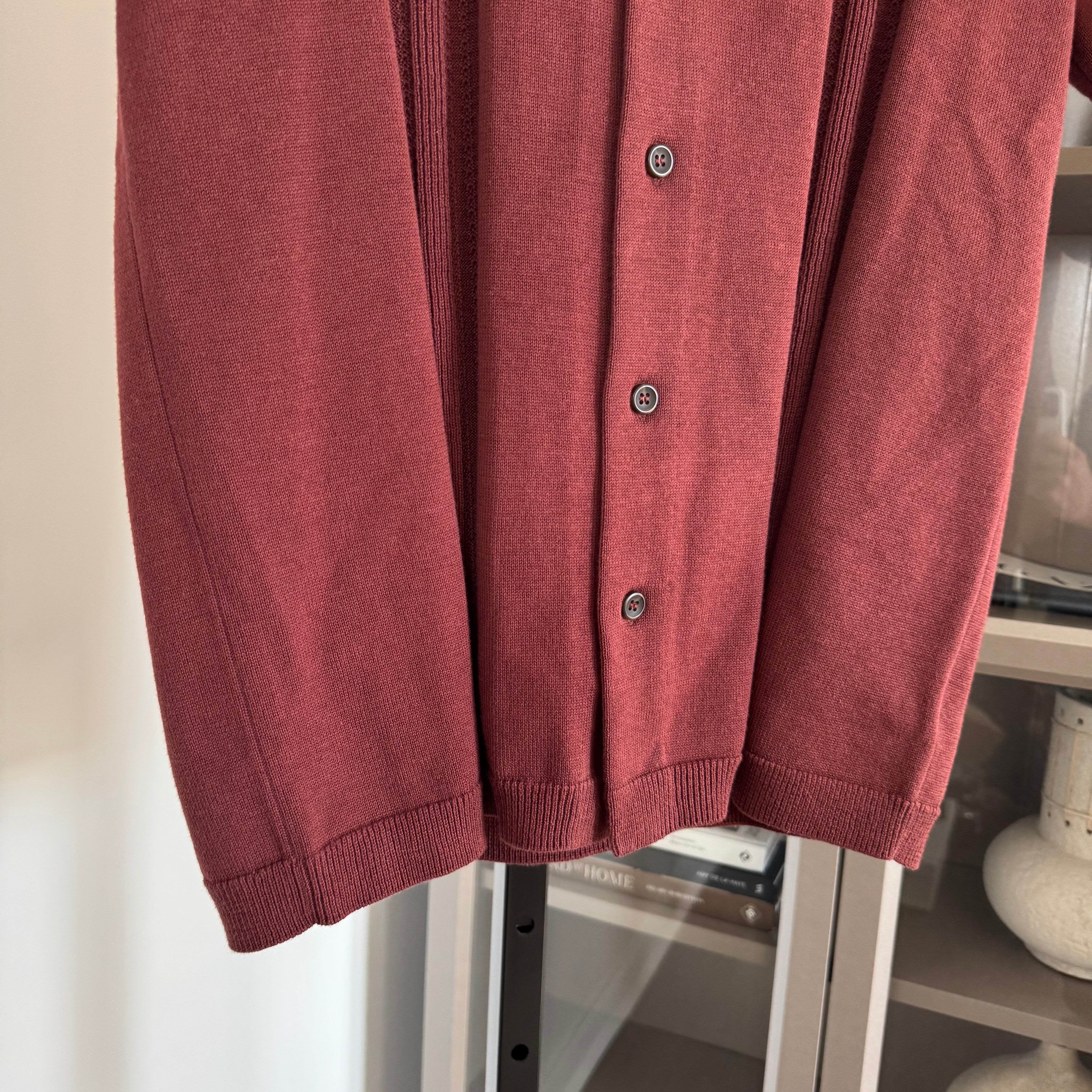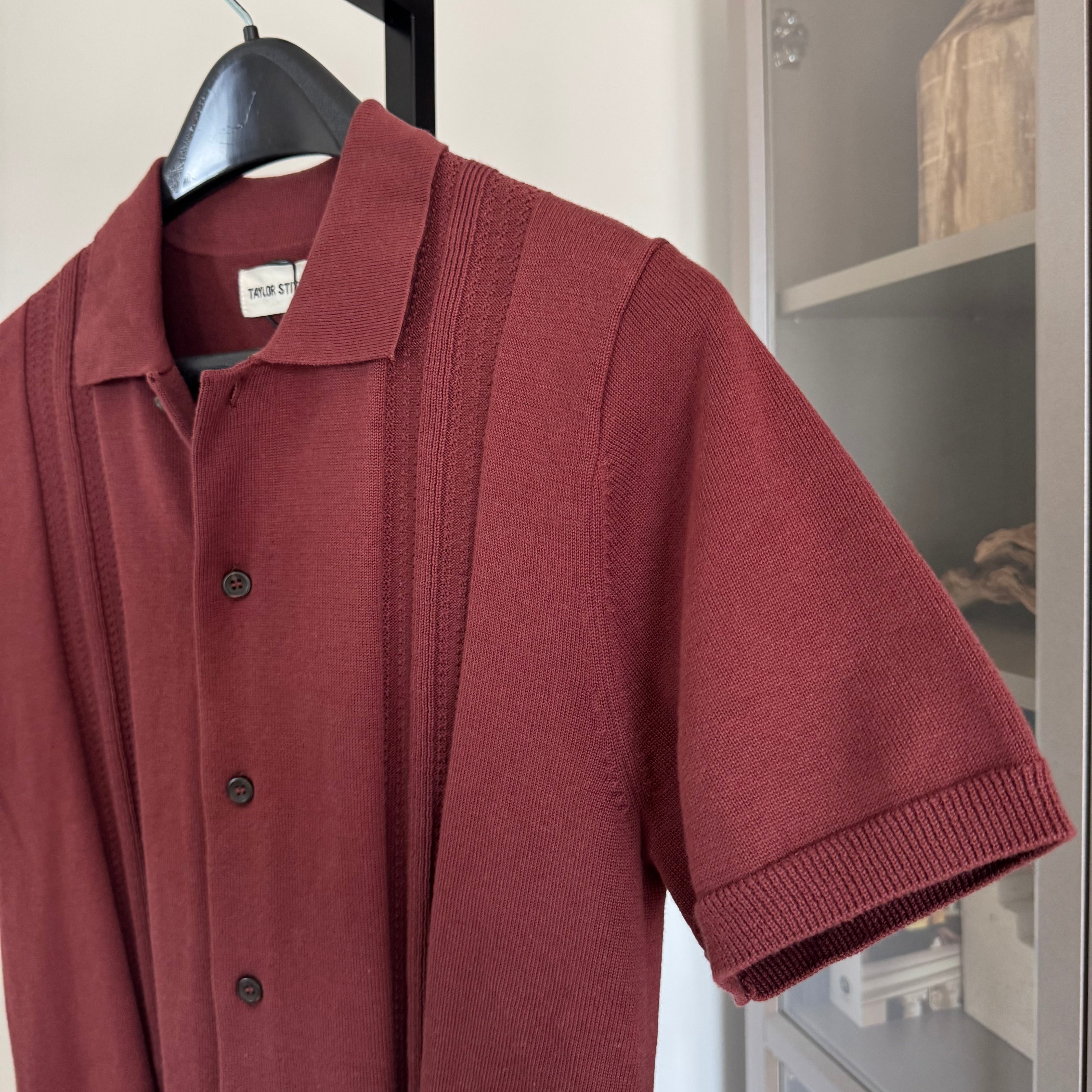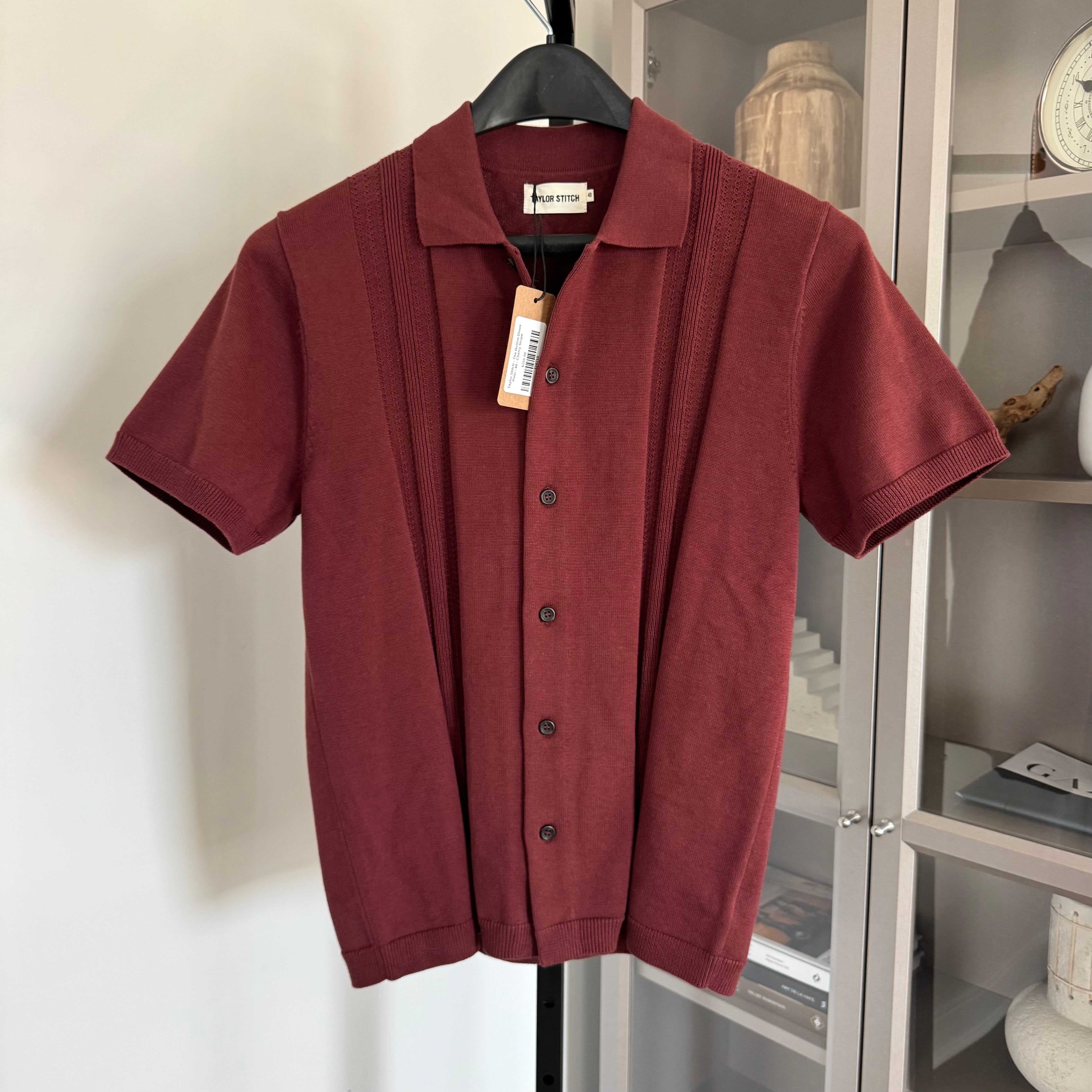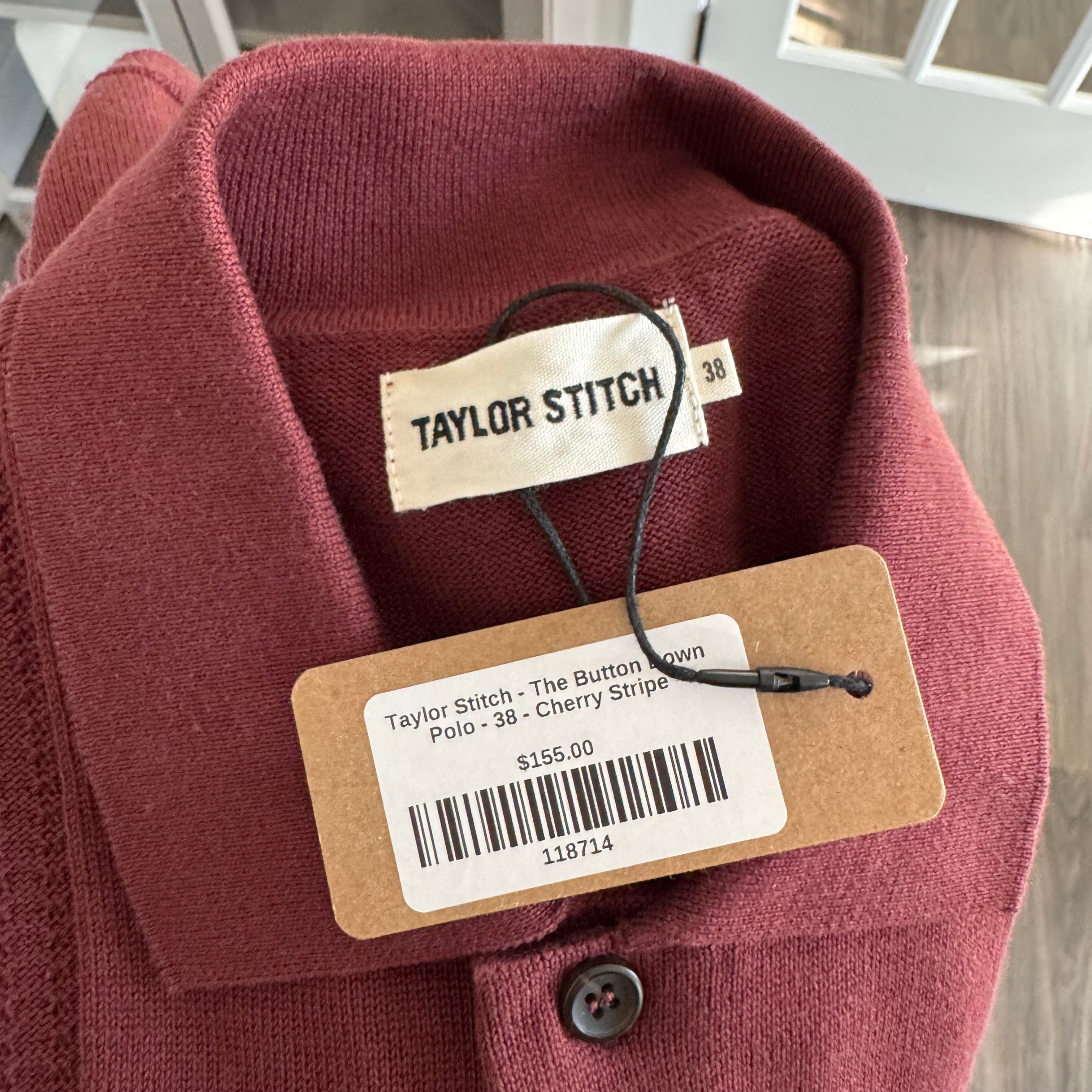 Taylor Stitch The Button Down Polo Dried Cherry Stripe Knit Sweater Shirt