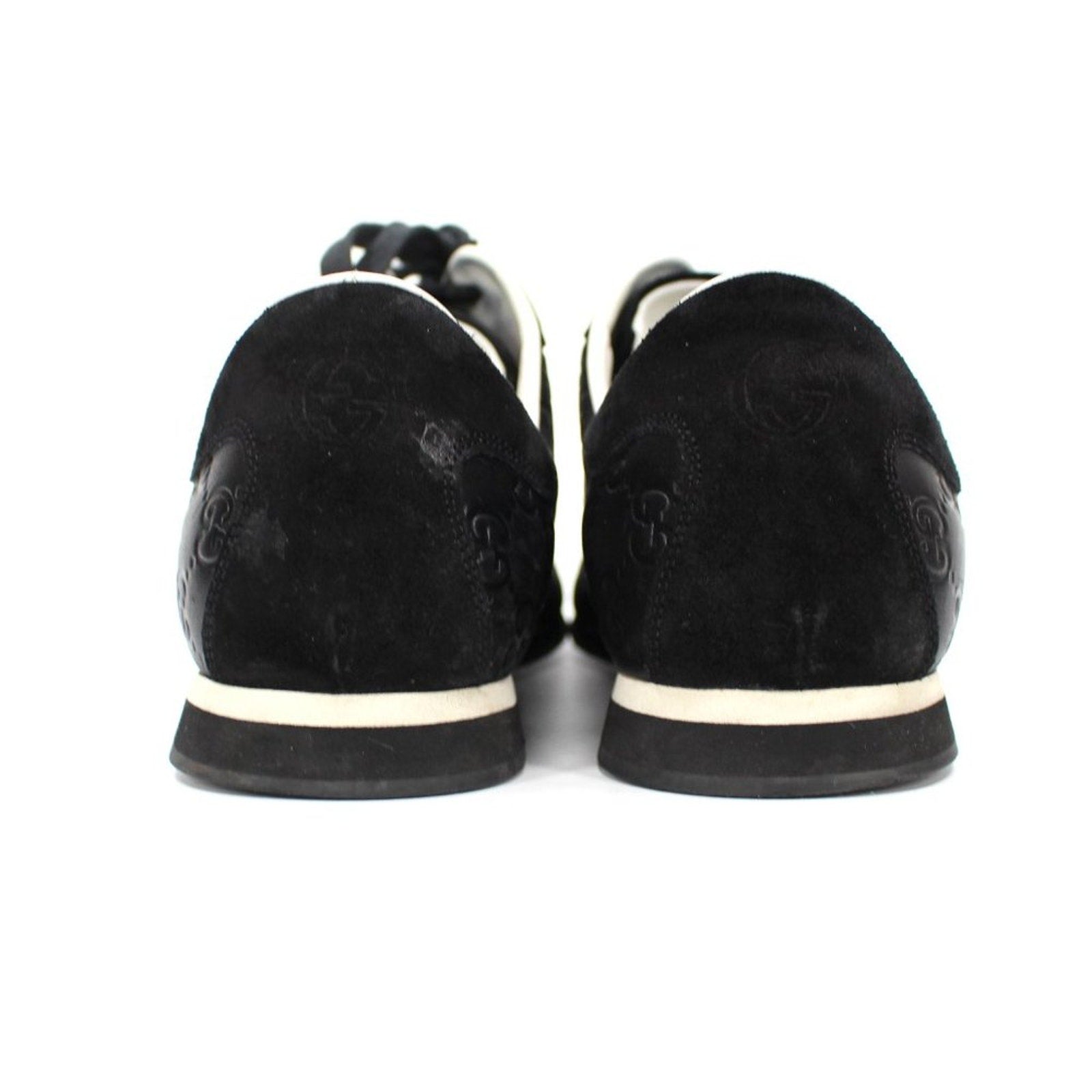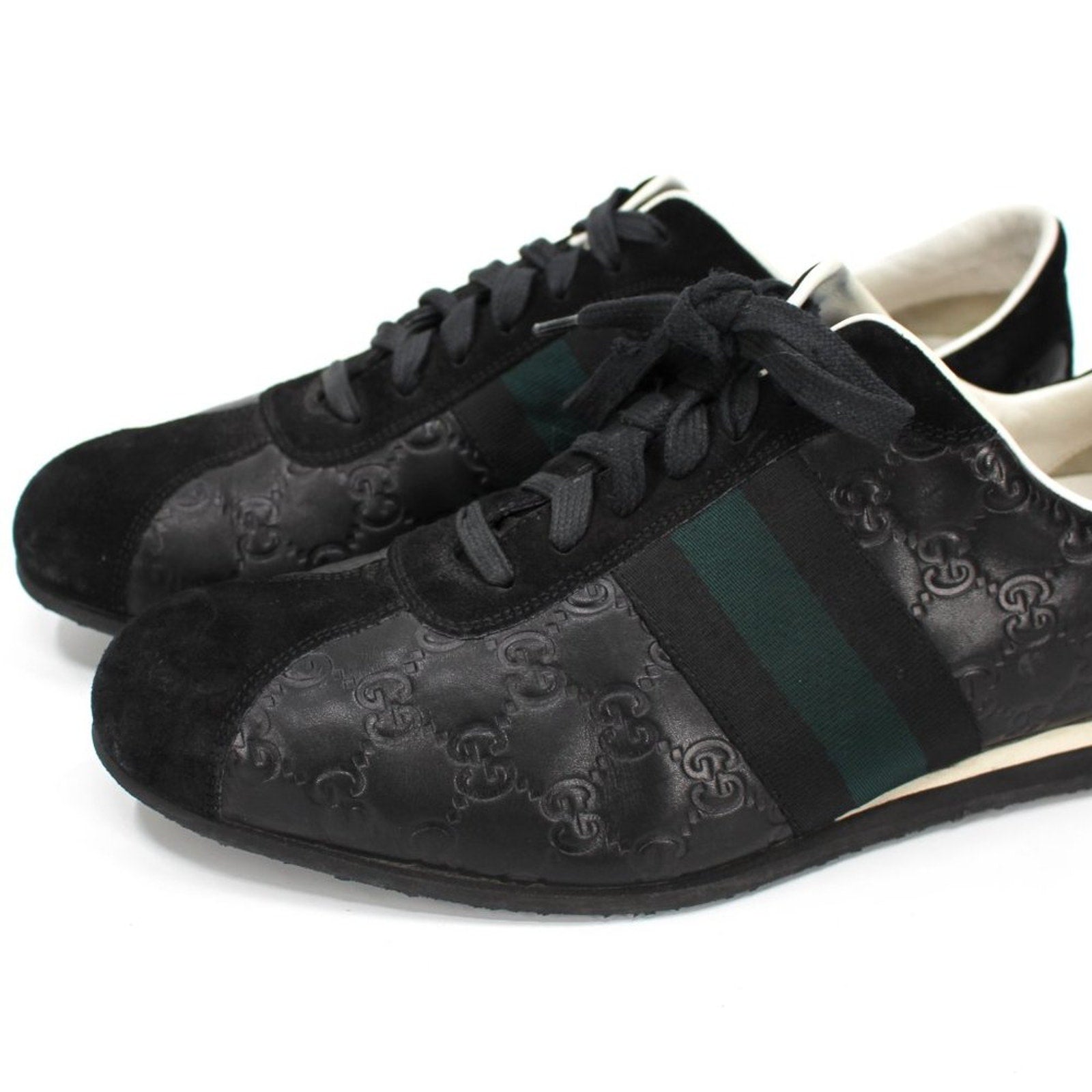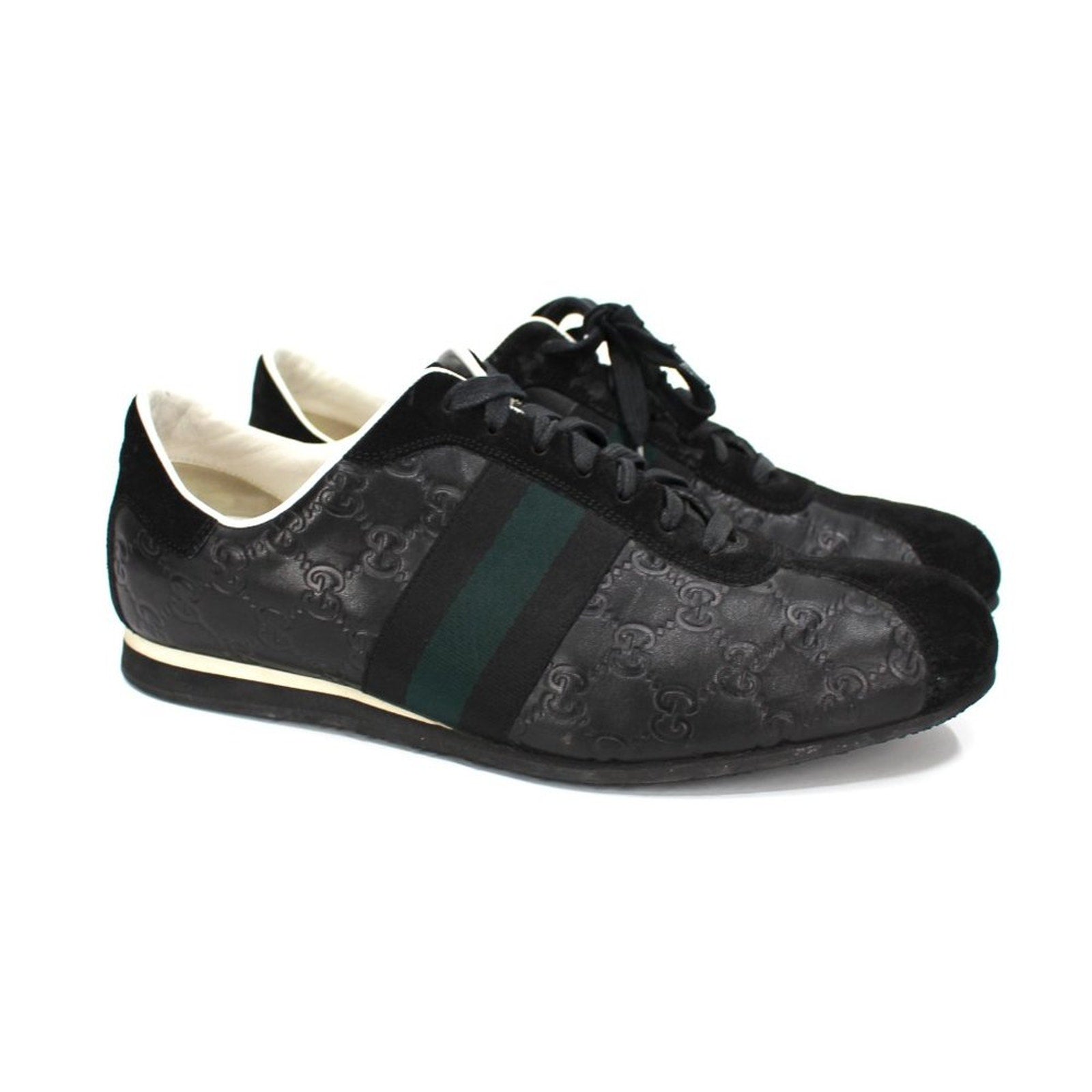 Mens Gucci Black Guccissima Leather Suede Webbed Lace Tie Casual Sneakers