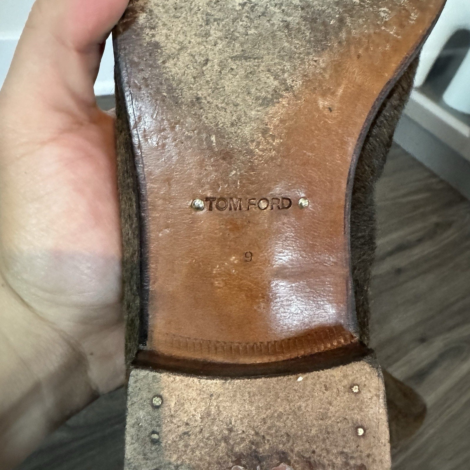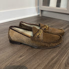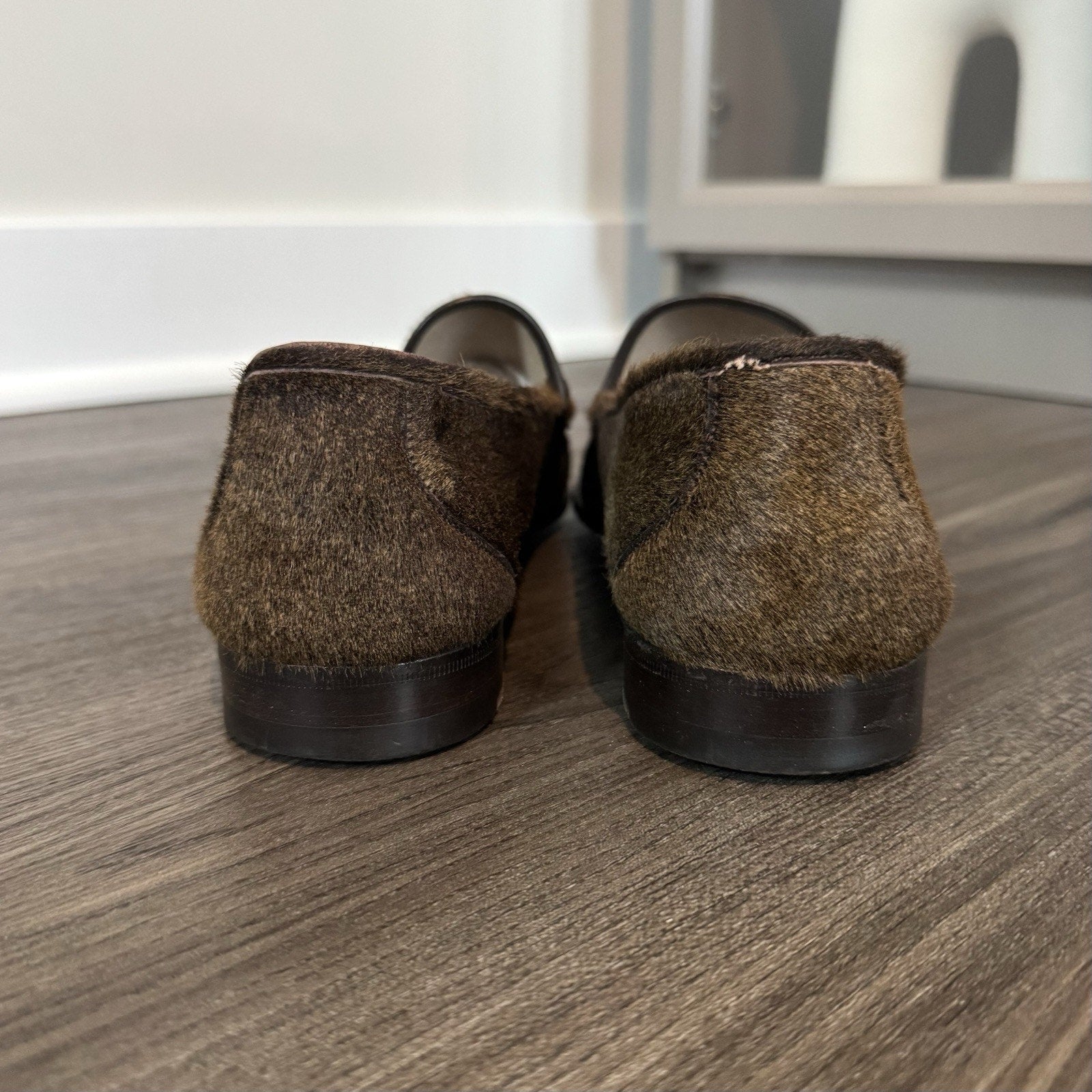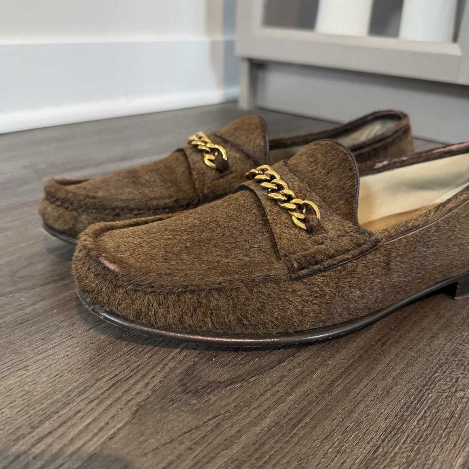 Men’s Tom Ford Brown Pony Hair Gold Tone Chainlink Moccasin Slip On Loafers