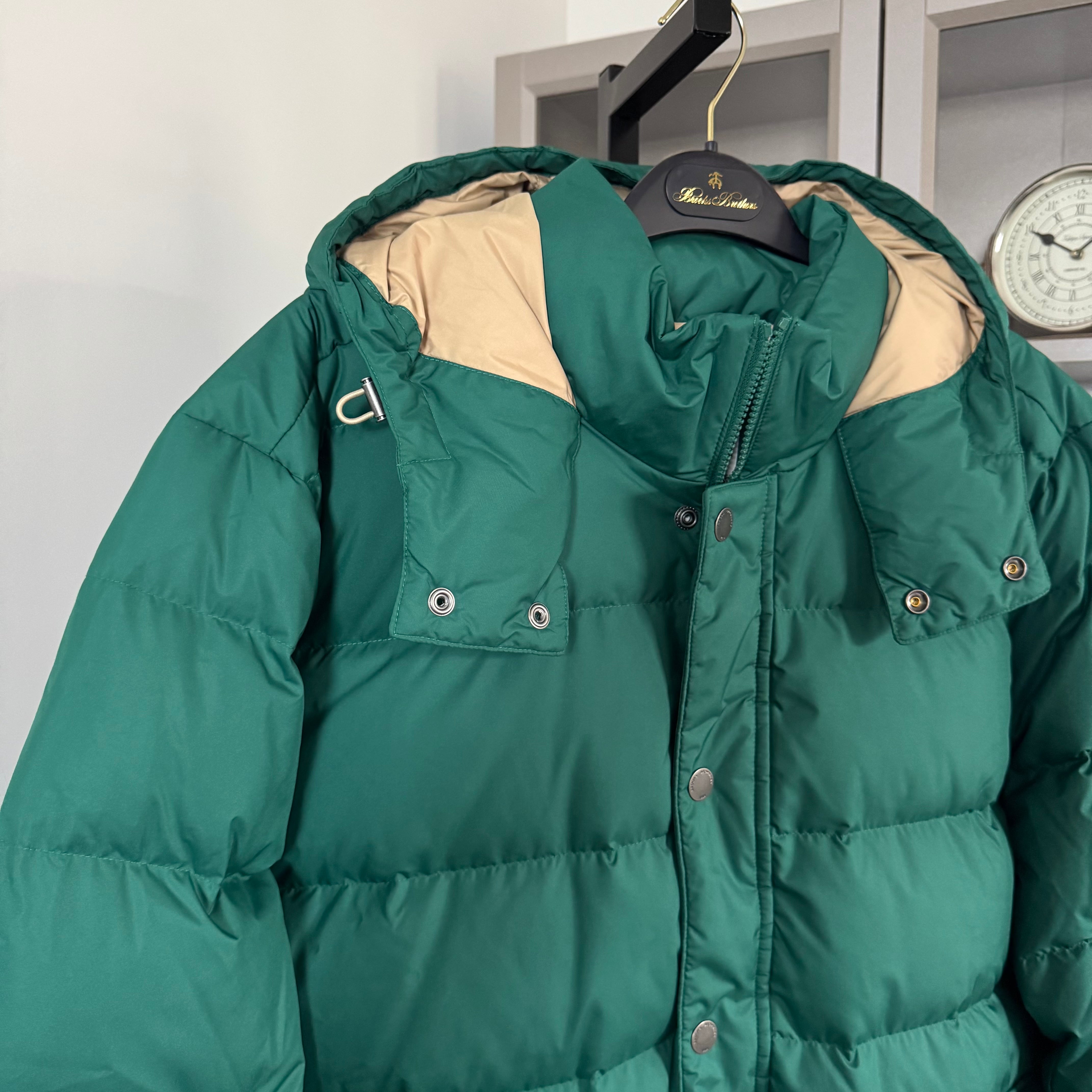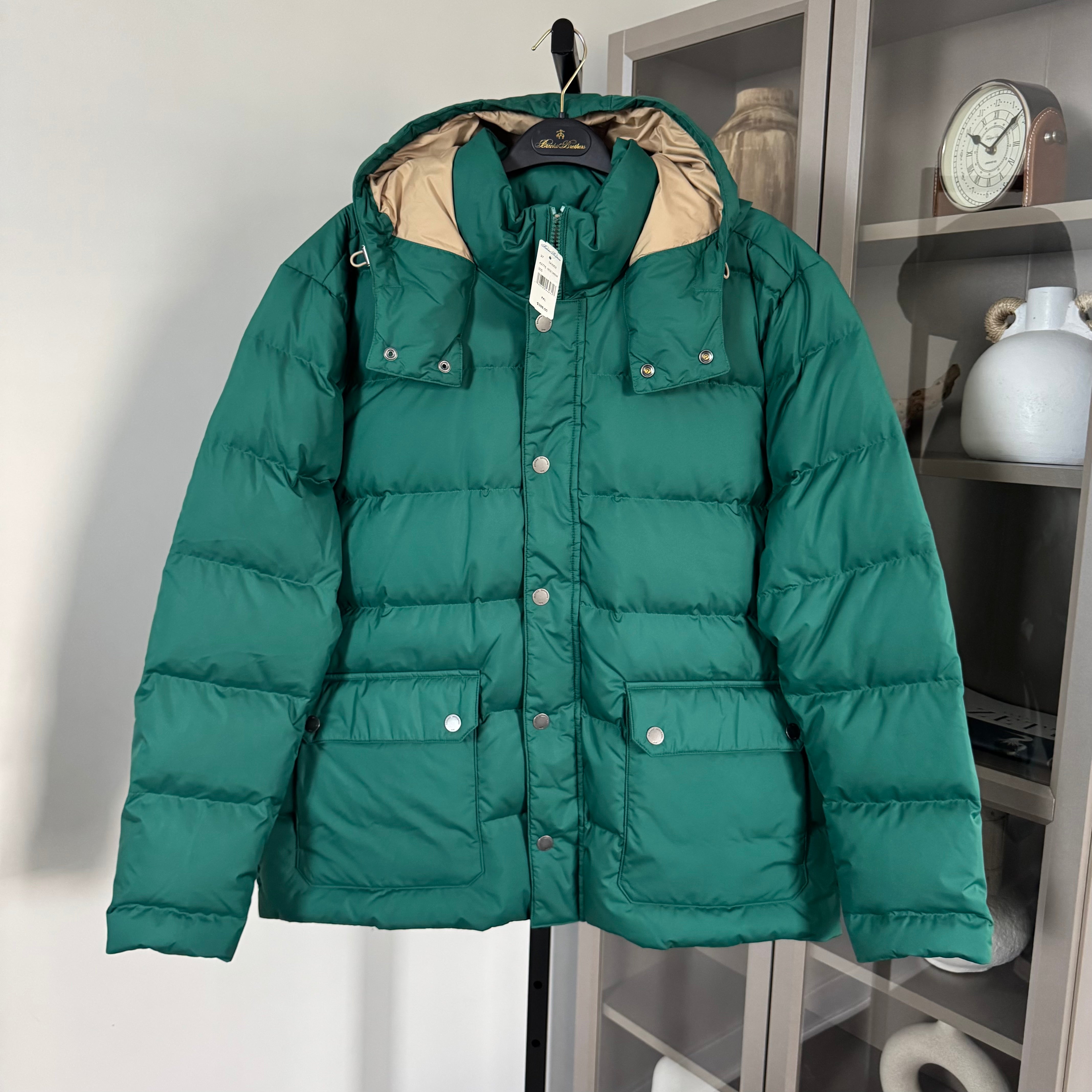 Brooks Brothers Quilted Down Filled Bright Green Hooded Parka Coat