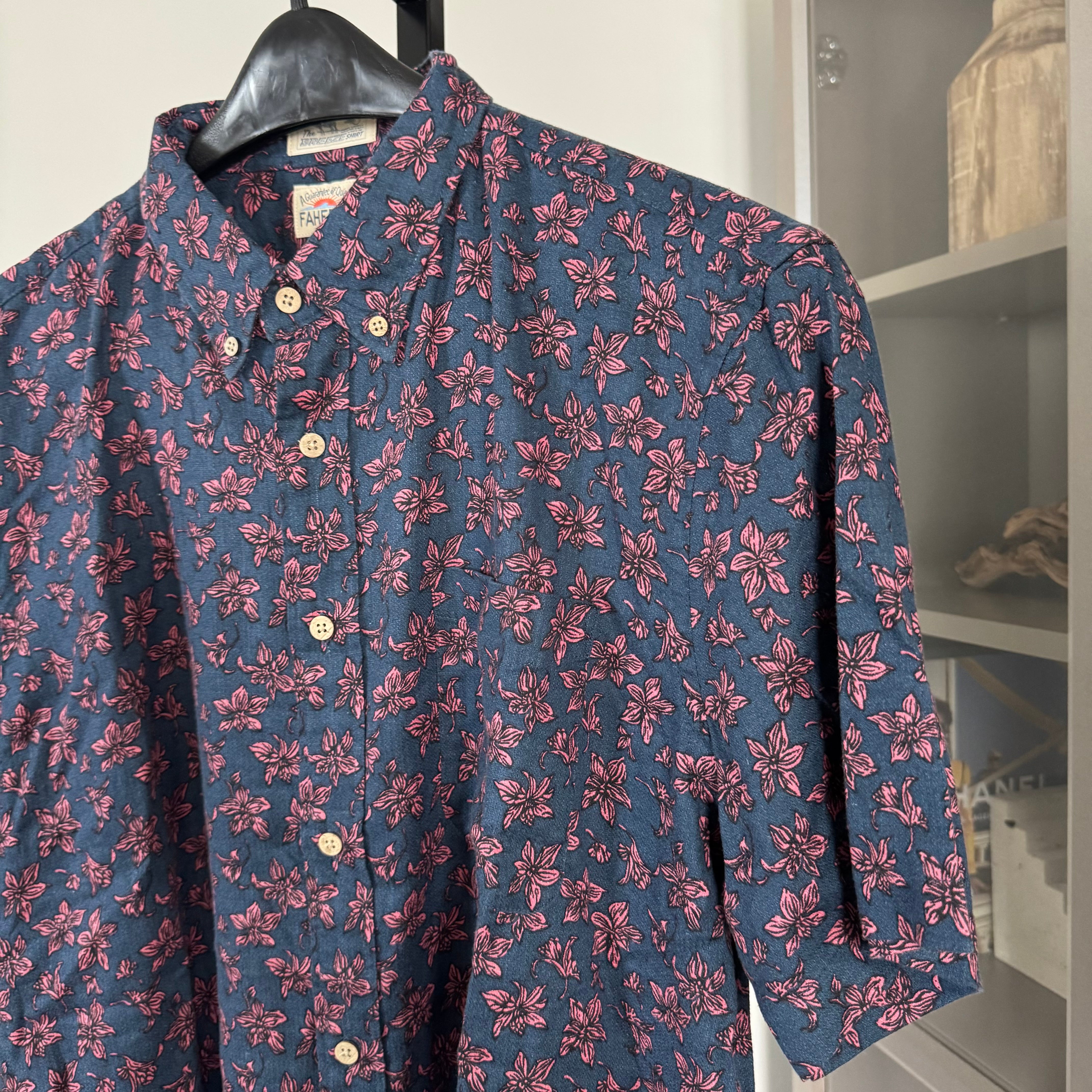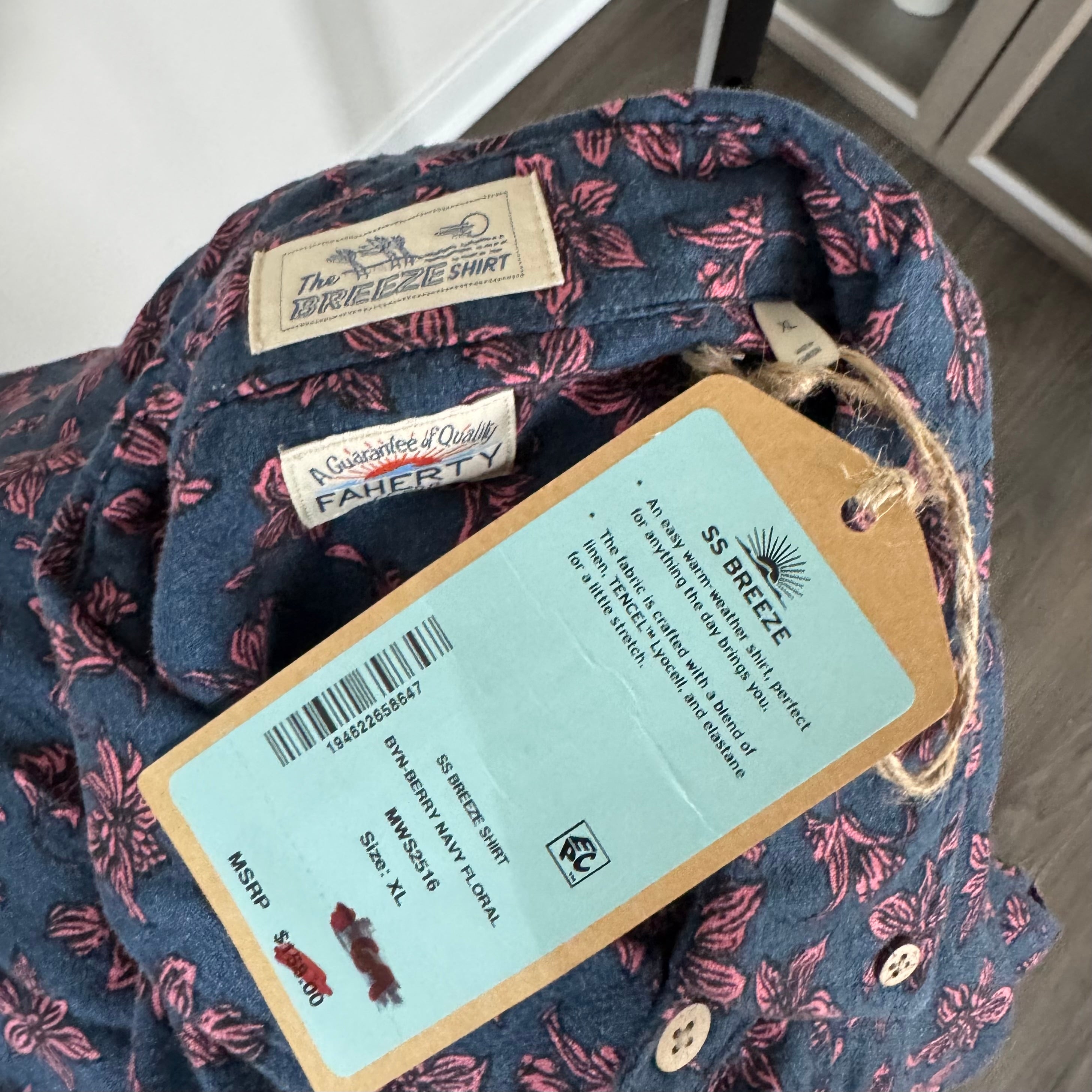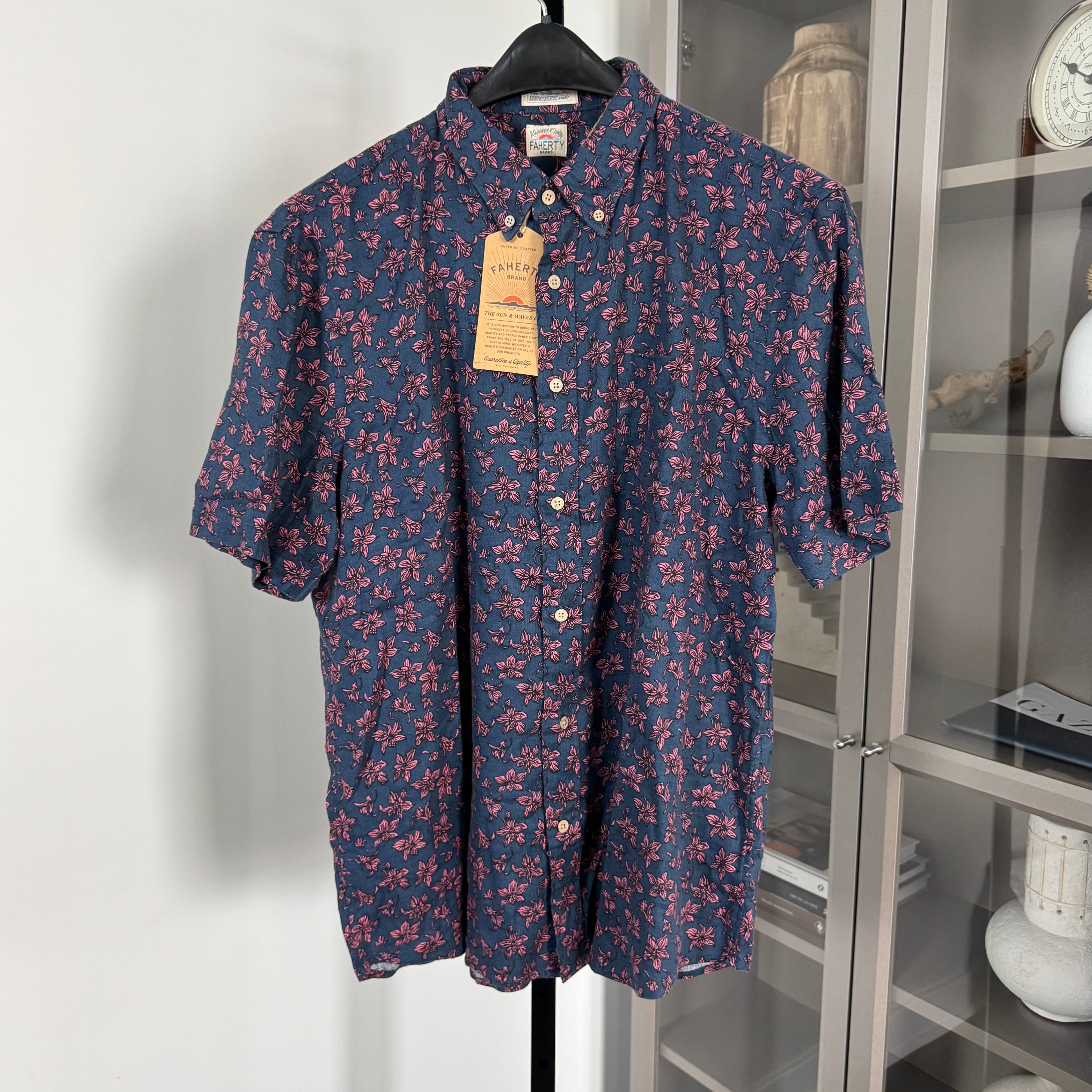 Faherty The Breeze Short Sleeve Berry Navy Floral Button Down Shirt