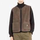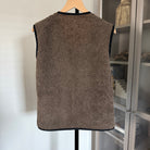 Knickerbocker Reverse Zip-Up Brown Pile Fleece Black Nylon Chore Pocket Vest