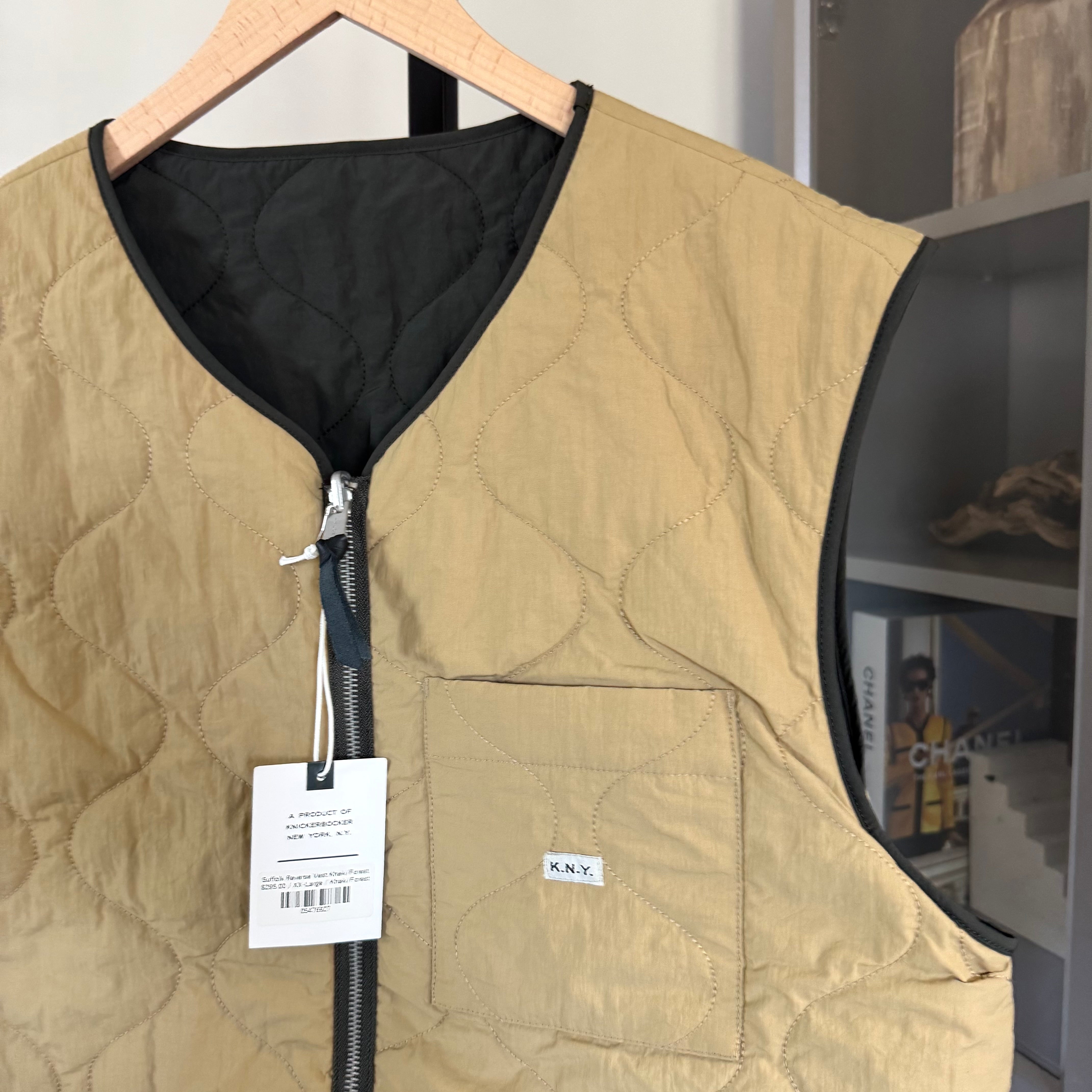 Knickerbocker Suffolk Reverse Quilted Water Repellant Khaki Forest Vest