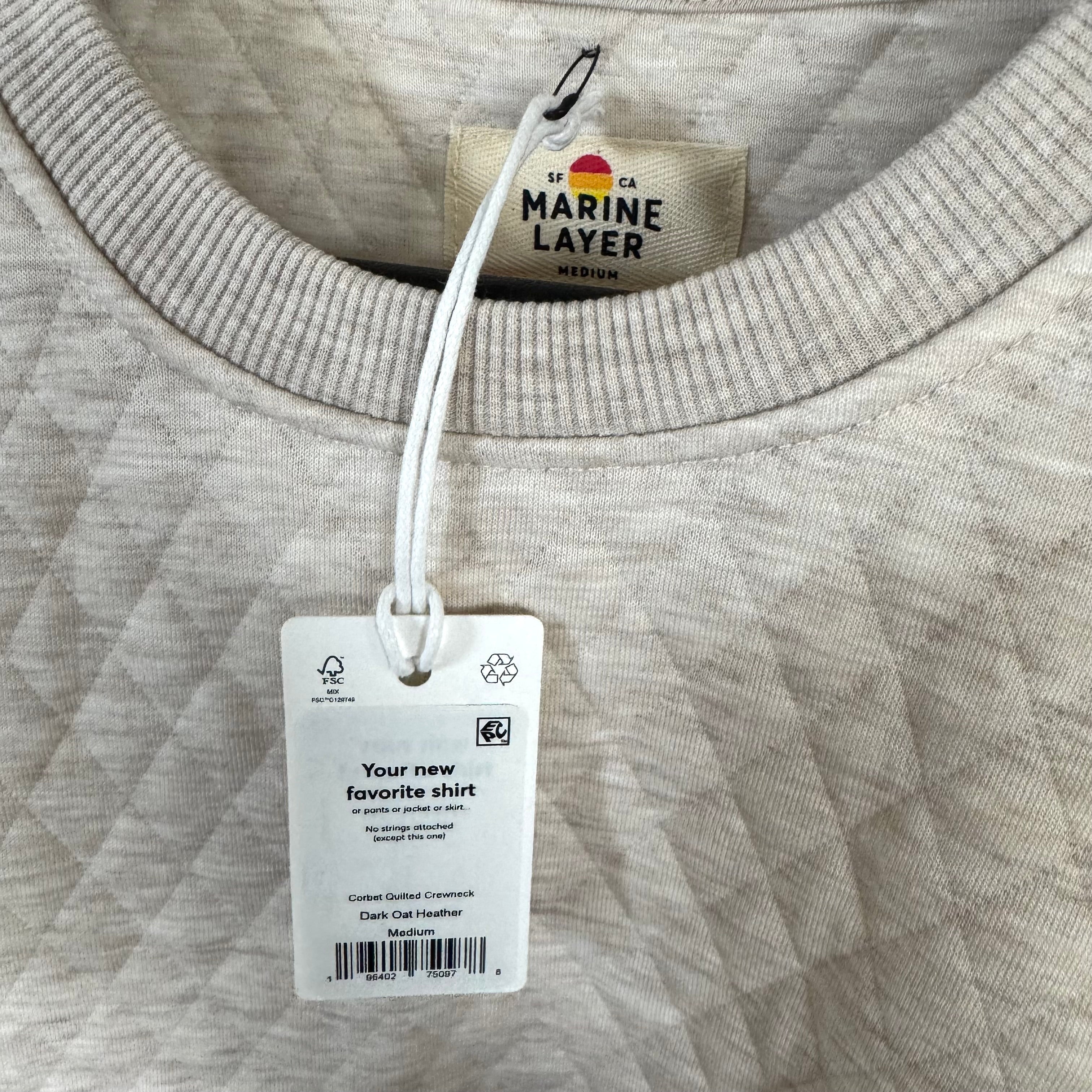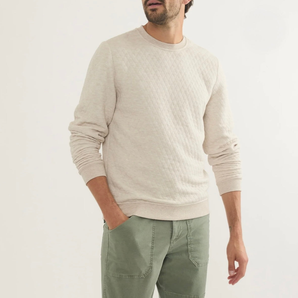 Marine Layer Corbet Quilted Crewneck Dark Oat Heather Sweatshirt