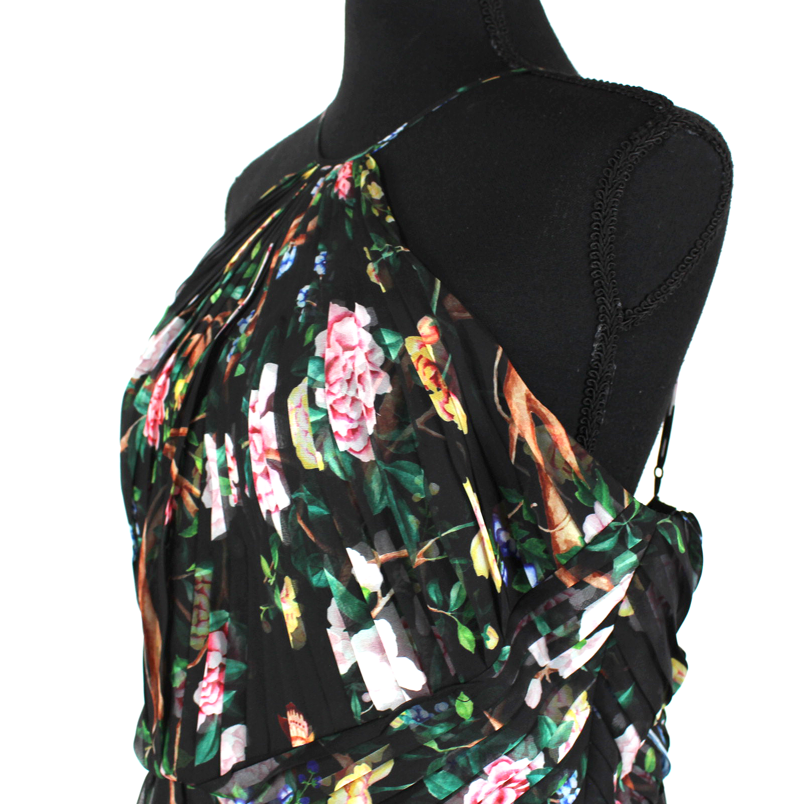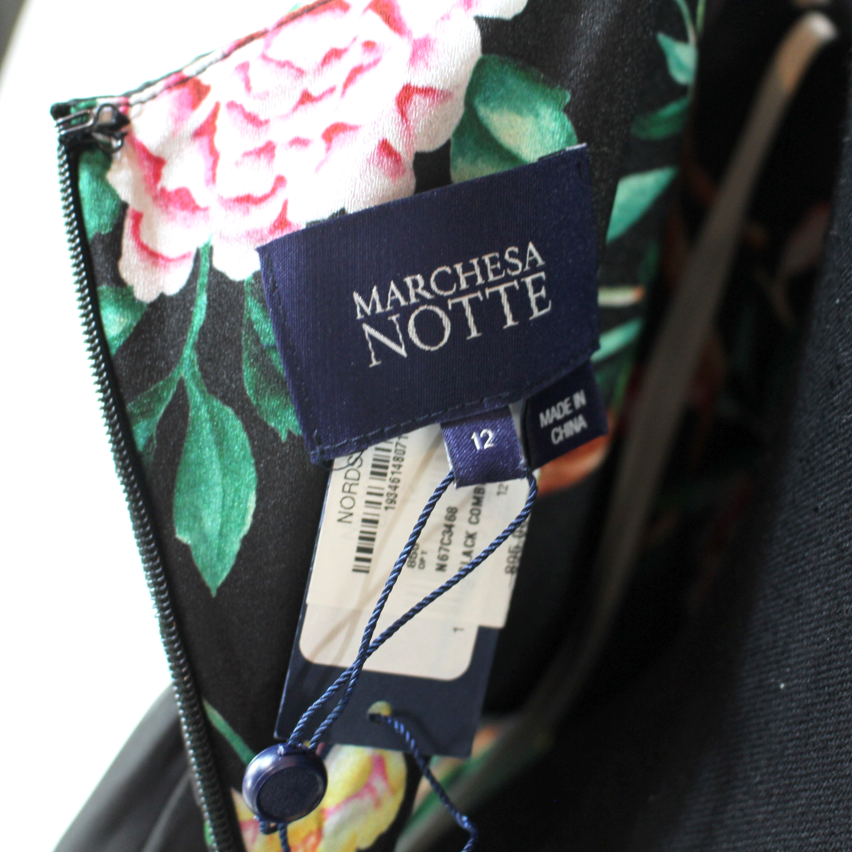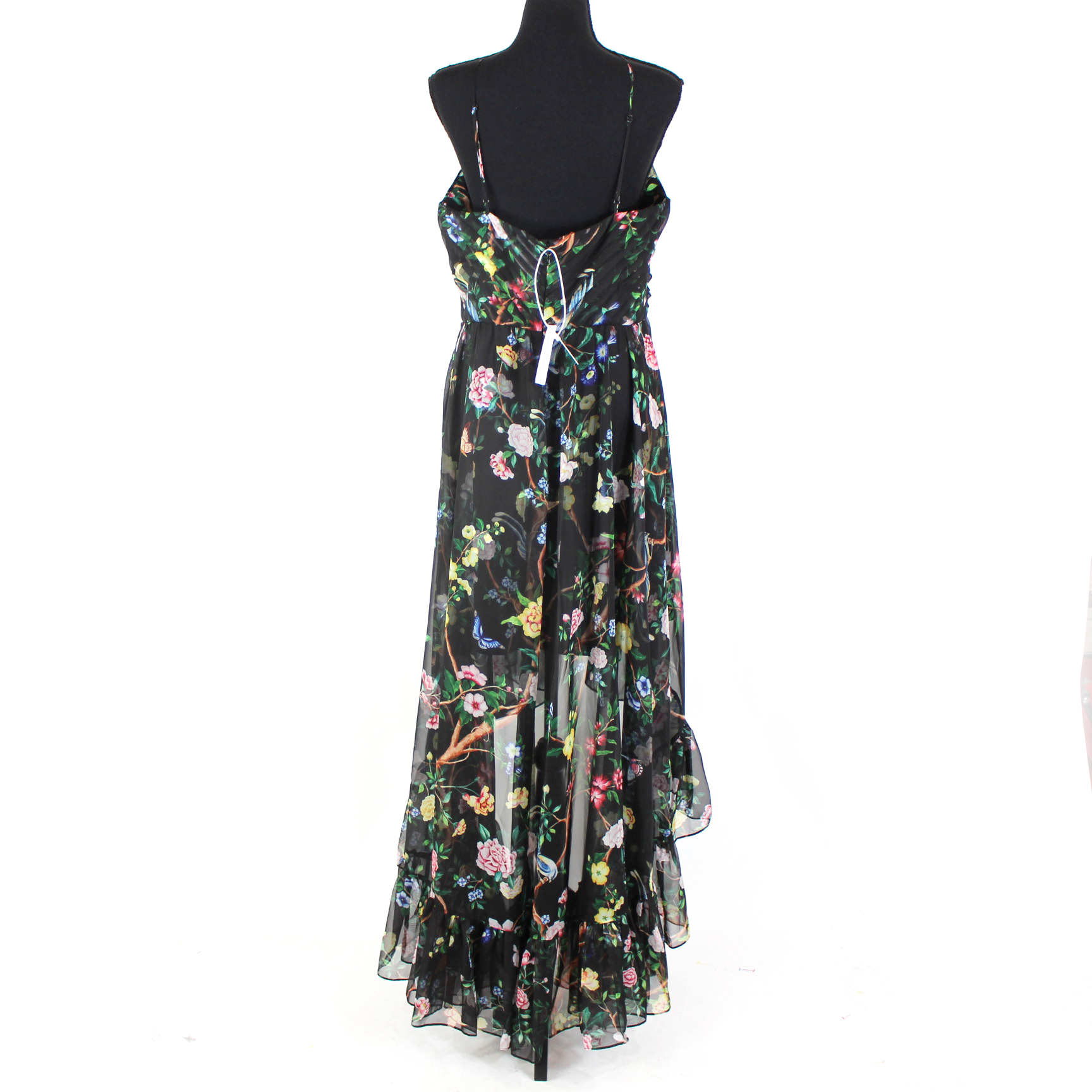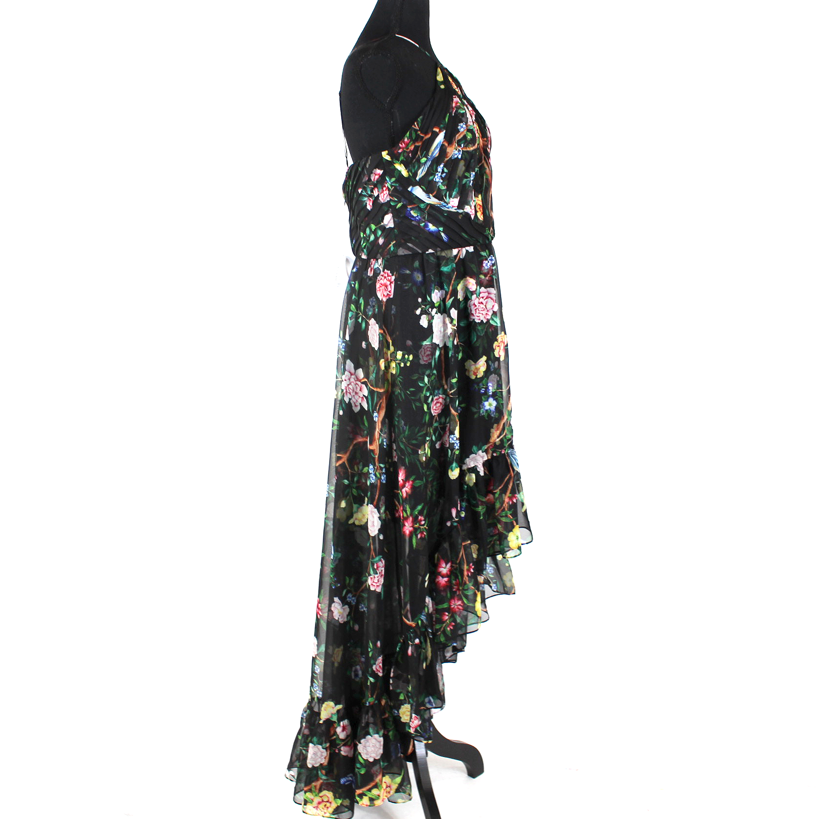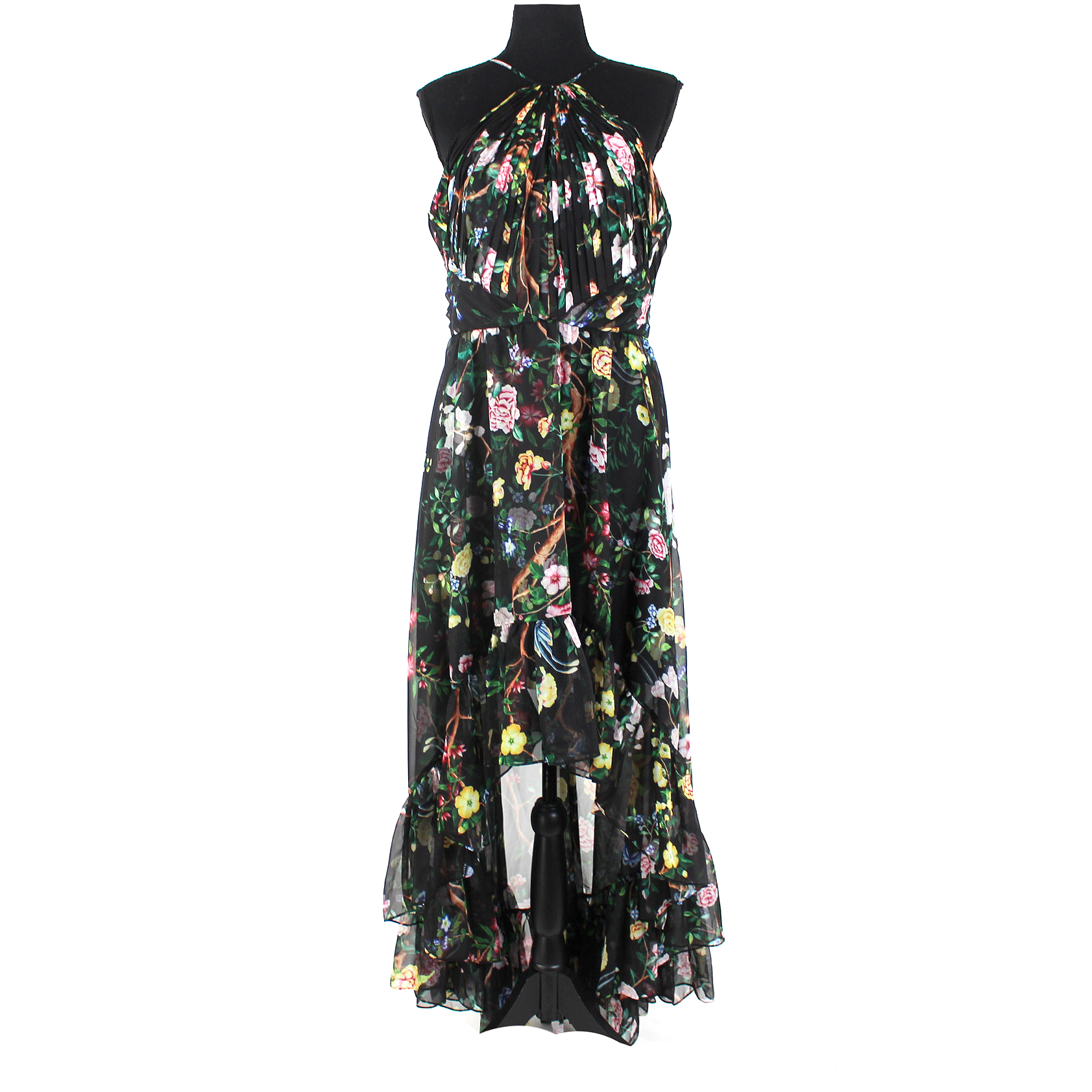 Marchesa Notte Black Flowering Multicolor High Low Halter Gown Midi Dress