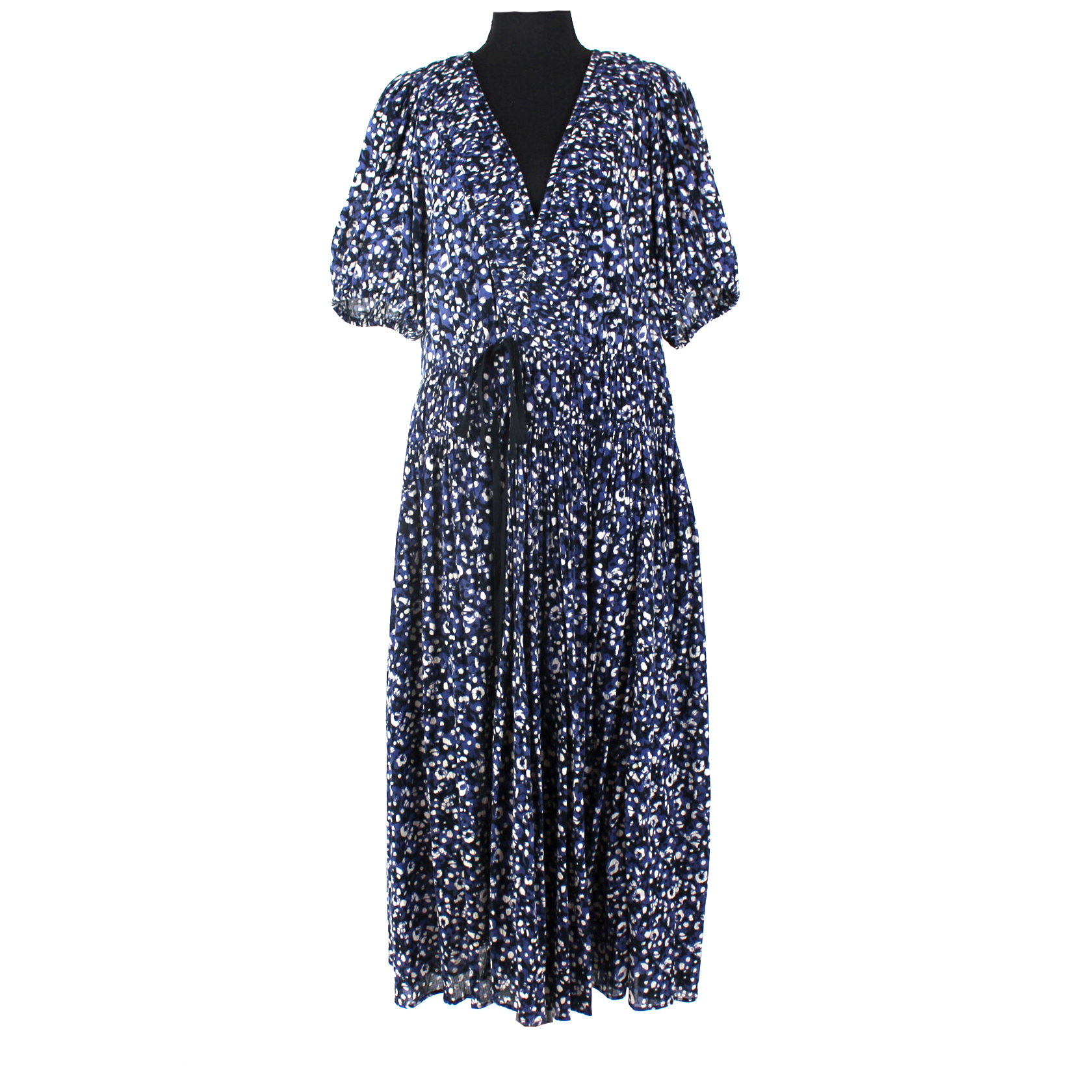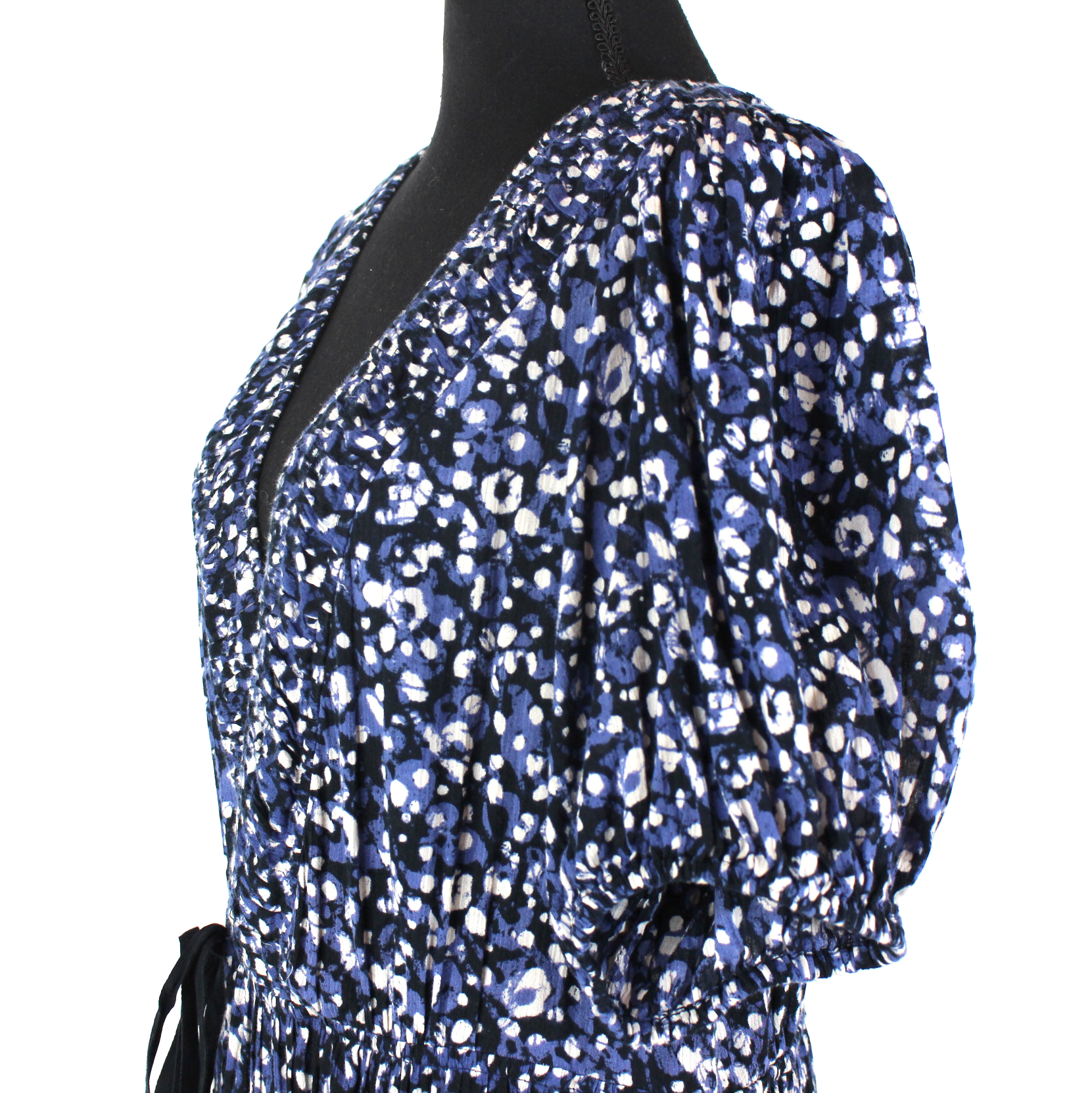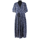 Ulla Johnson Kemala Indigo Blue Print Puff Sleeve Wrap Swing Midi Dress