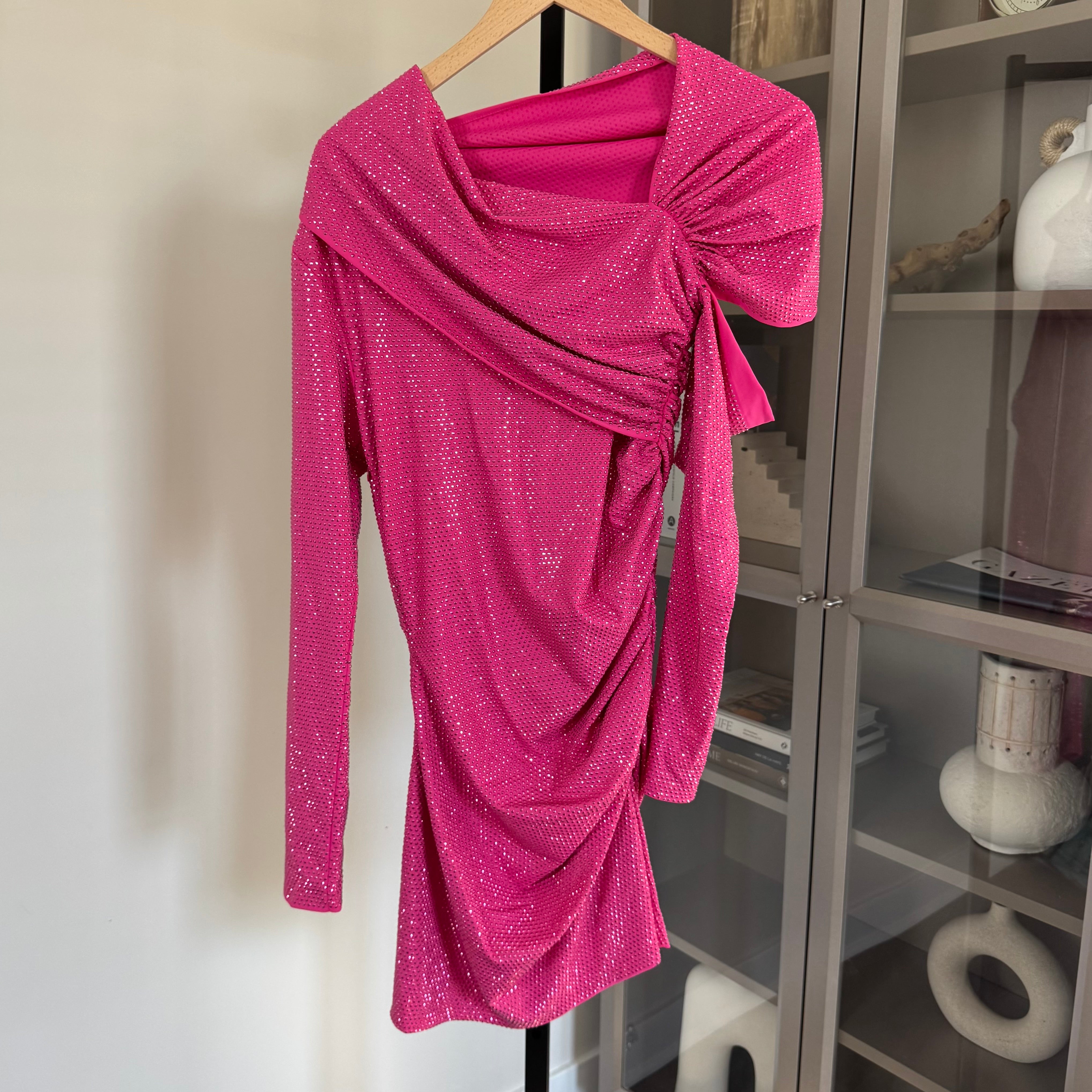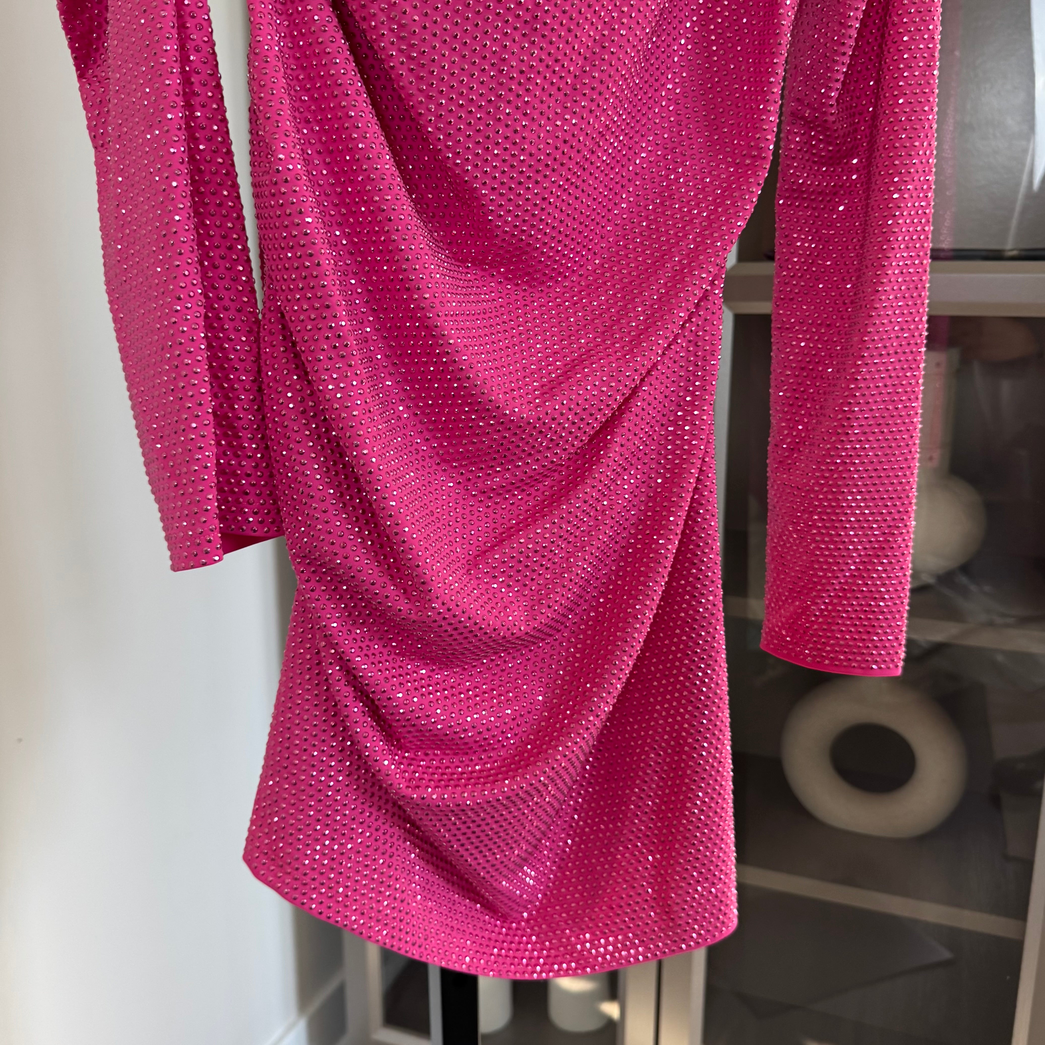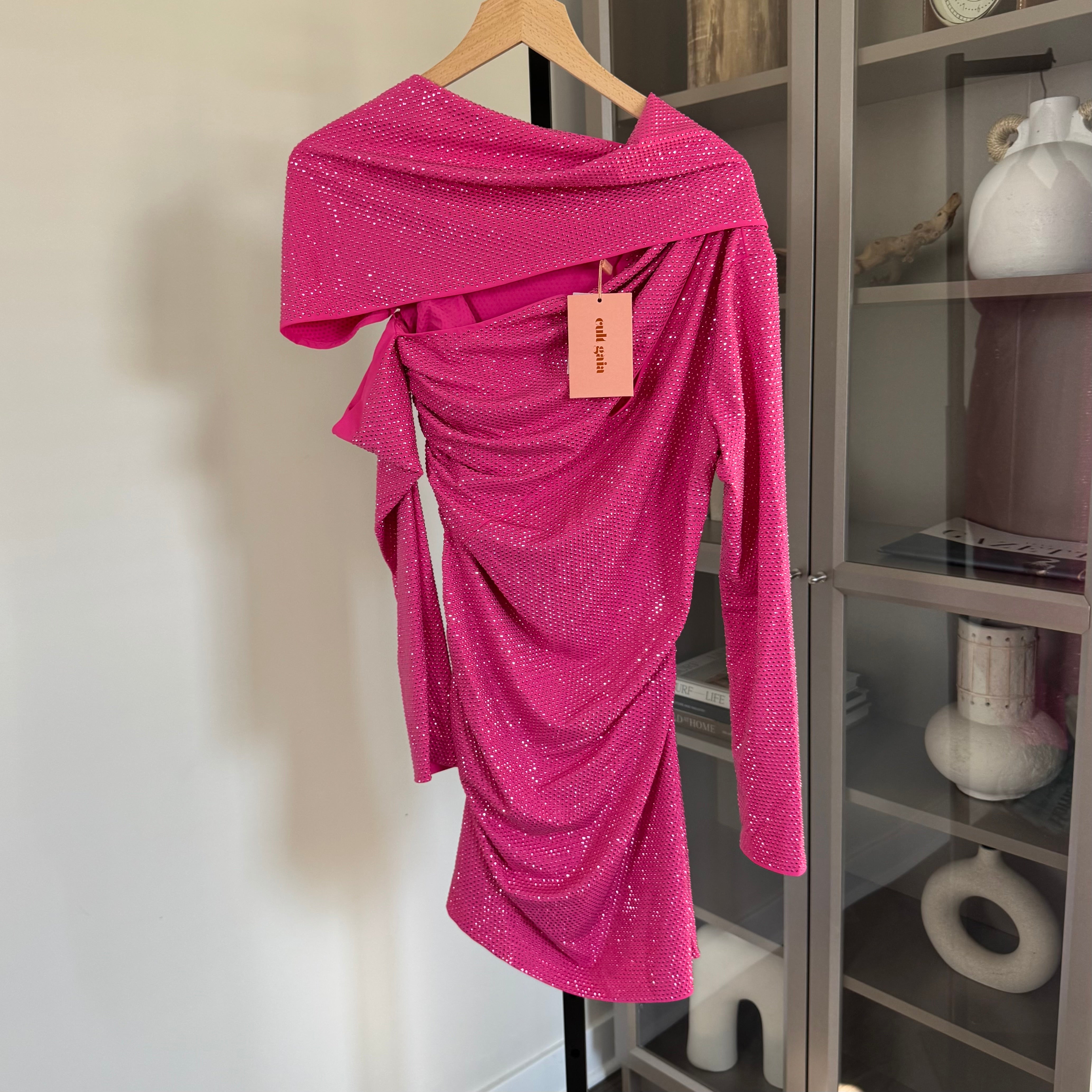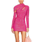Cult Gaia Nicole Pink Embellished Long Sleeve Cut Out Mini Dress