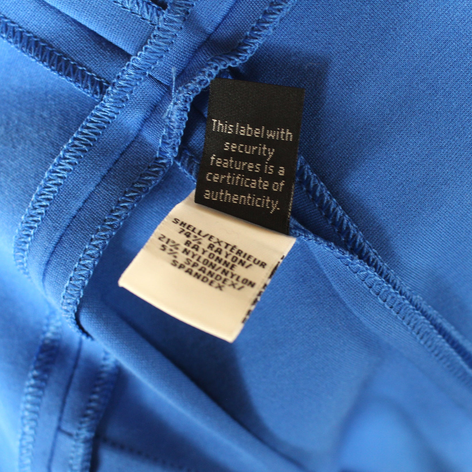 - Outer: 74% rayon, 21% nylon & 5% spandex