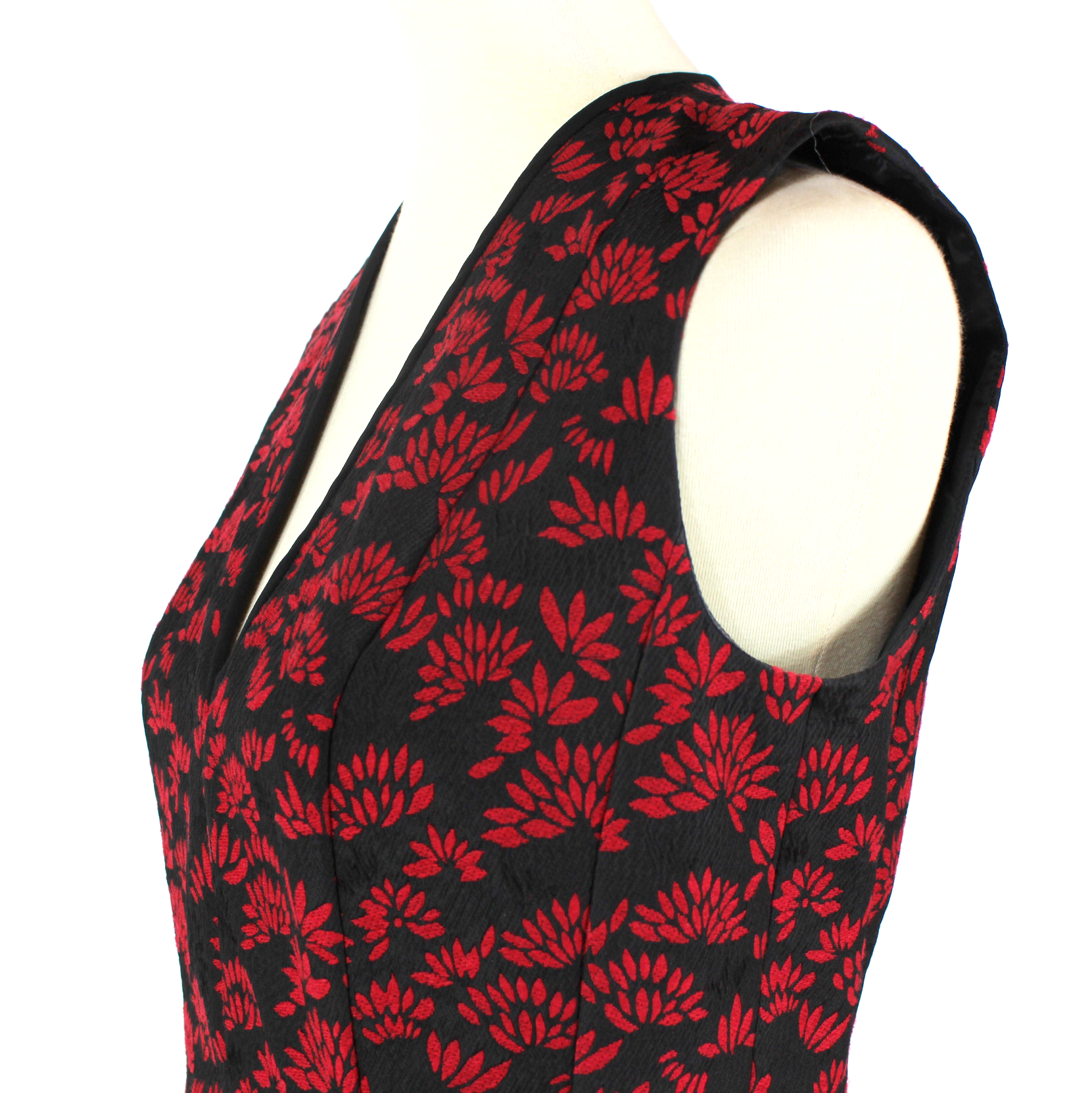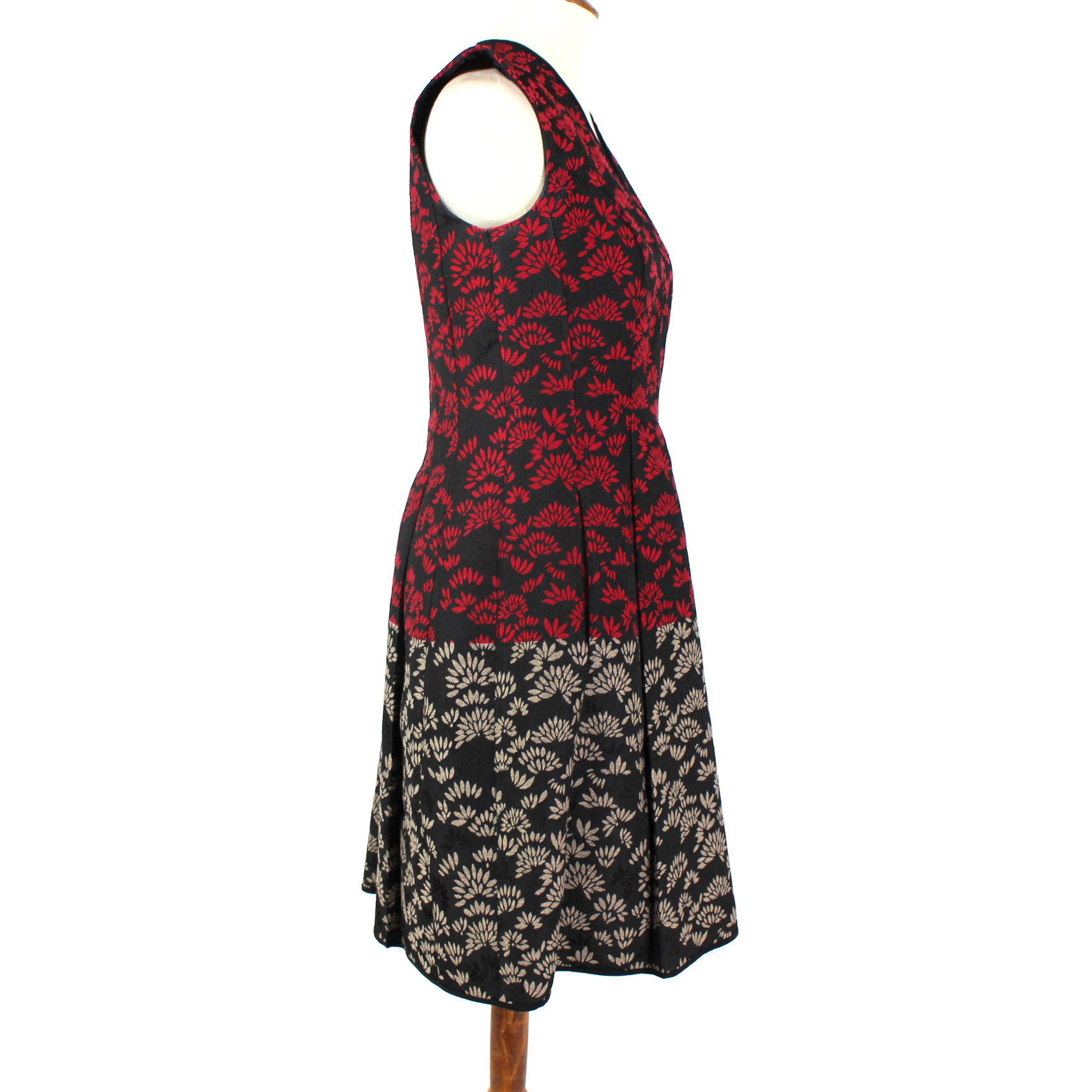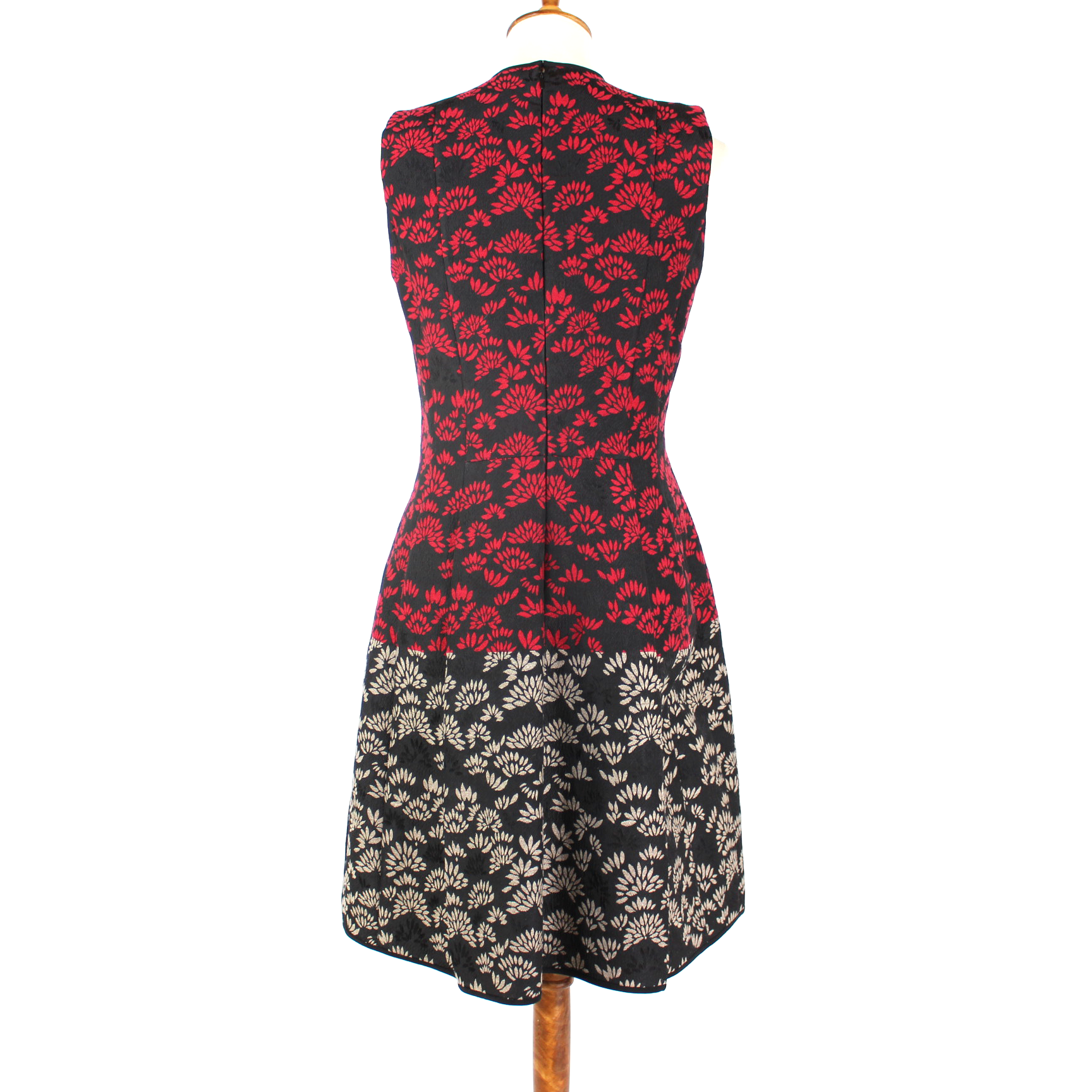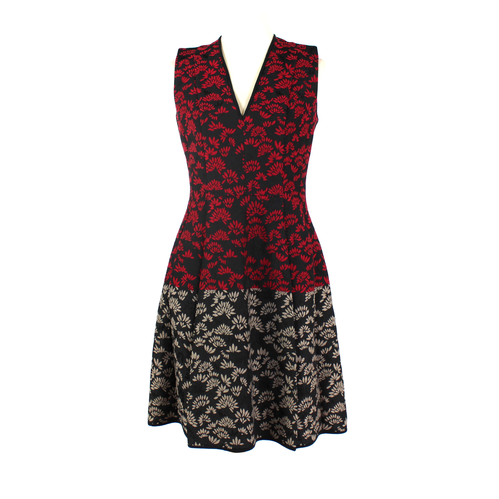 ETRO Jacquard Black Red Grey Color Block V-Neck Sleeveless A Line Dress