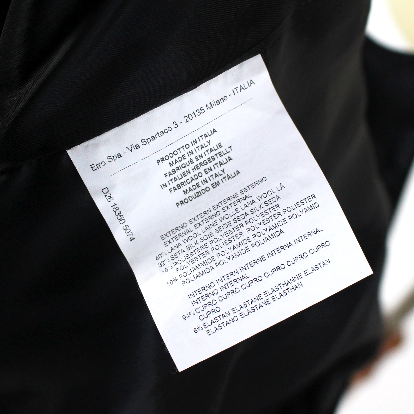 • Outer: 40% wool, 32% silk, 18% polyester & 10% polyamide