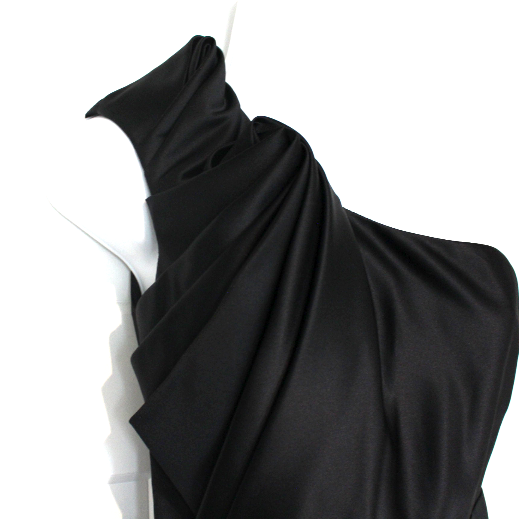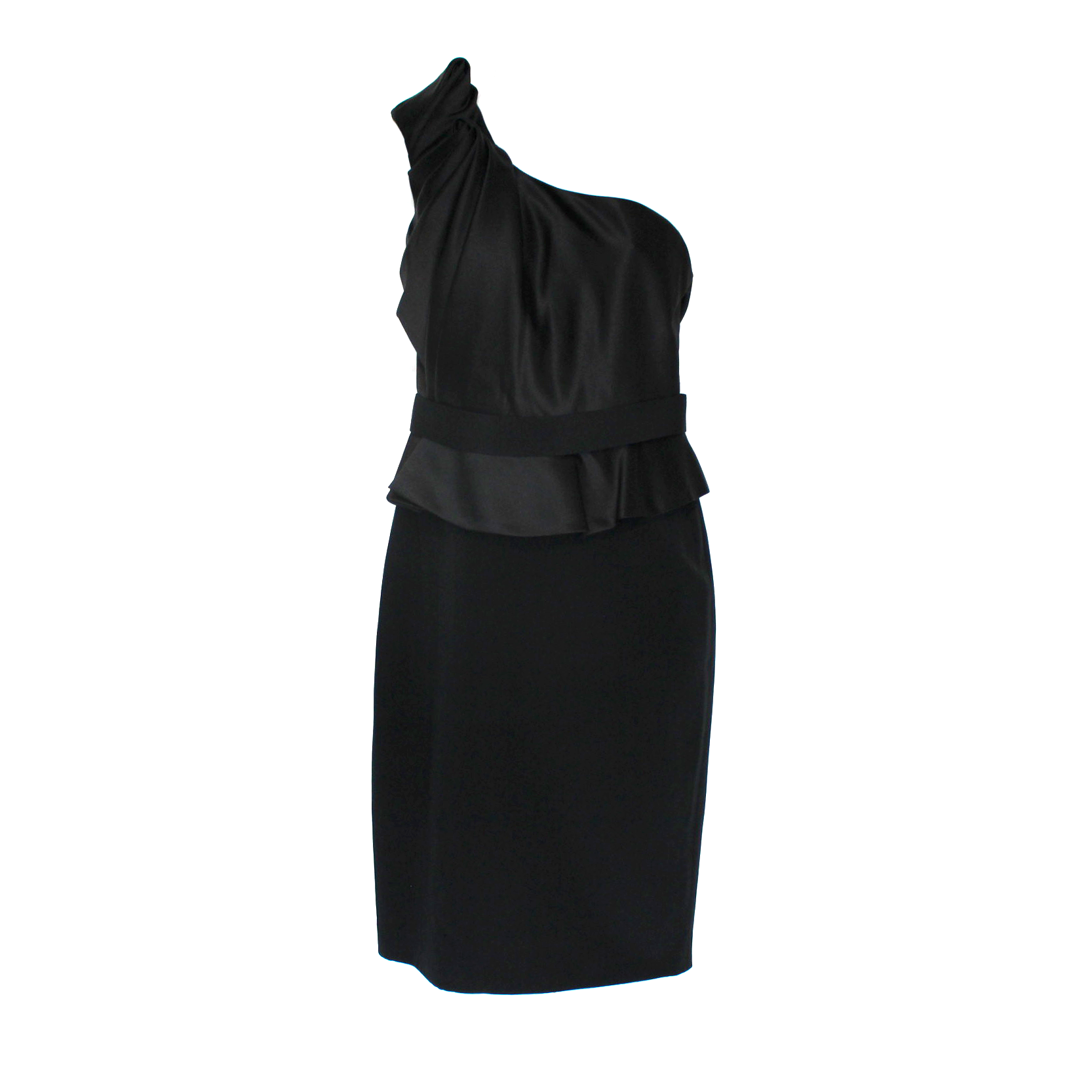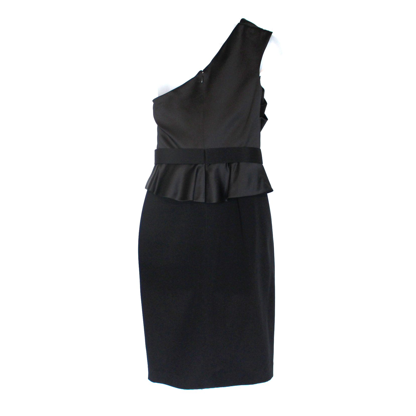 Marchesa Notte Black Silk Combination One Shoulder Mini Dress