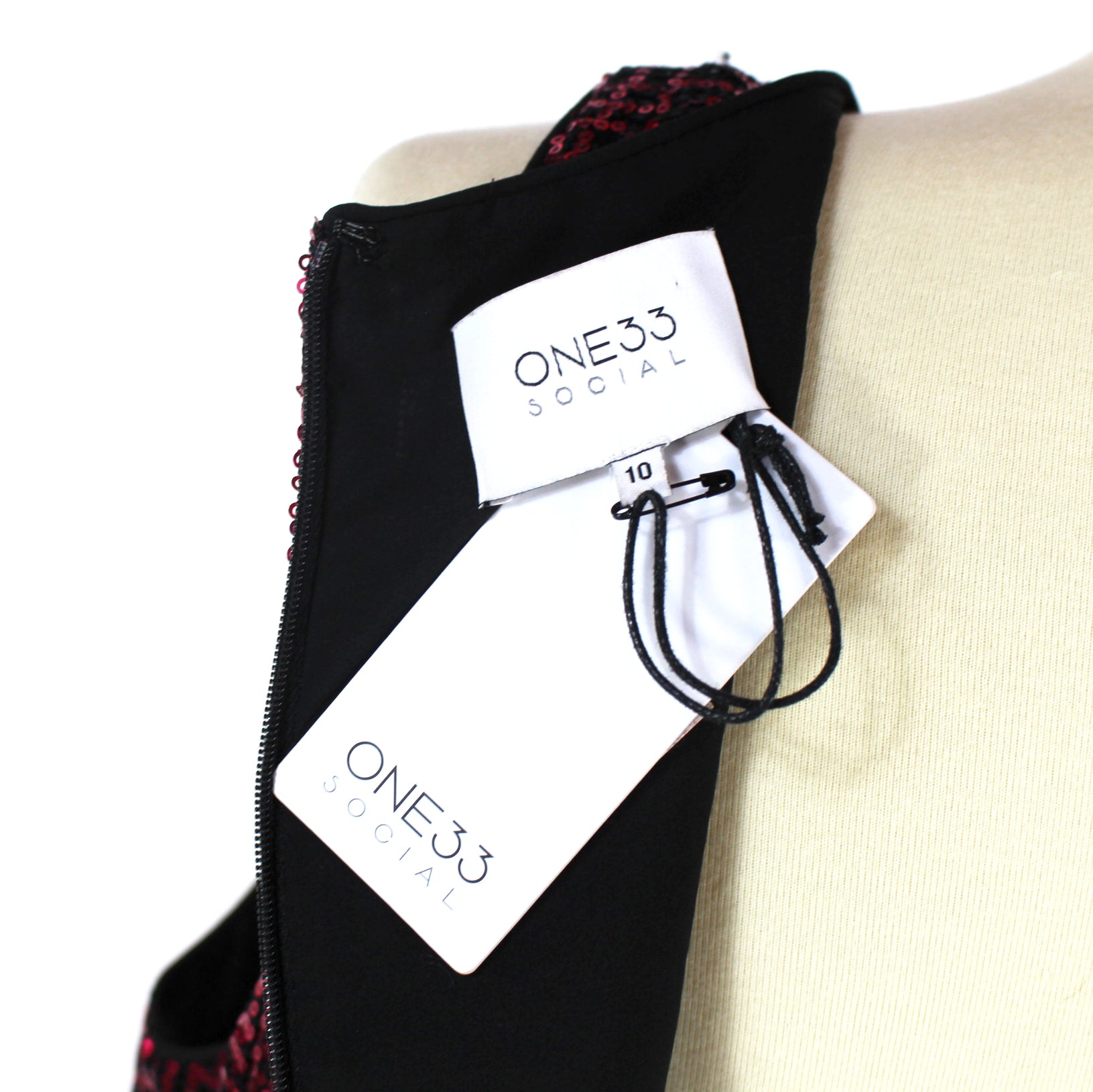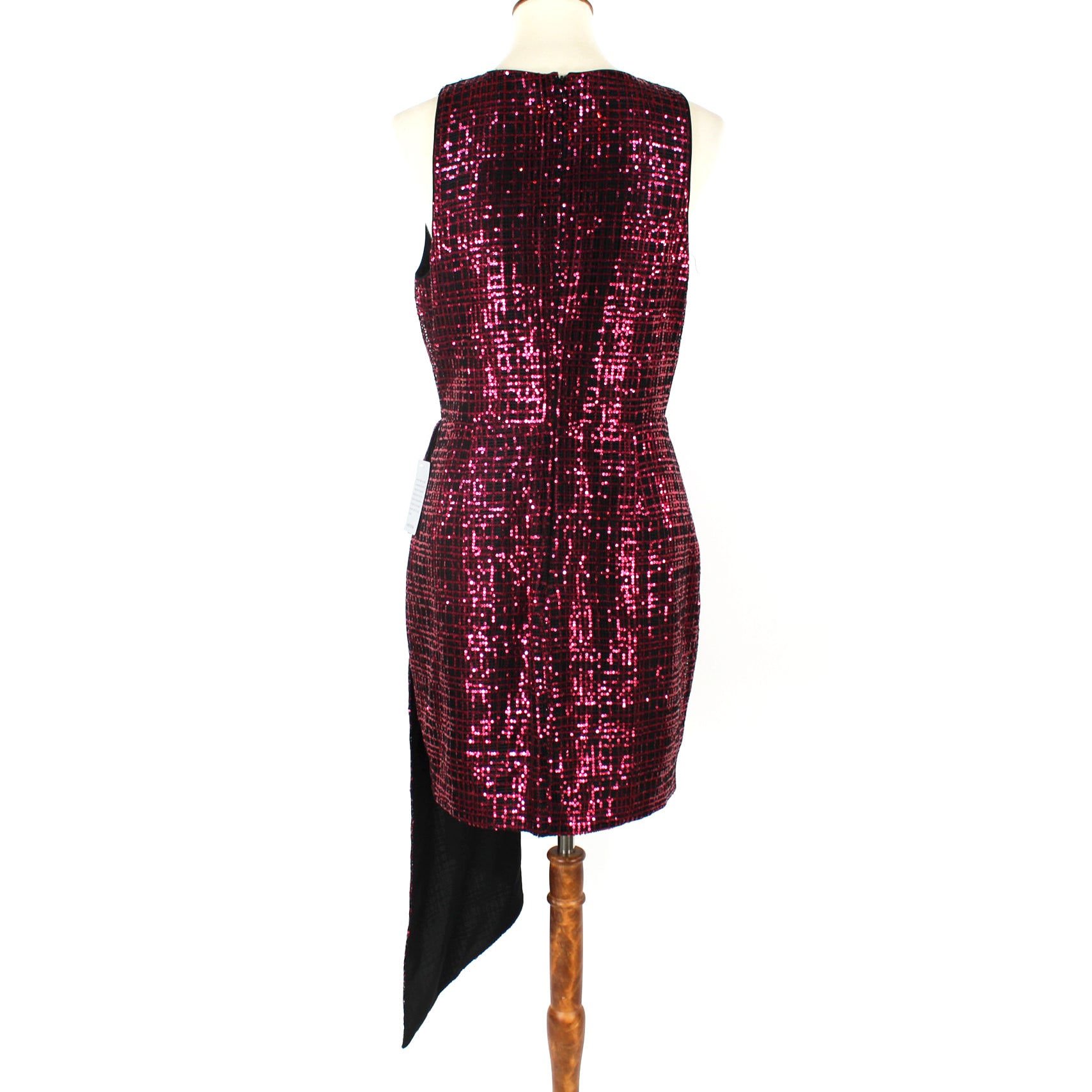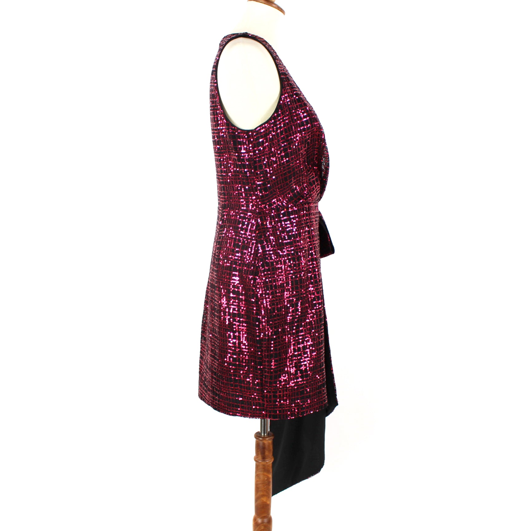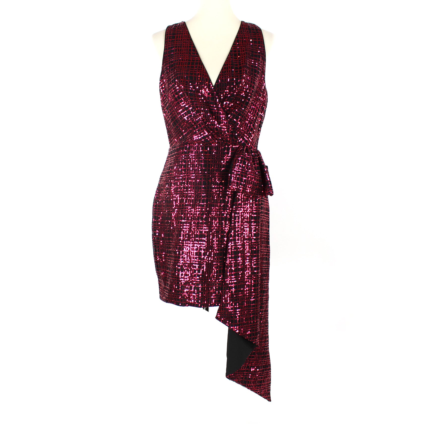 One33 Social Fuchsia Sequin Covered Faux Wrap Side Sash Mini Dress