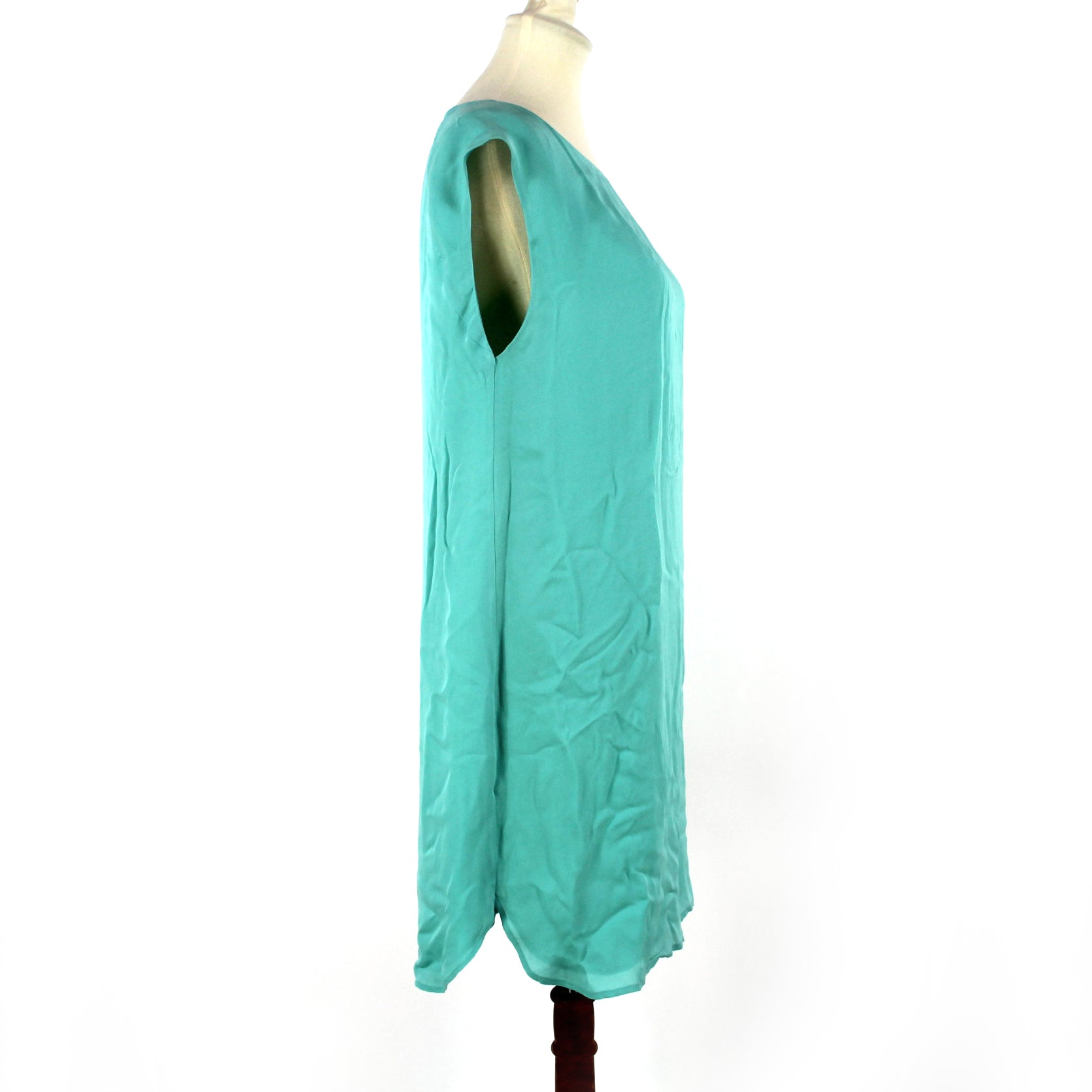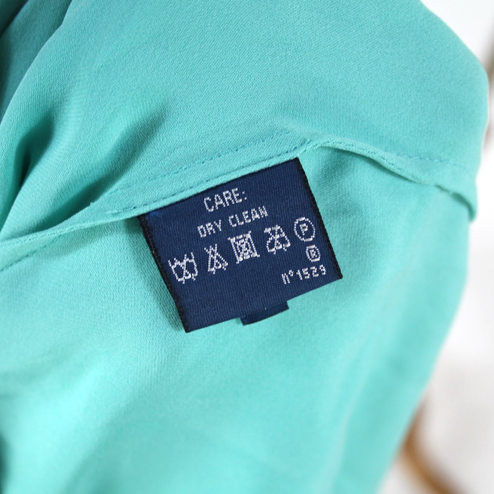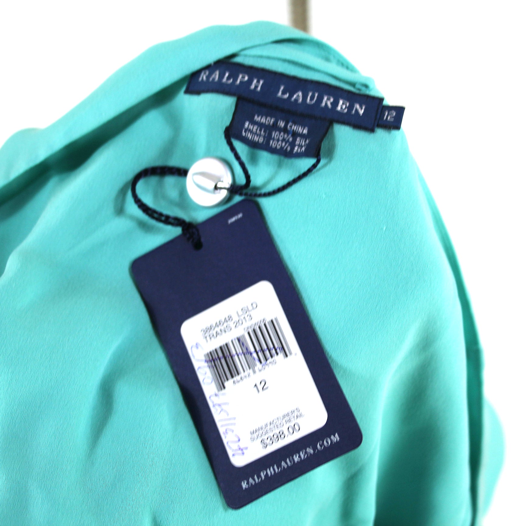 Ralph Lauren Silk Turquoise Cap Sleeve Satin Shift Mini Dress