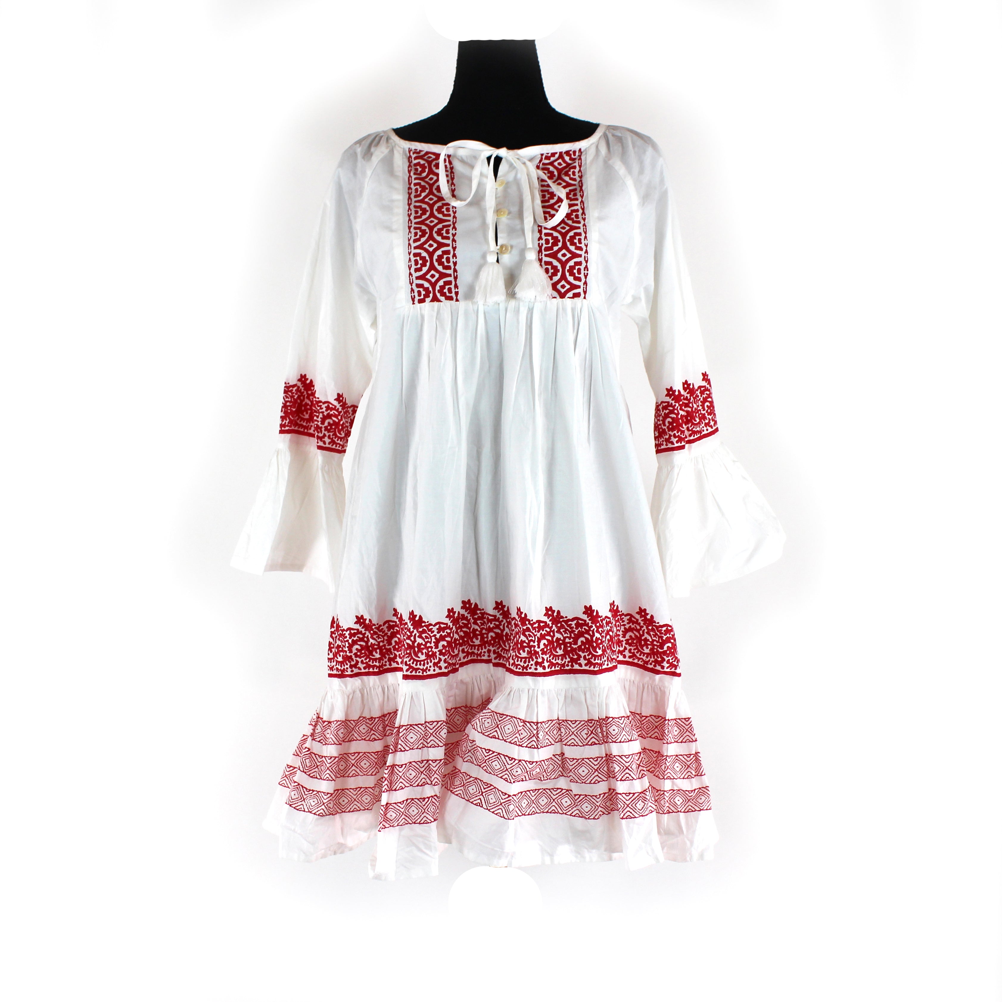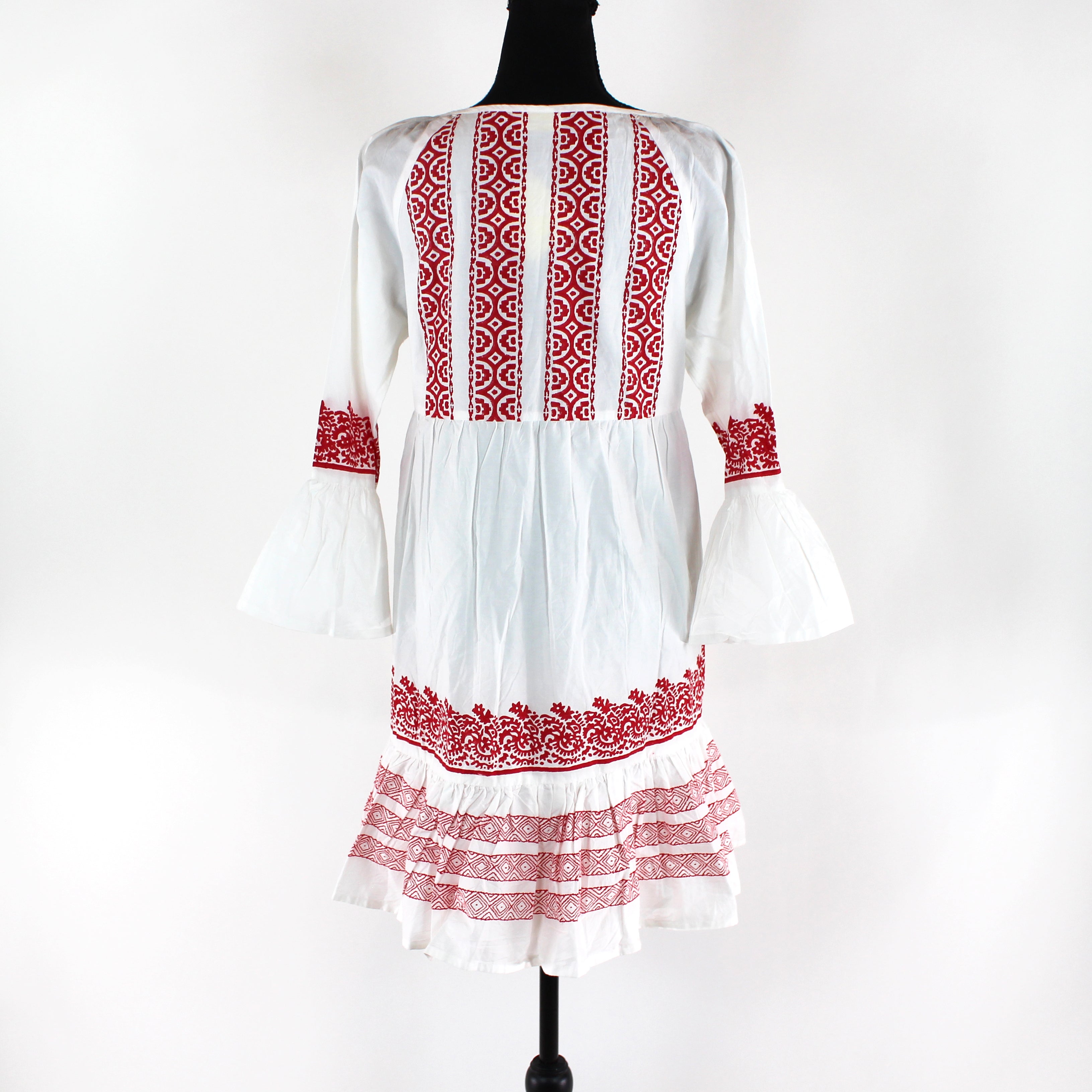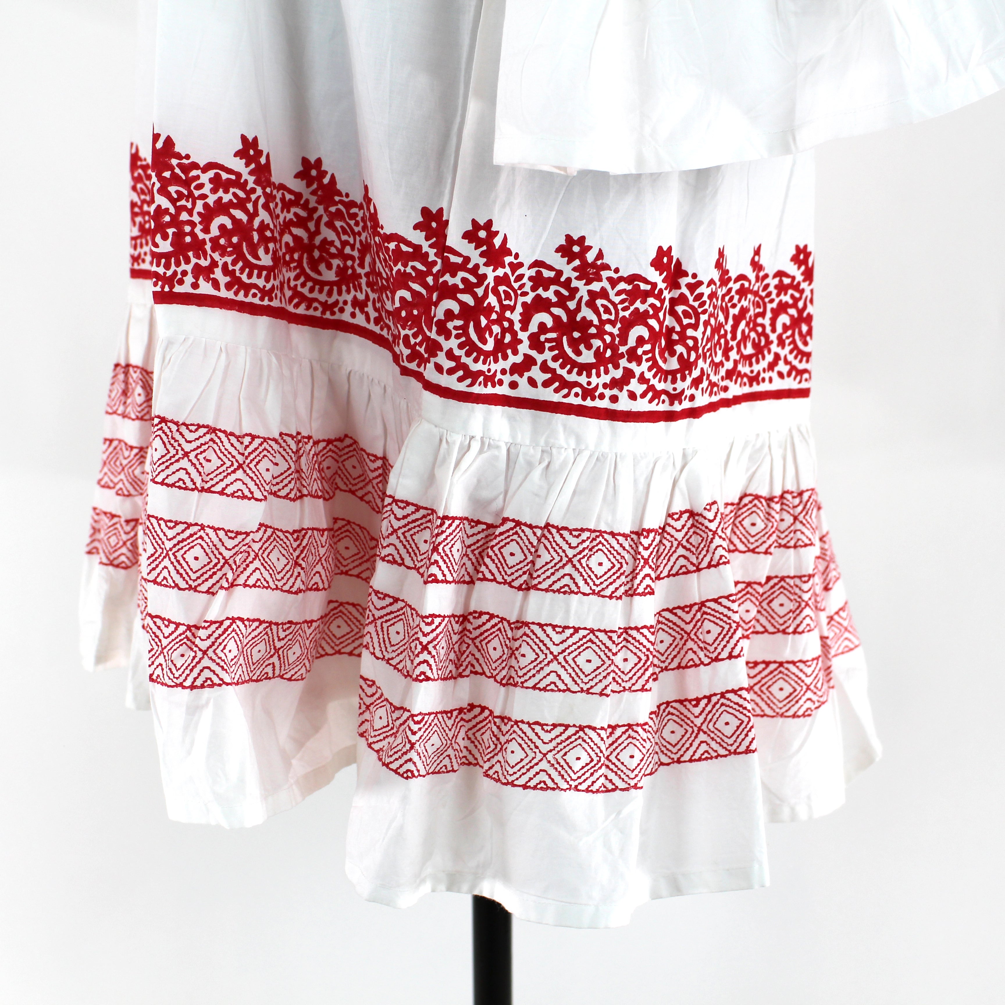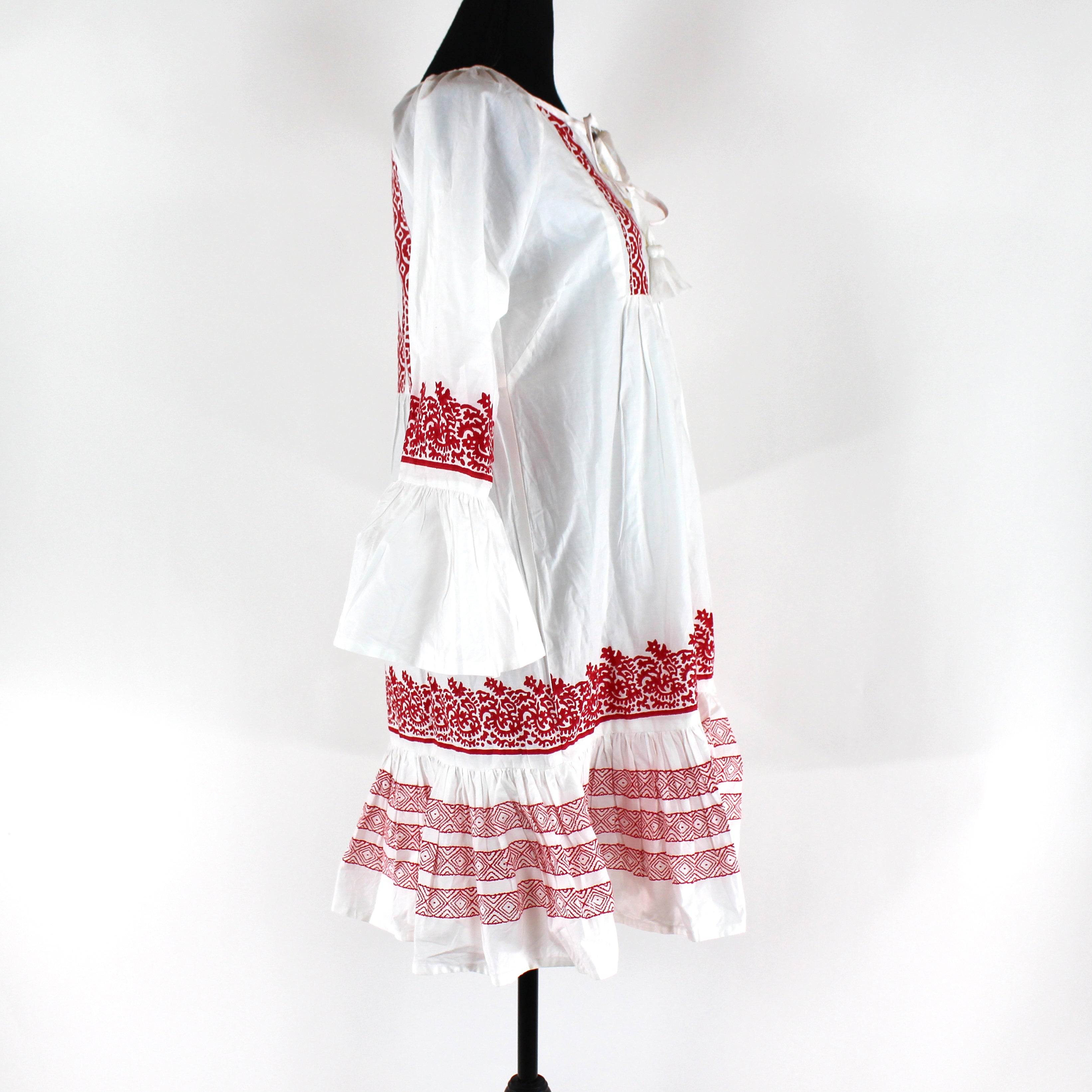Roller Rabbit Mona Border Maricruz White Red Ruffle Trim Mini Shift Dress