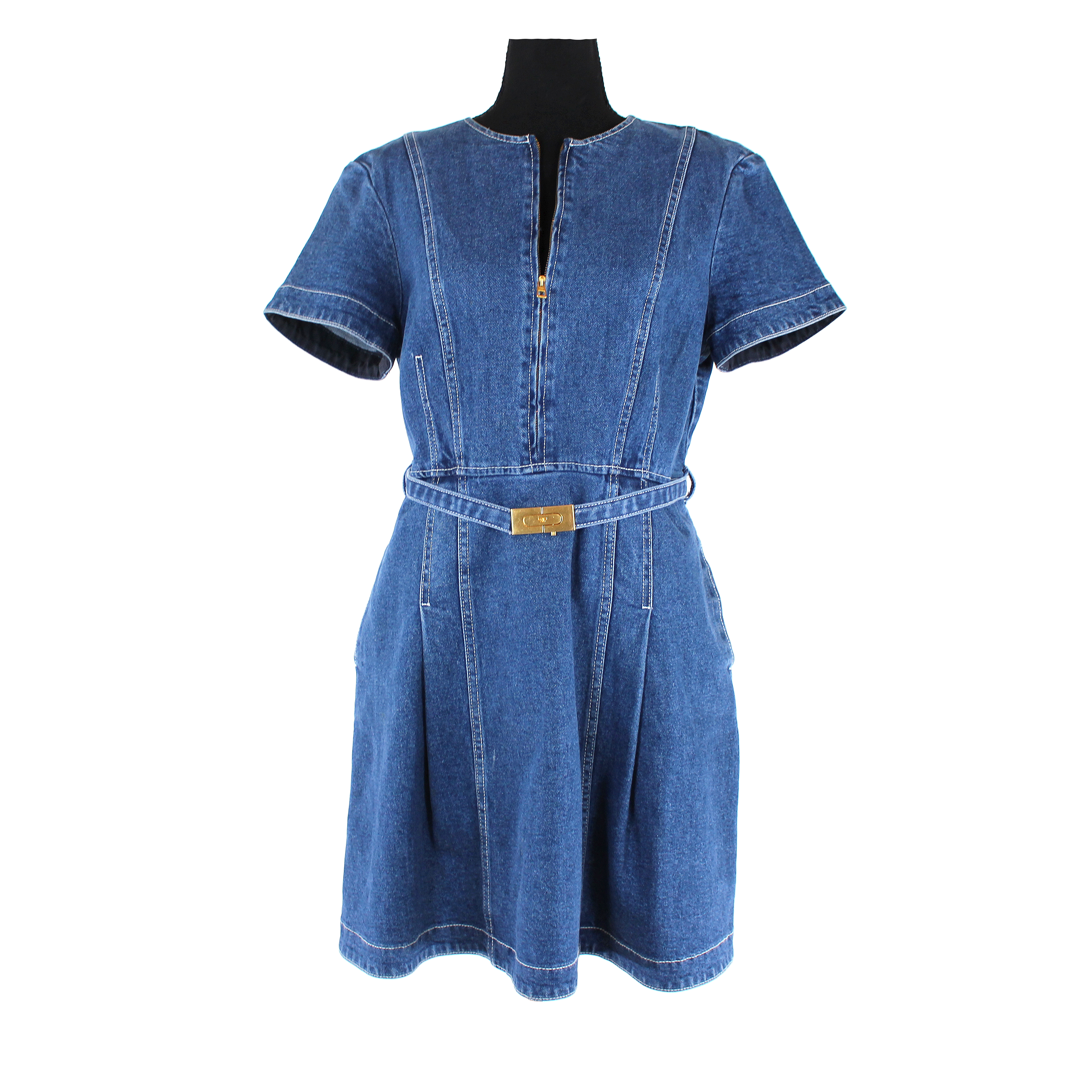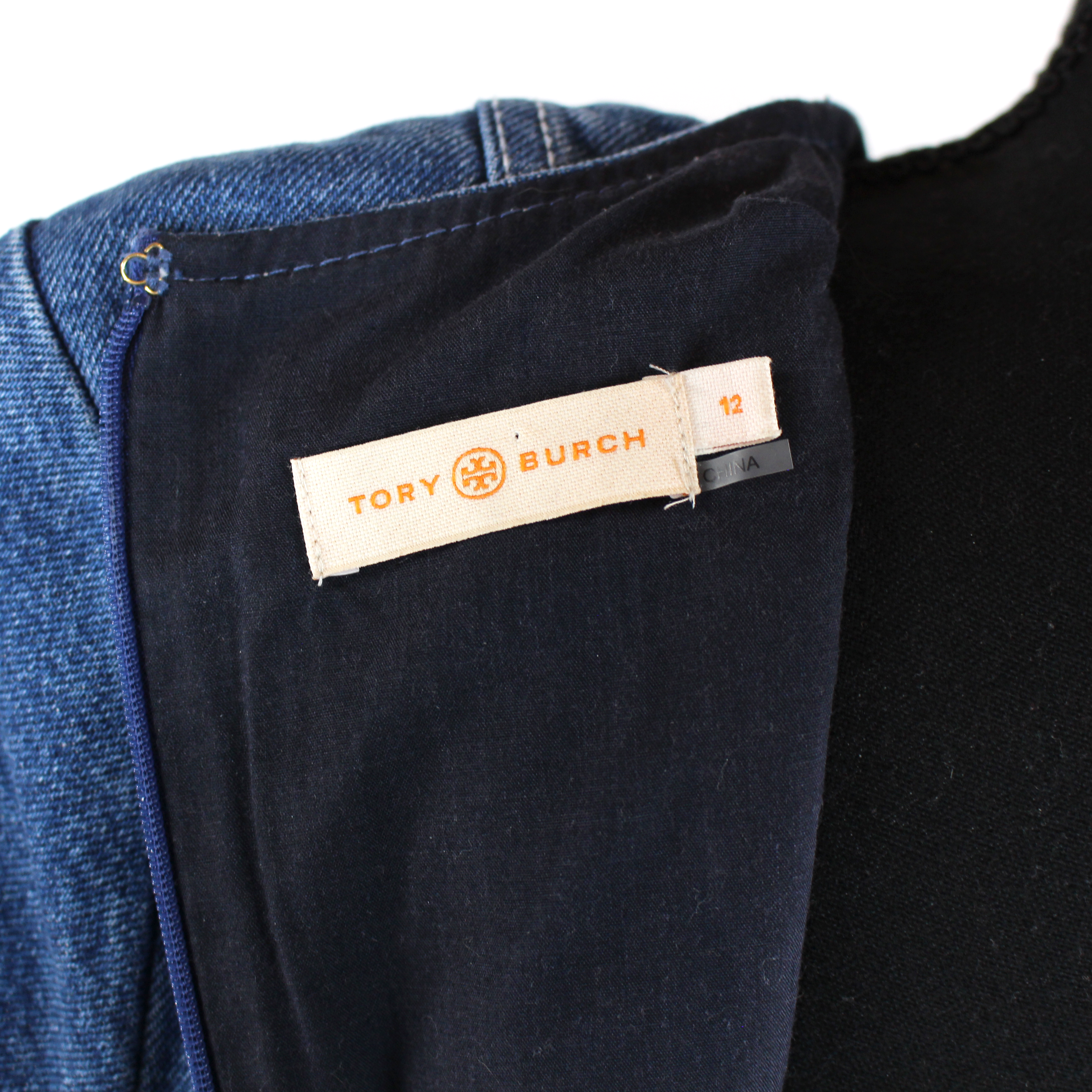 Tory Burch Nadia Triple Washed Blue Denim Gold Belted Mini Dress