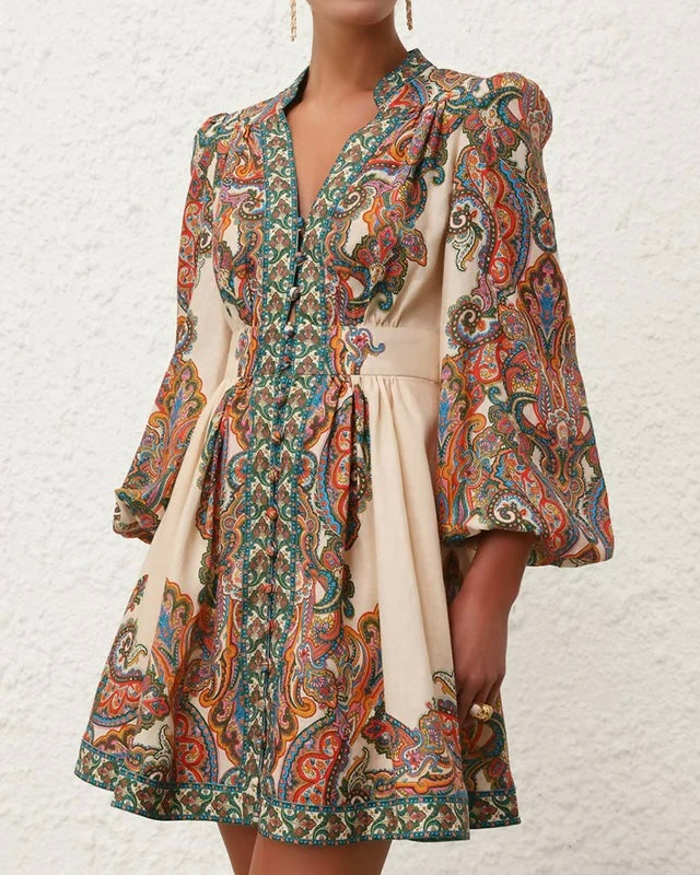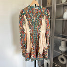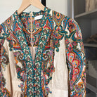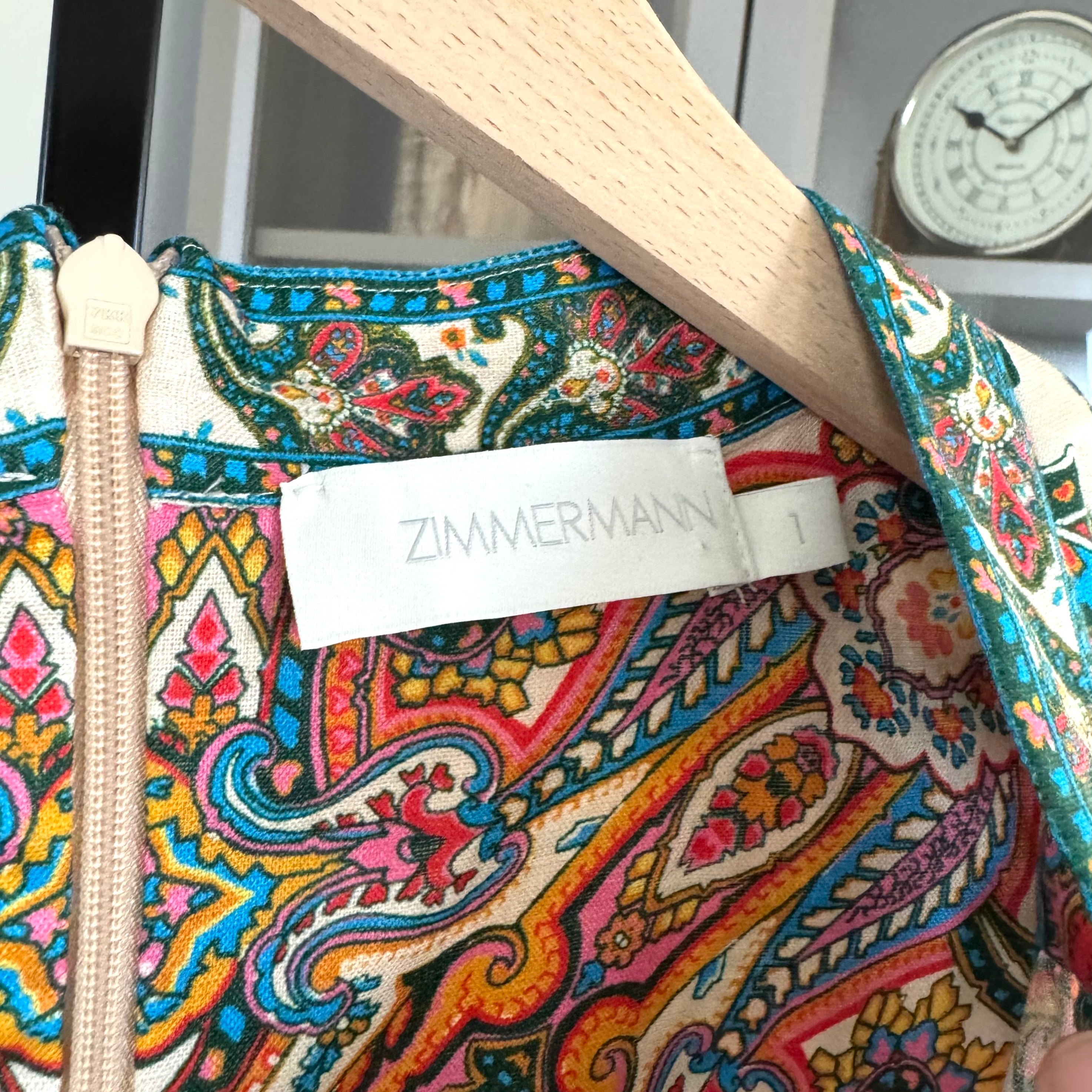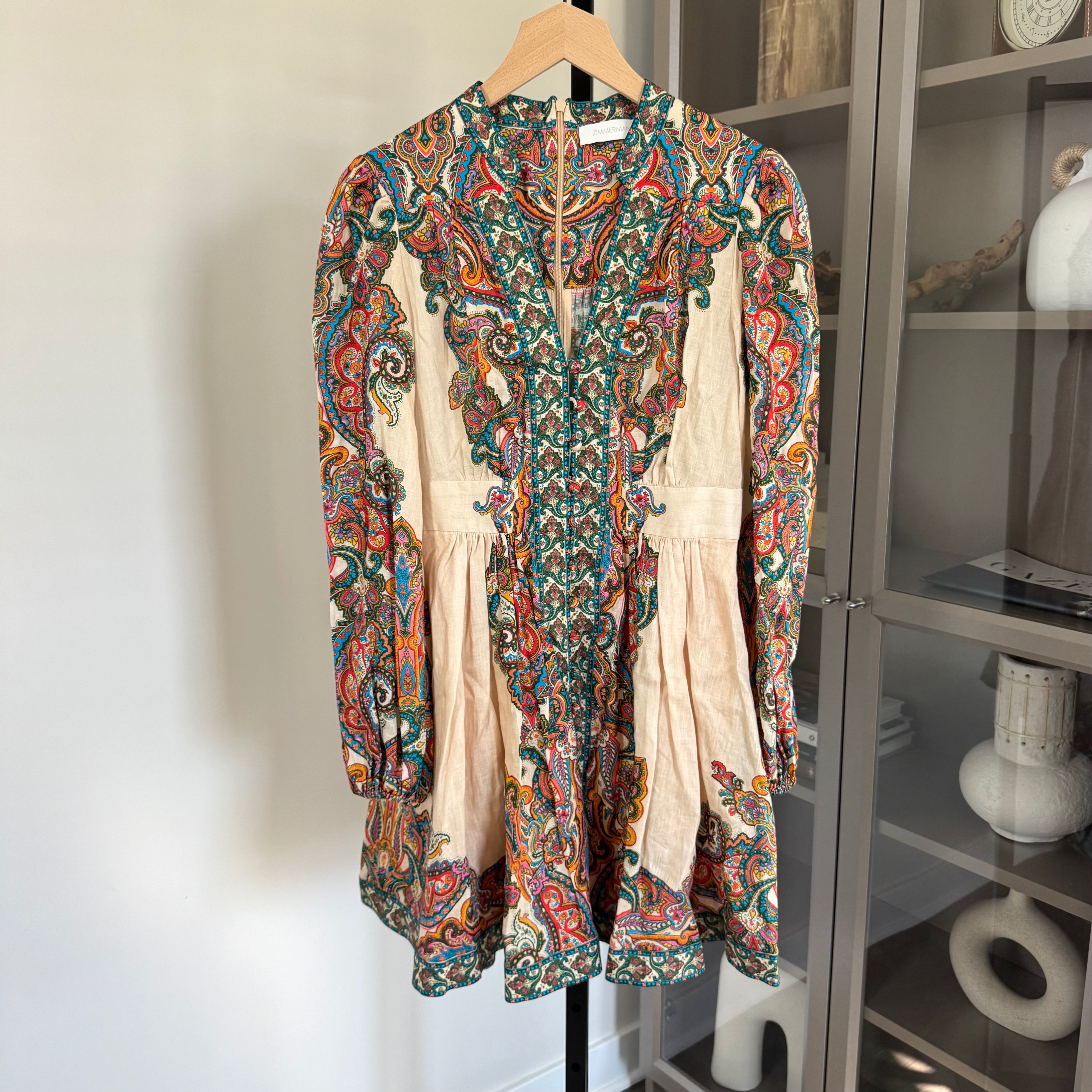 Zimmermann Paisley Linen Ottie Plunge Long Sleeve Mini Dress
