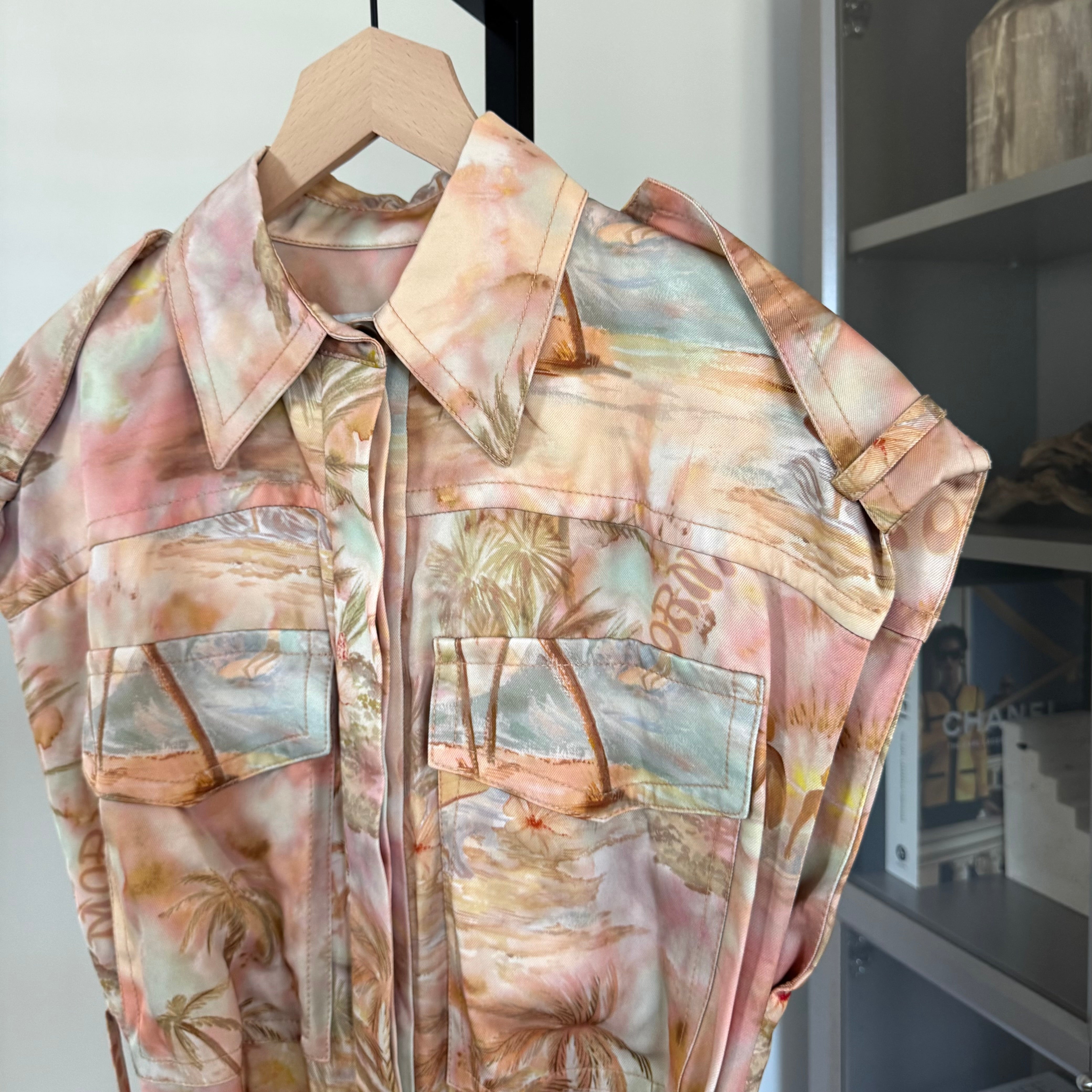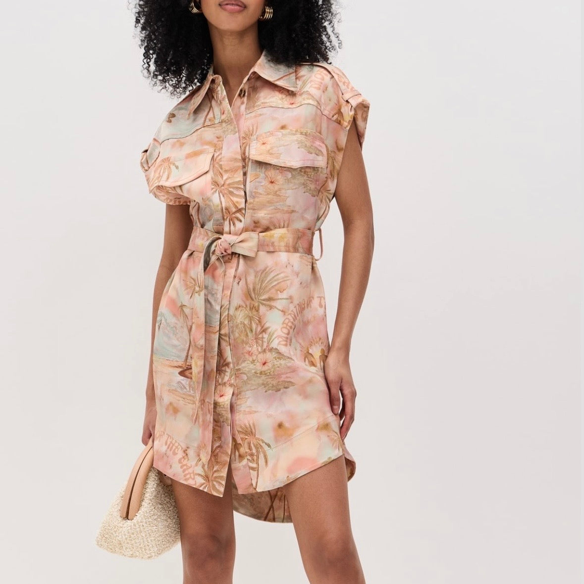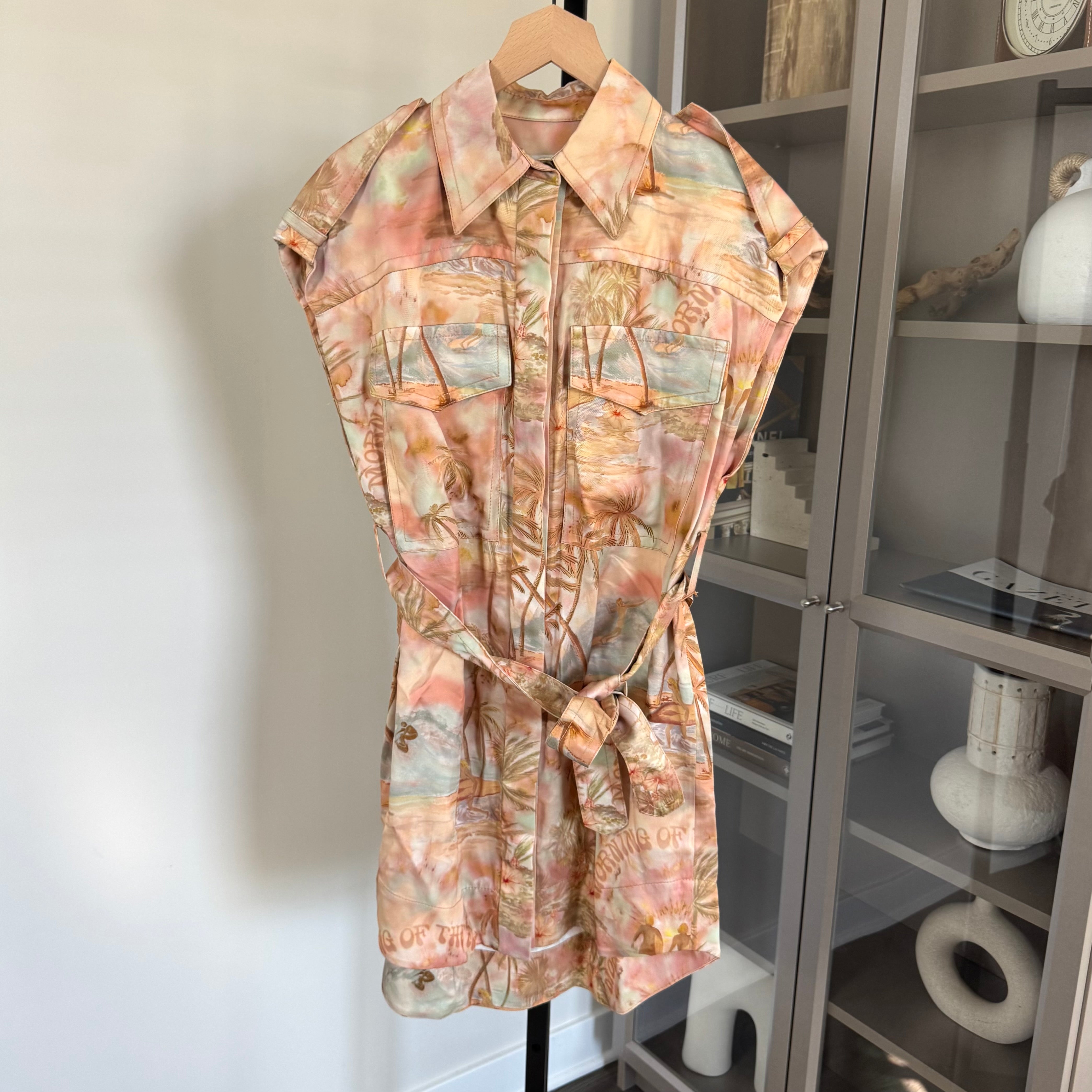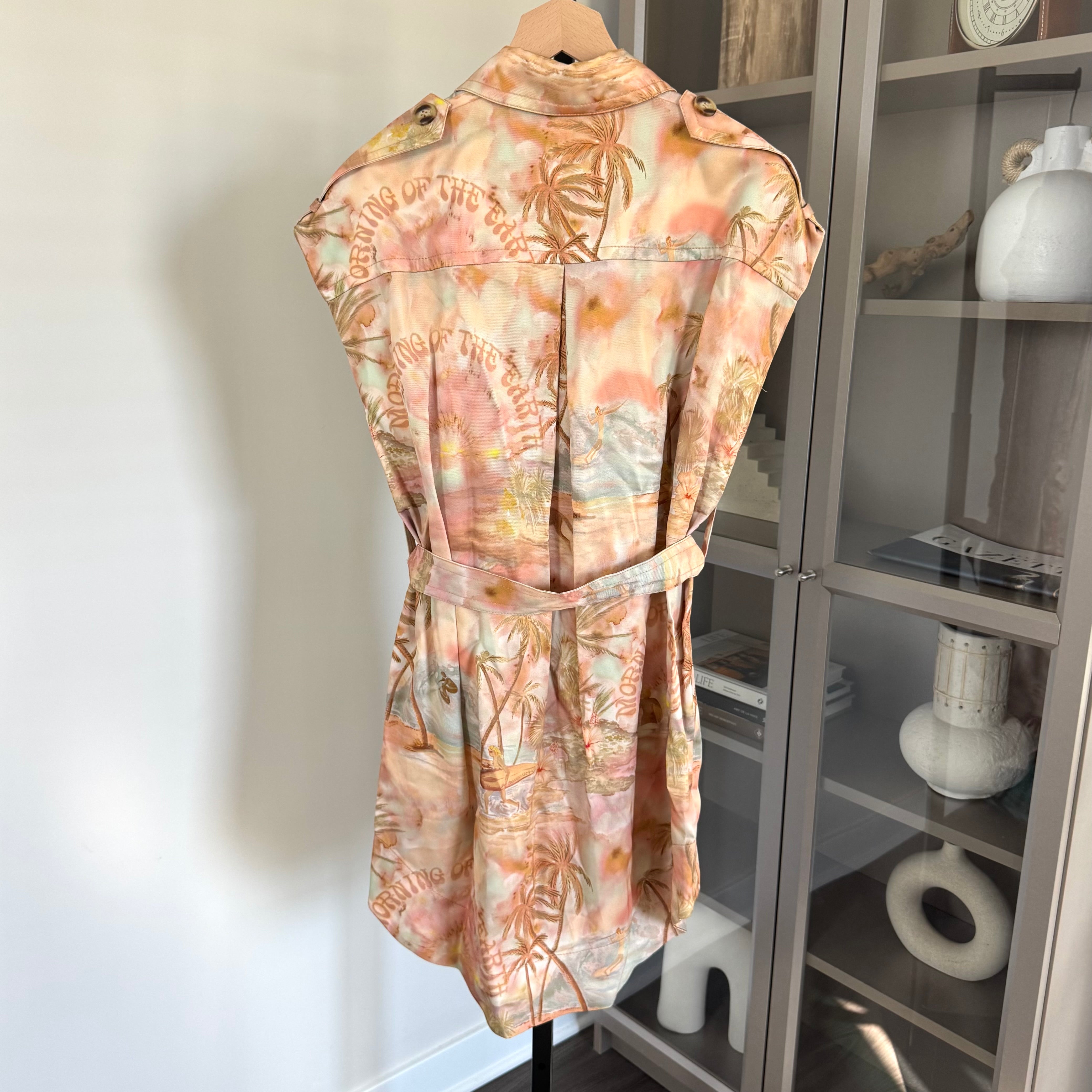 Zimmermann Collared Belted Illuminate Printed Sleeveless Tunic Dress