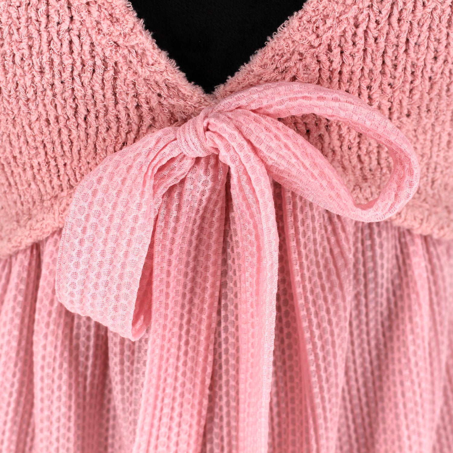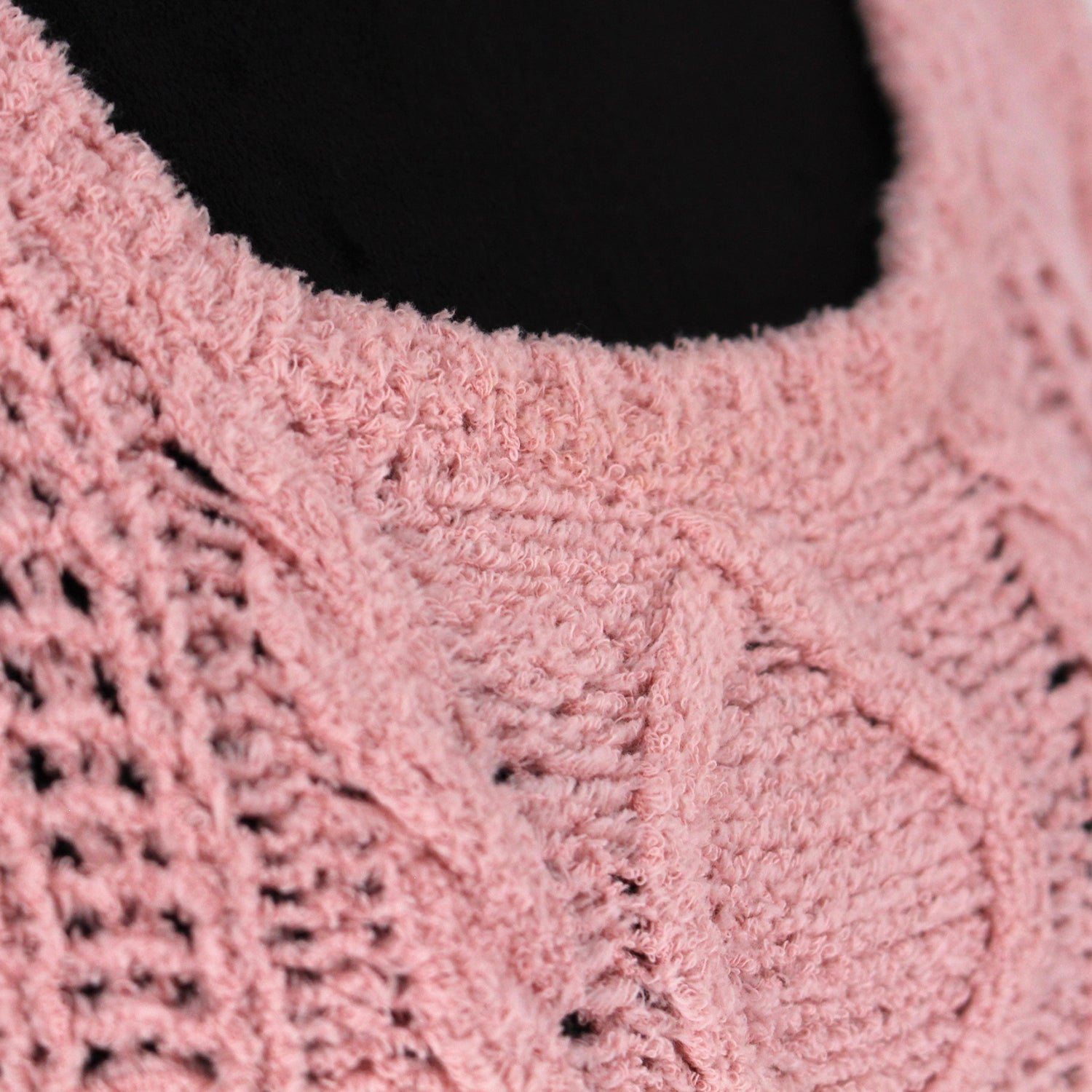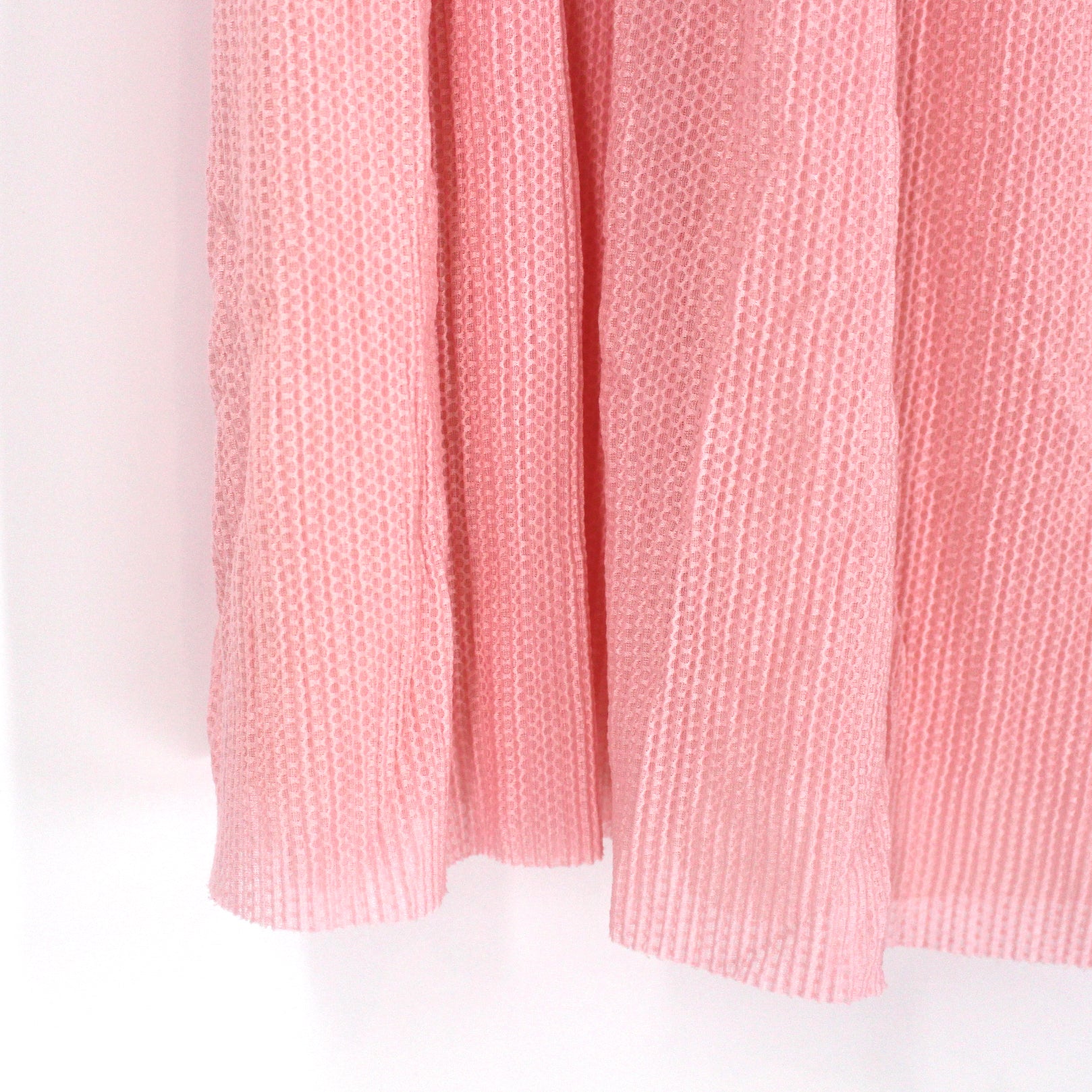 The cutest pink knit dress from Boutique Moschino. This designer piece starts with a knit top and finishes with a waffle knit skirt. Pairs perfectly with your favorite heart locket necklace.