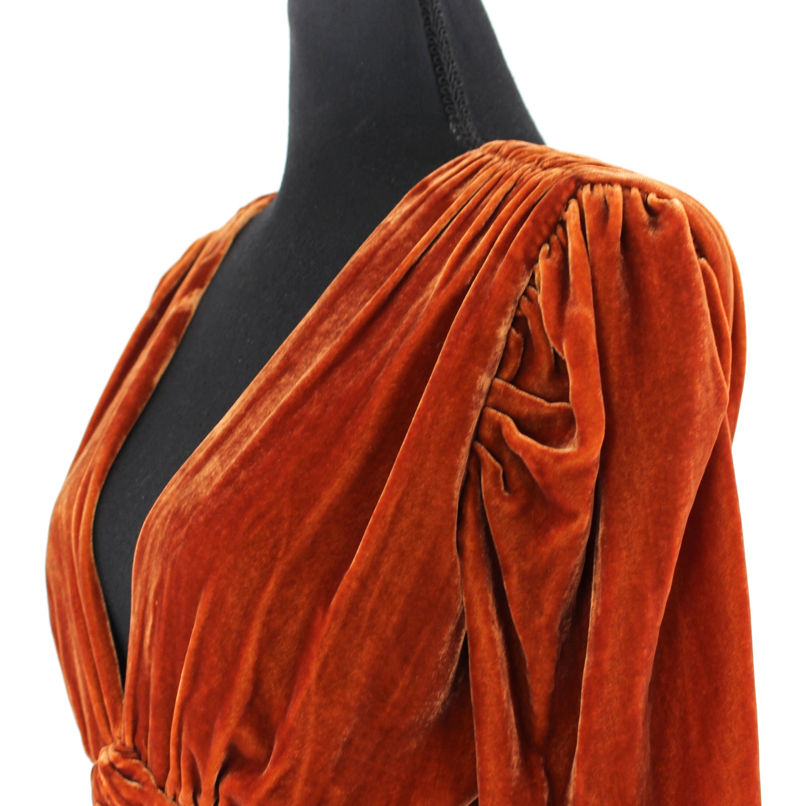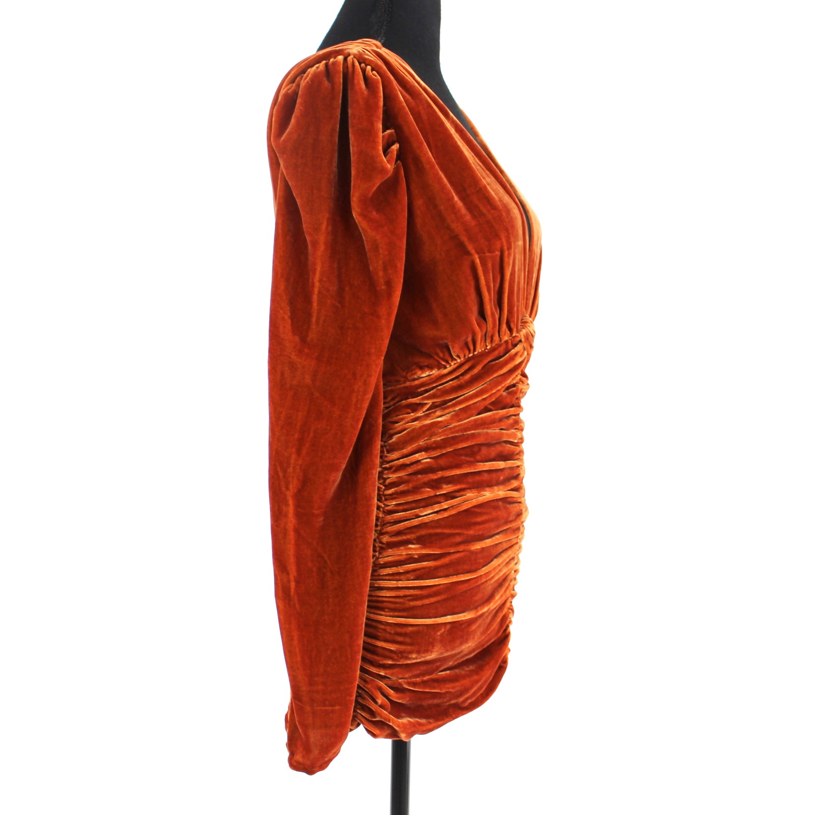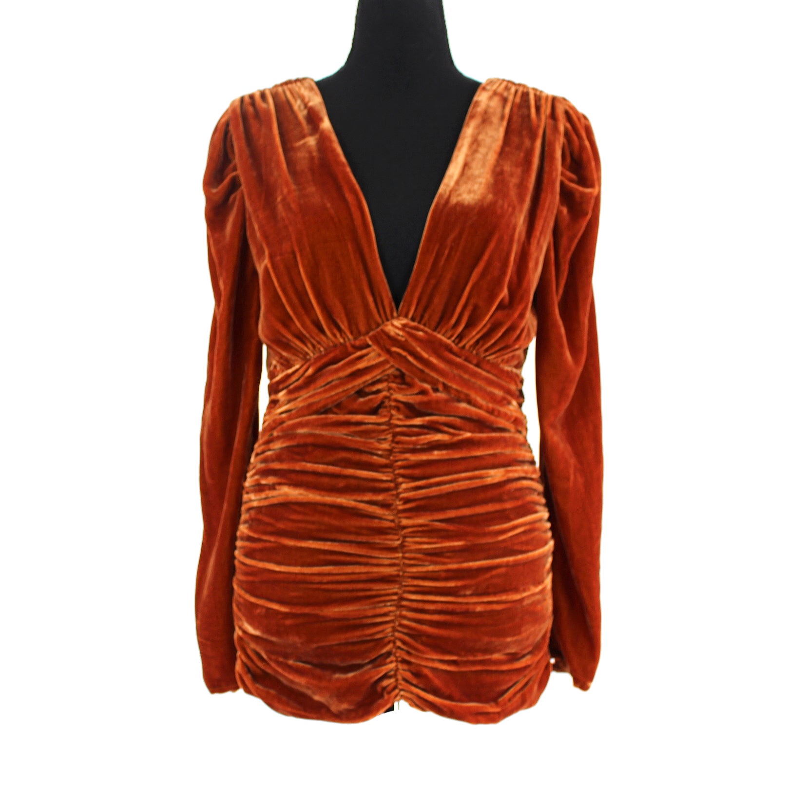 NICHOLAS Gathered Party Tobacco Brown Velvet Long Sleeve Mini Dress