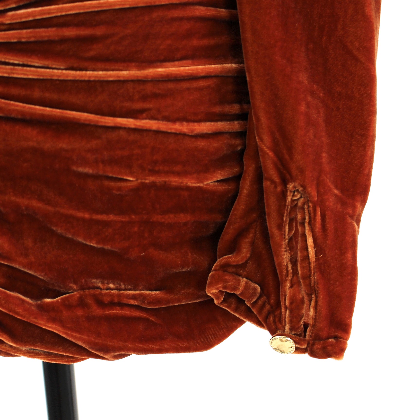 - Long sleeves with gold tone button cuffs