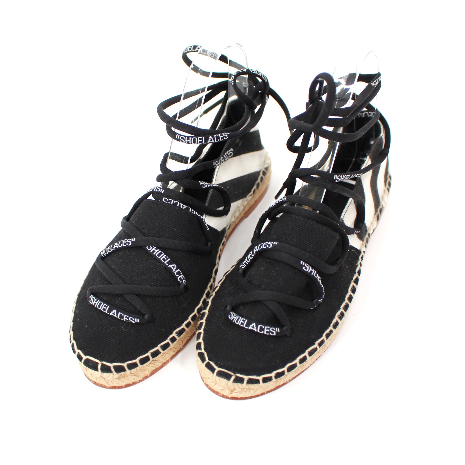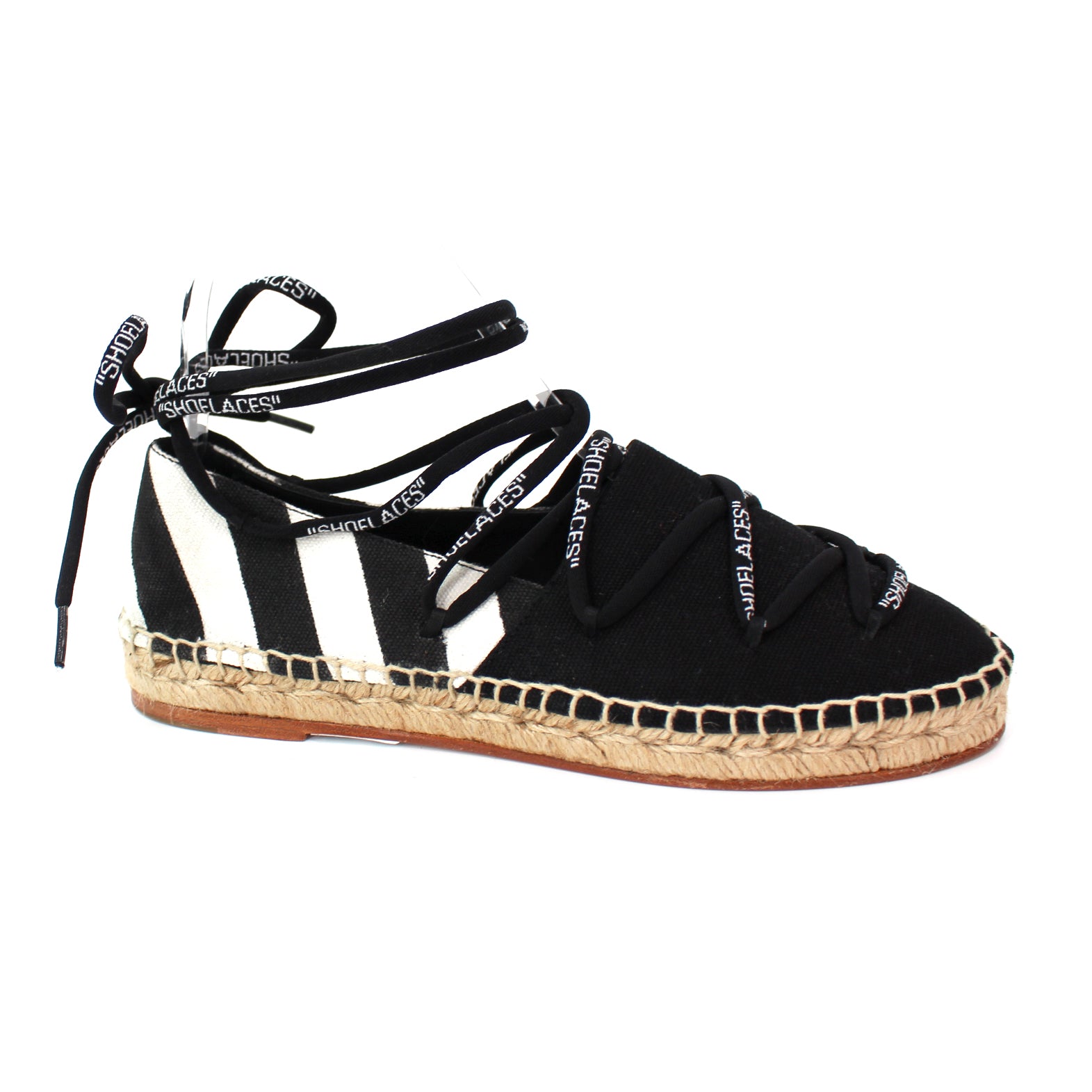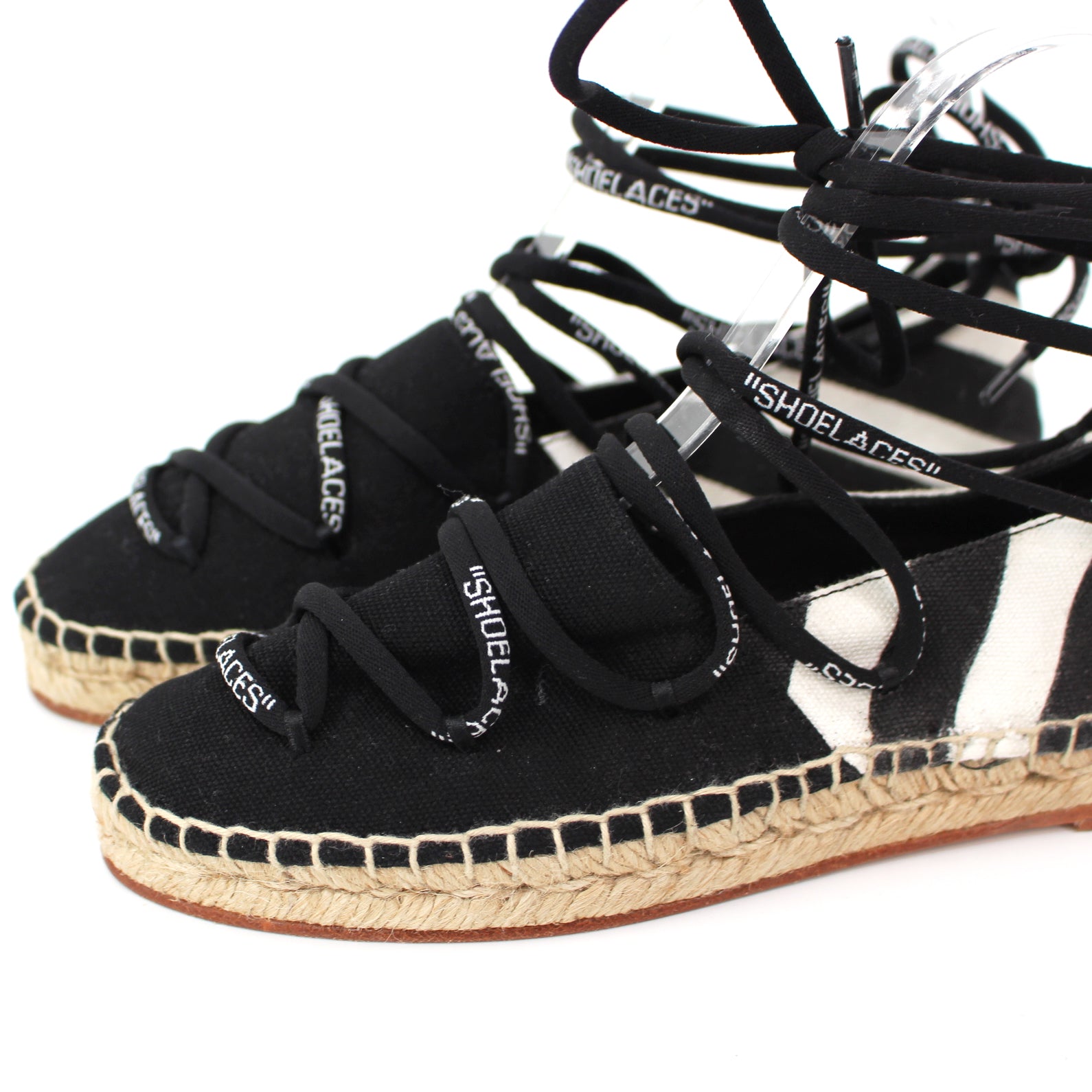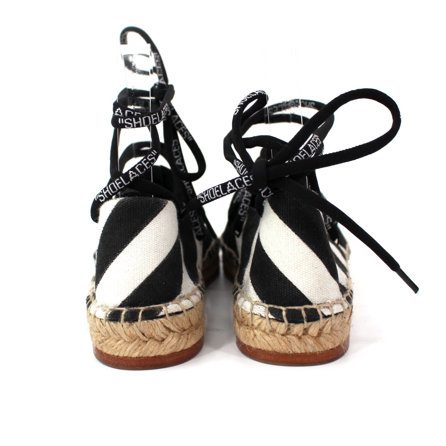 Off-White Black White Diagonal Stripe Ankle Wrap Canvas Espadrilles
