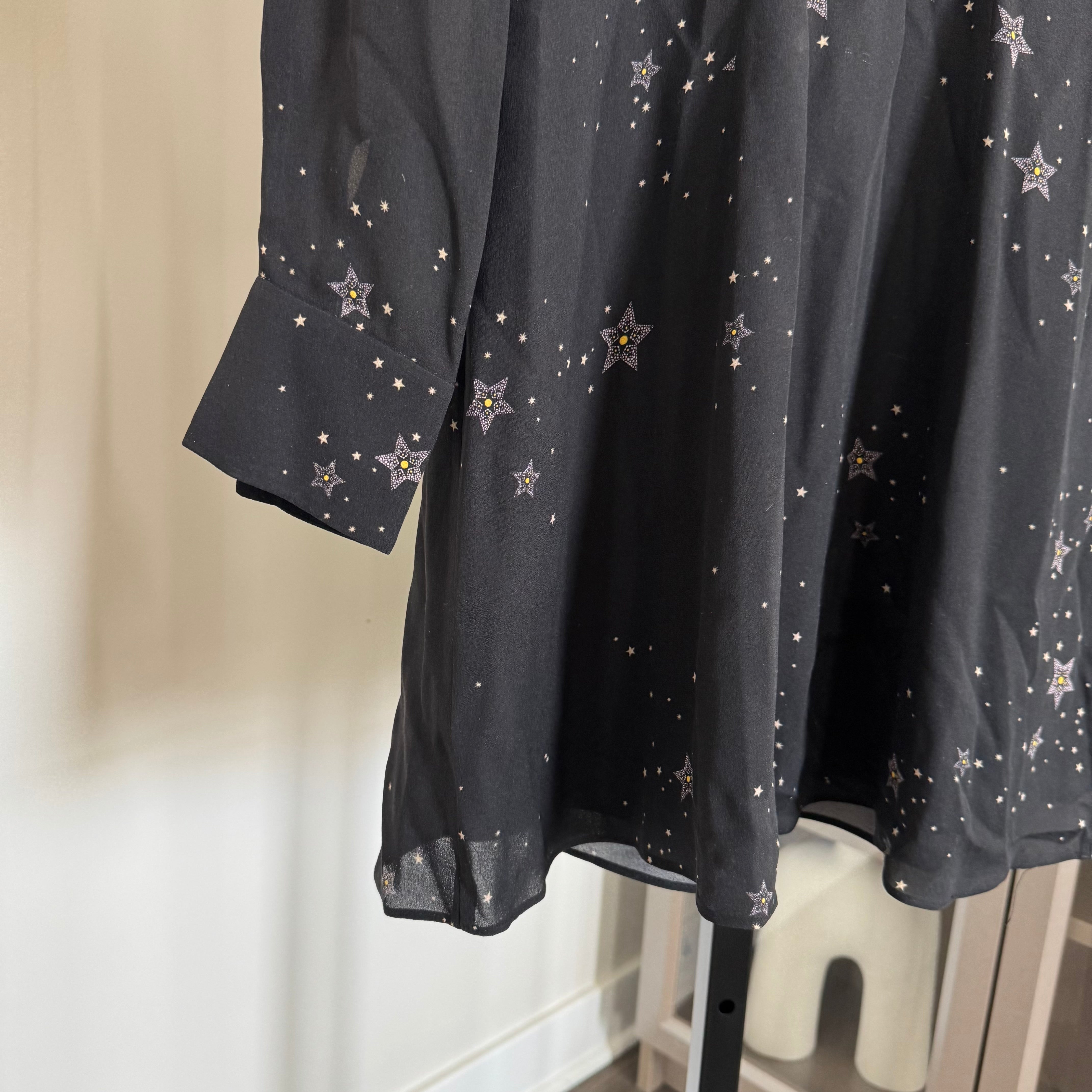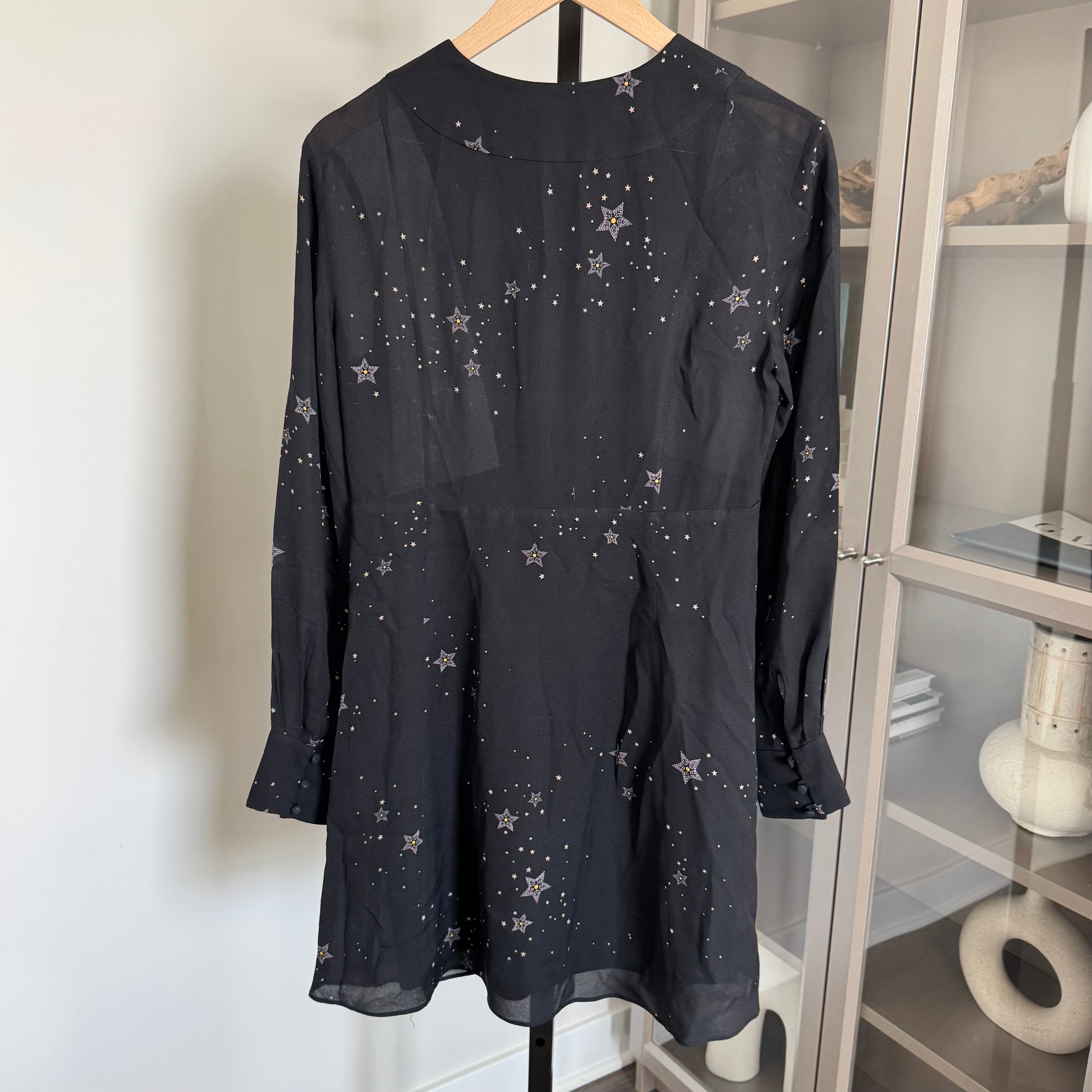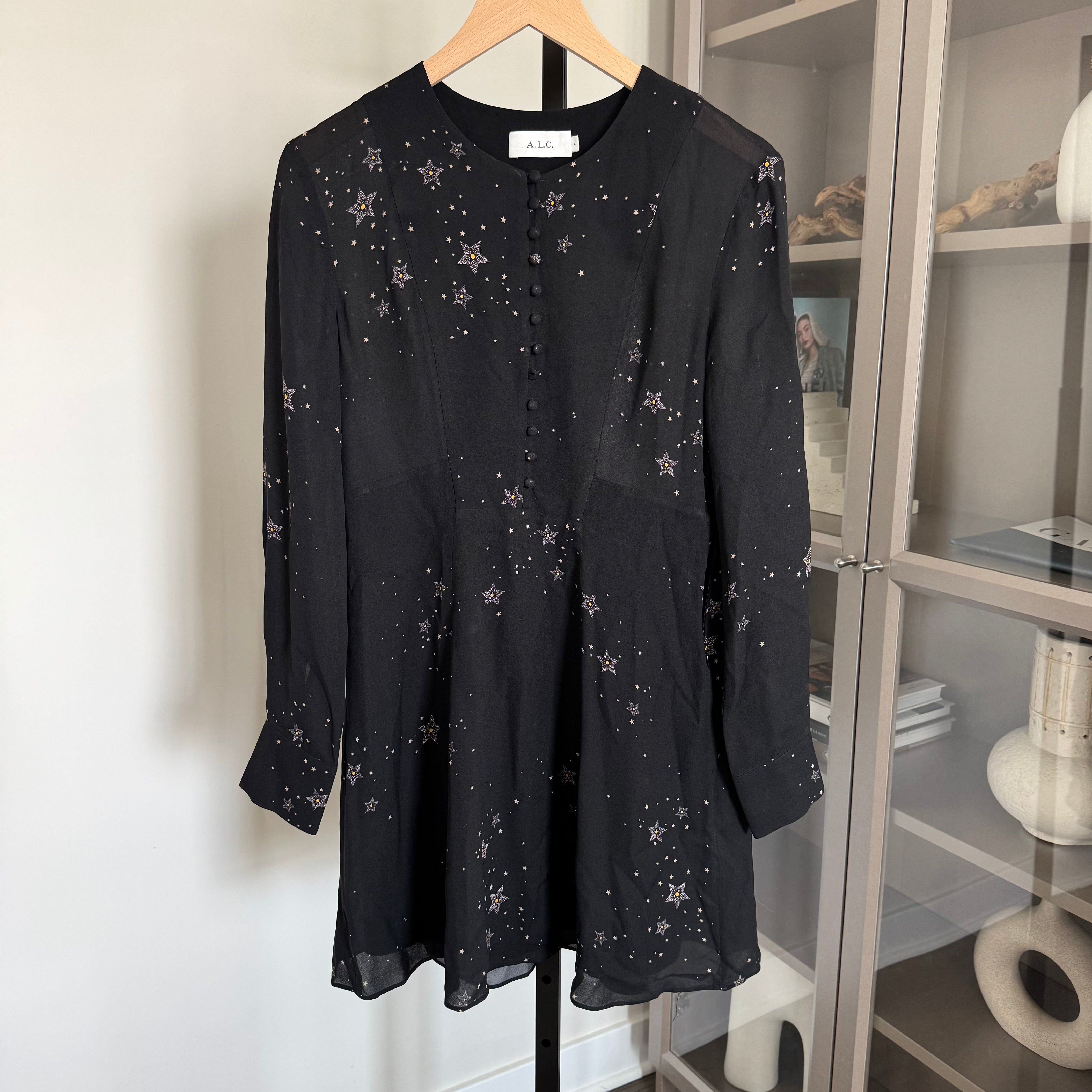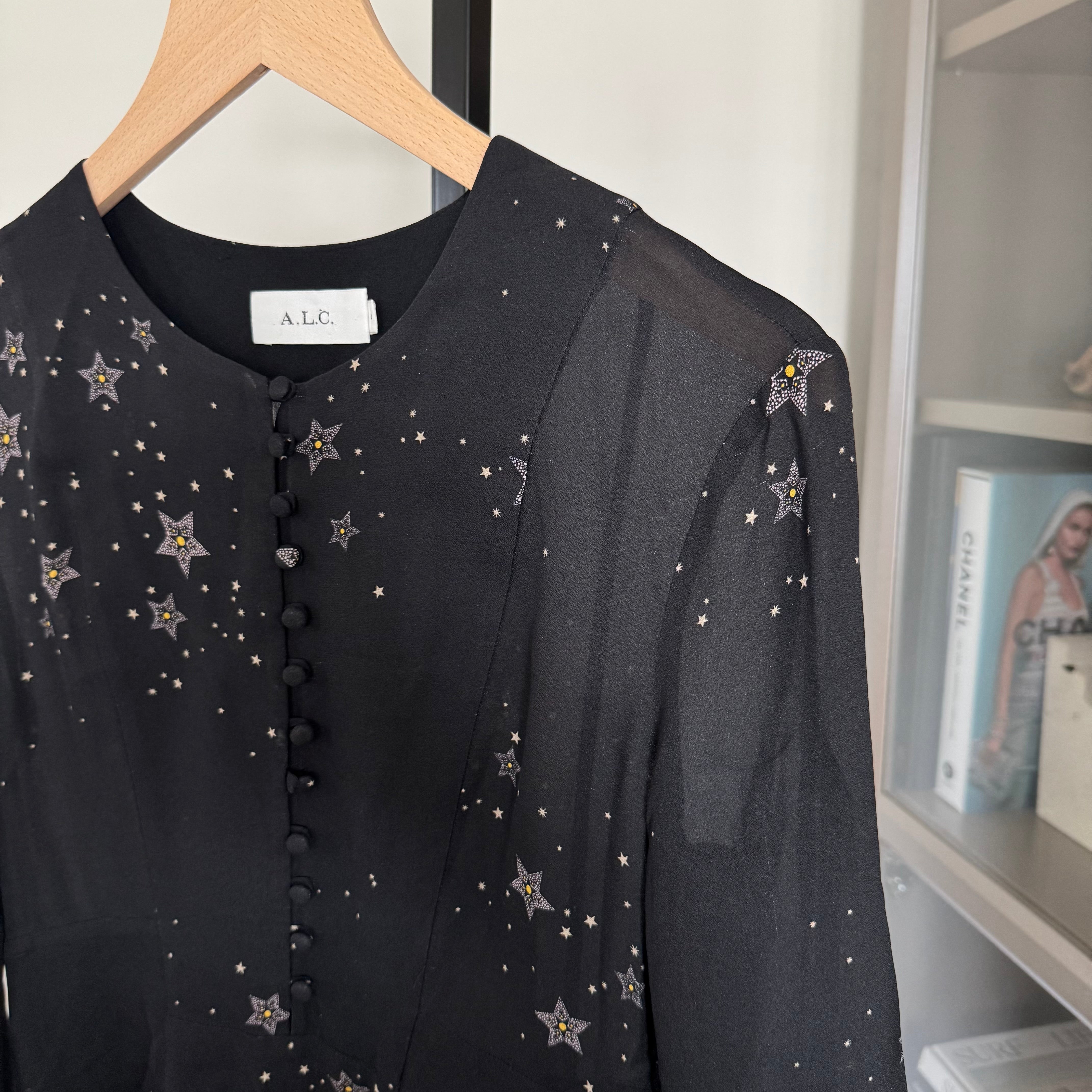 A.L.C. Black Silk Constellation Star Print Long Sleeve Mini Dress
