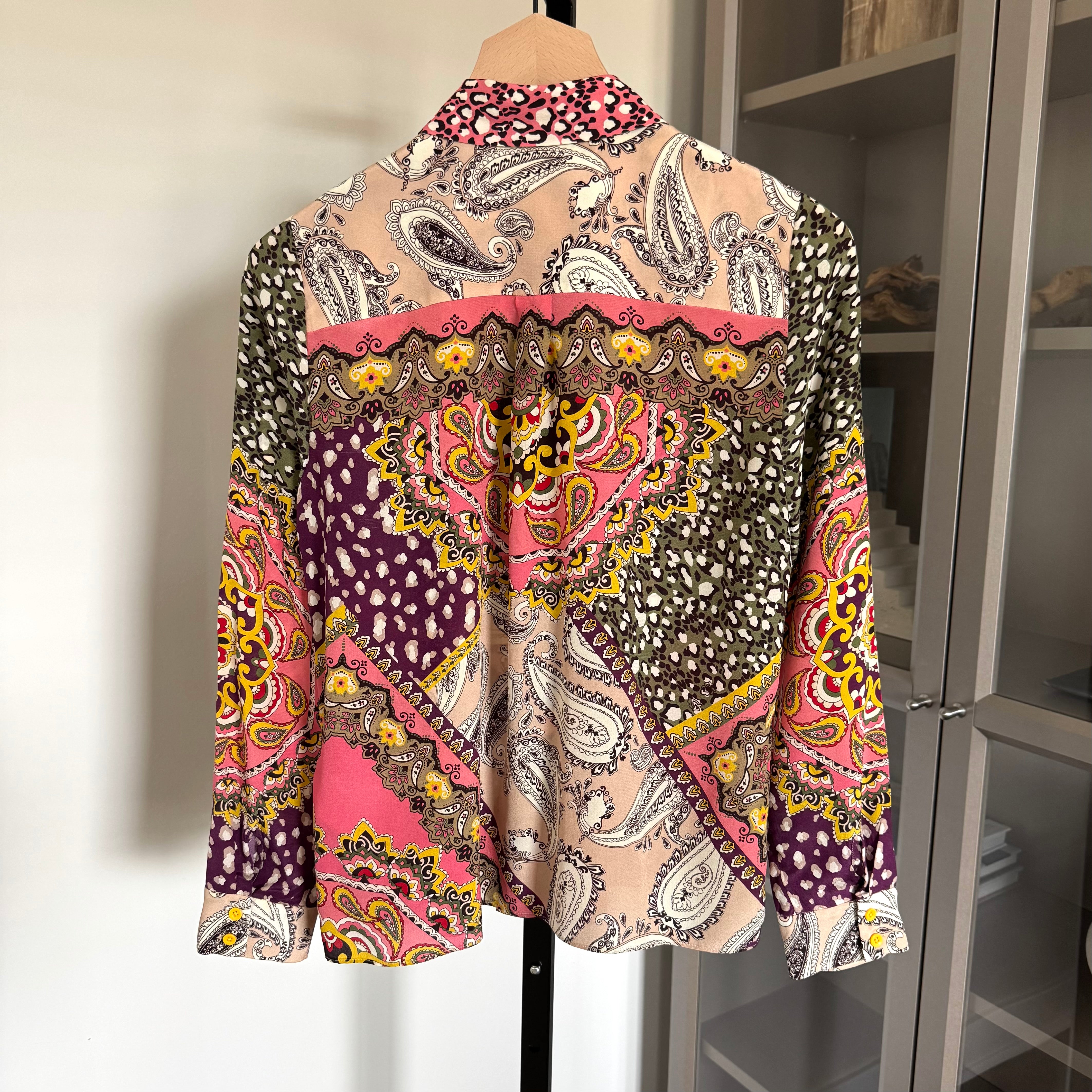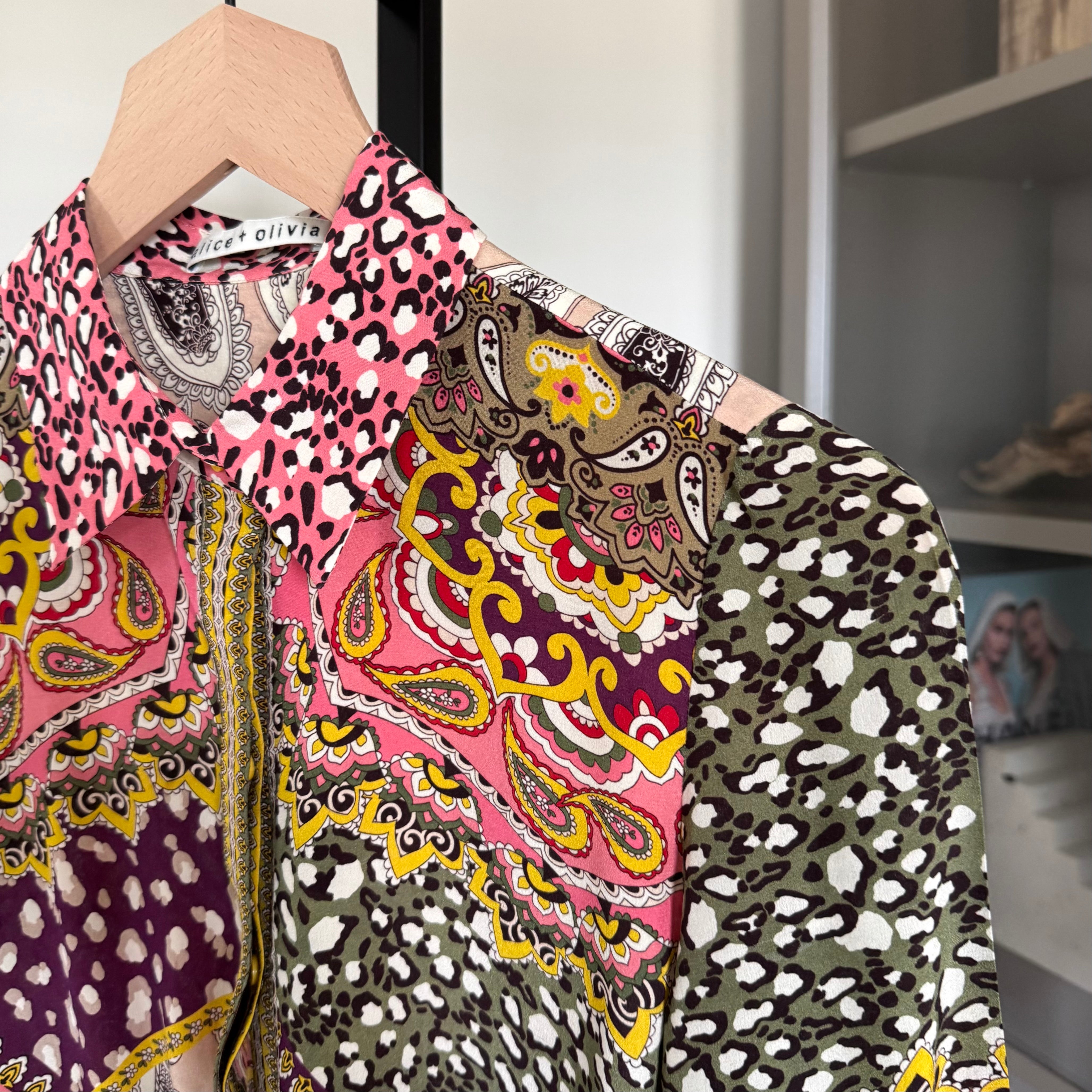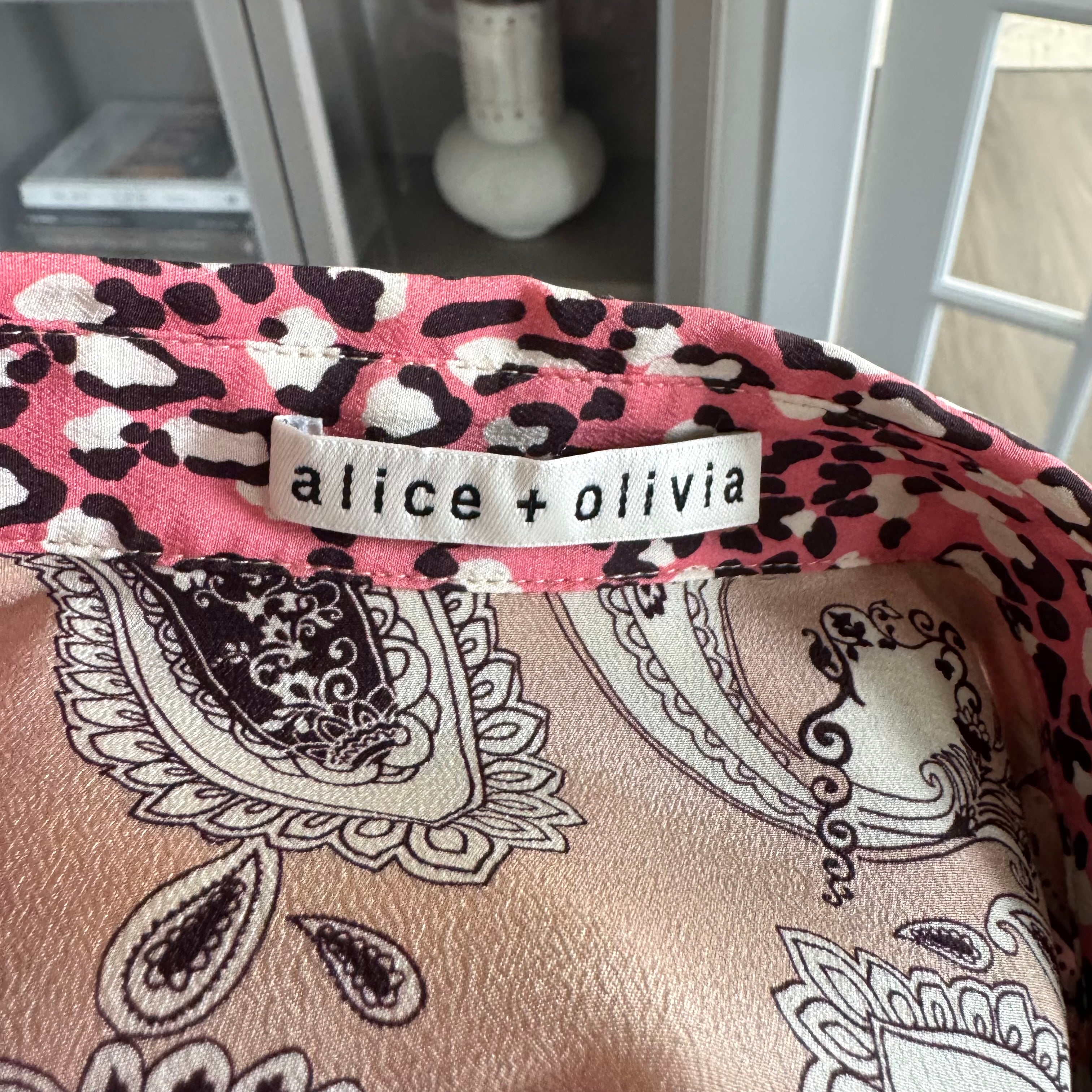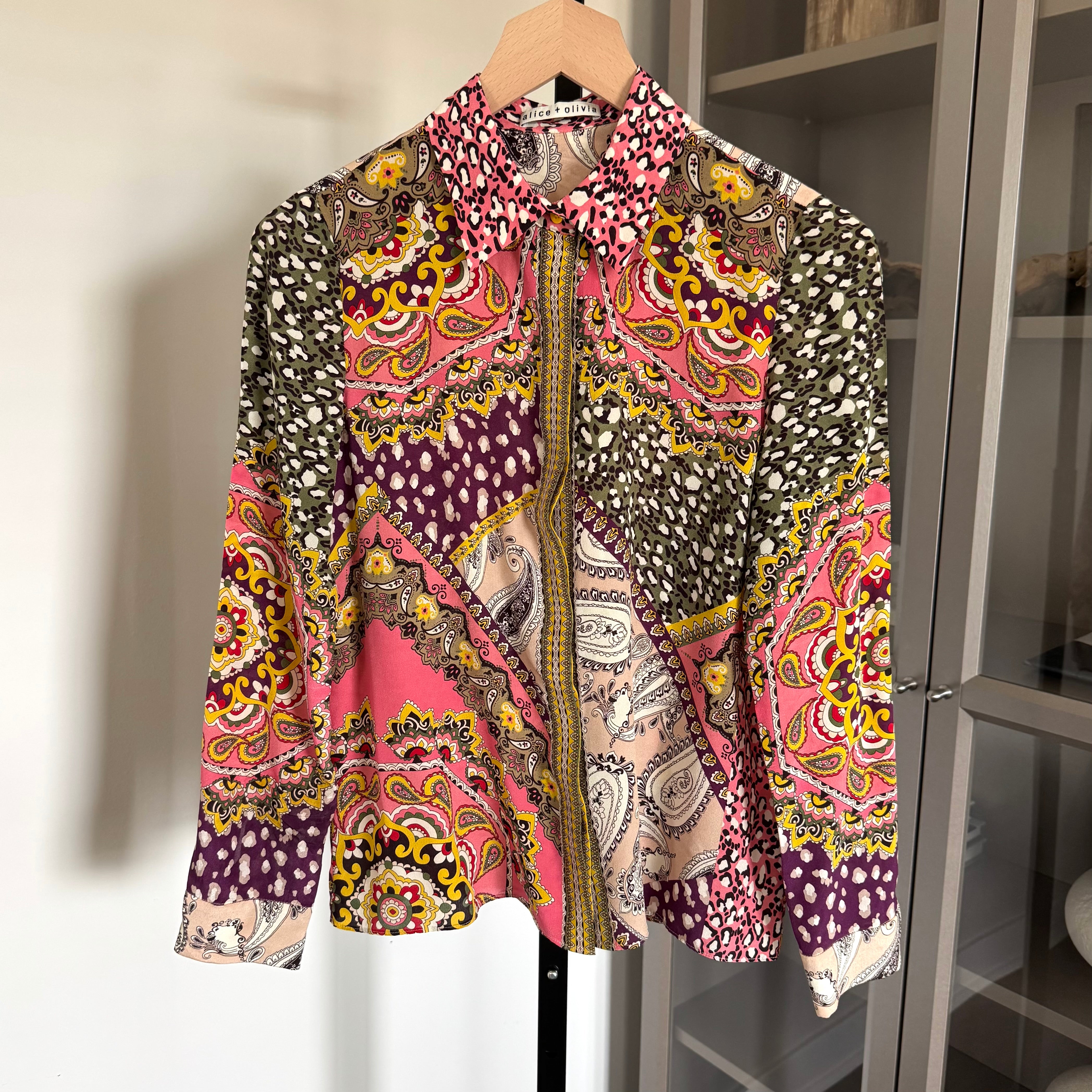 Alice + Olivia Willa Silk Concealed Multicolor Paisley Blouse