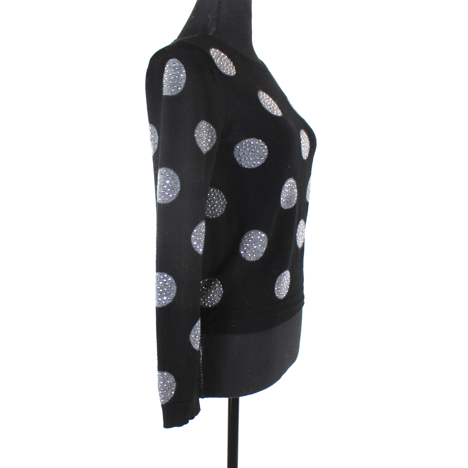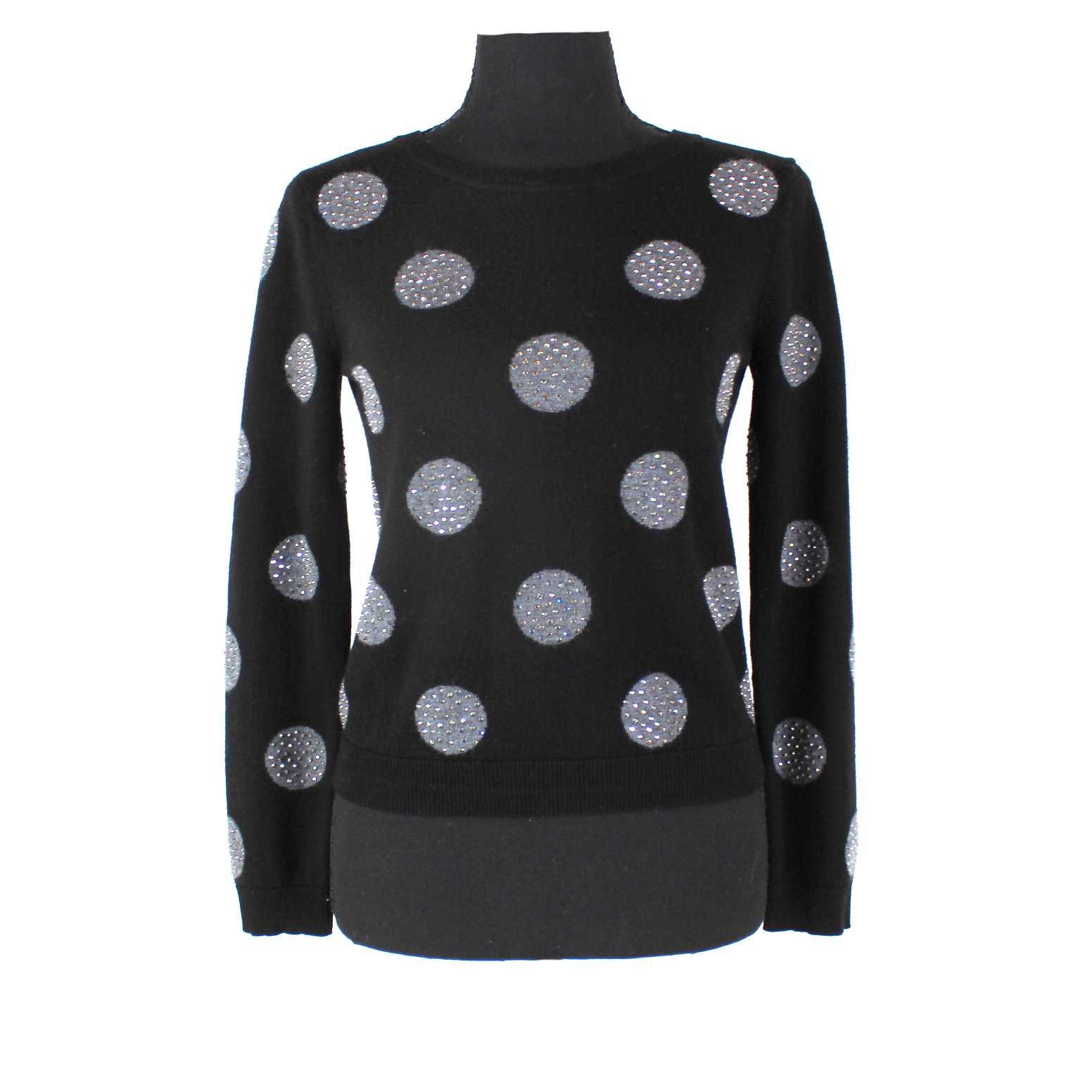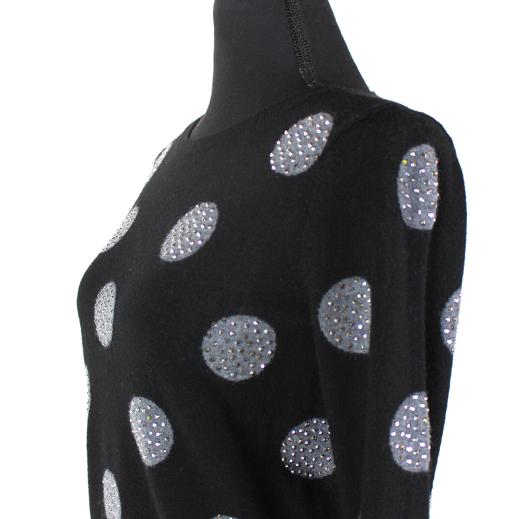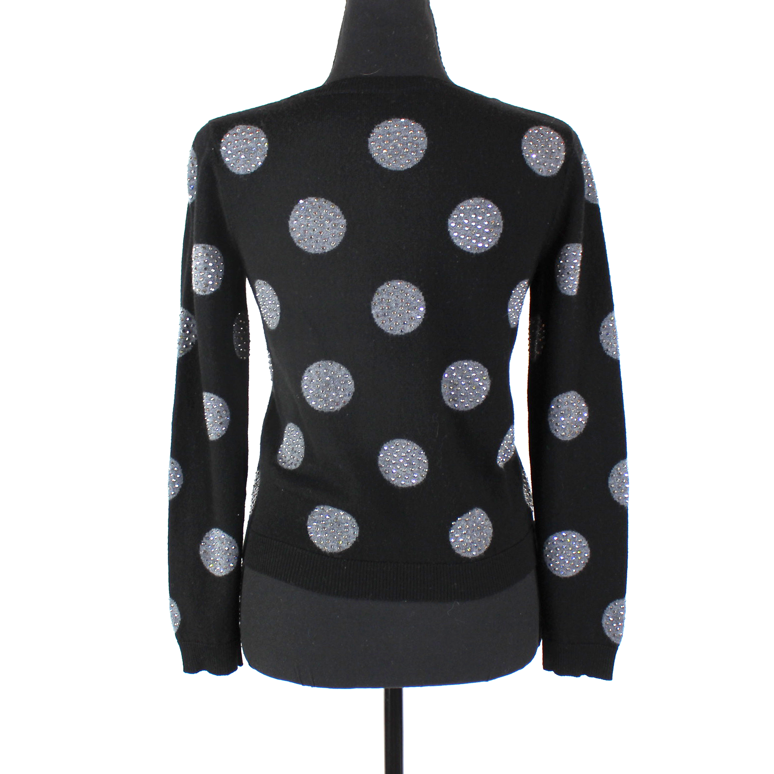 Alice + Olivia Black Wool Grey Studded Embellished Polka Dot Sweater