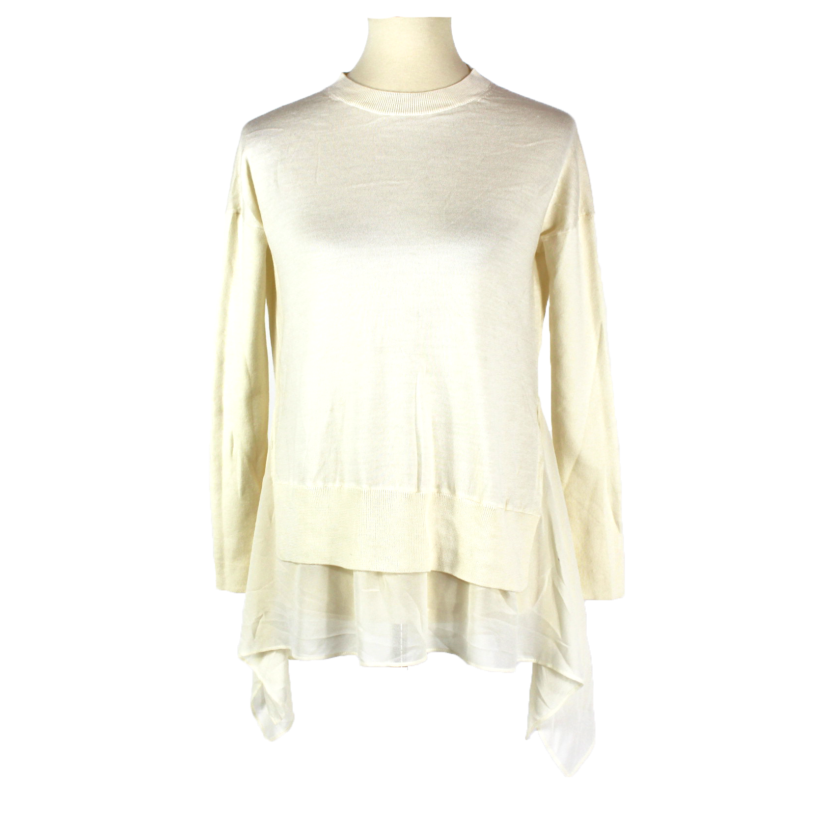 All Saints Libby Contrast Trim Ivory Handkerchief Hem Long Sleeve Sweater