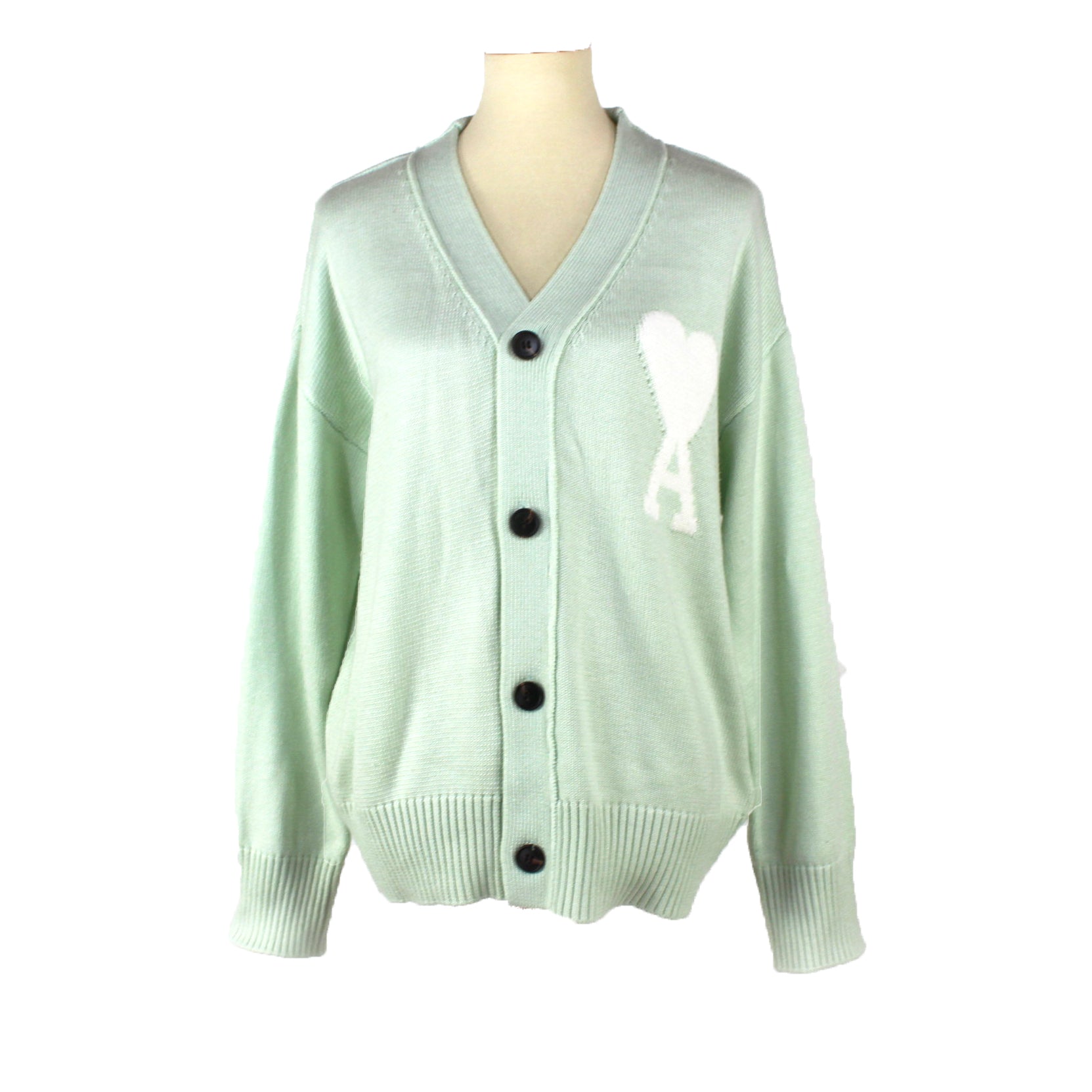 AMI Mint Big Heart Logo Cardigan