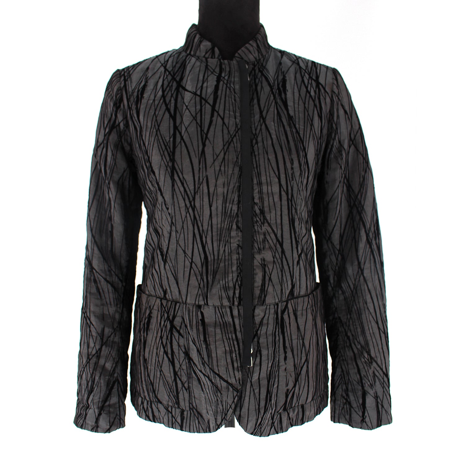 ARMANI Collezioni Grey Textured Velvet Zip Bomber Jacket.