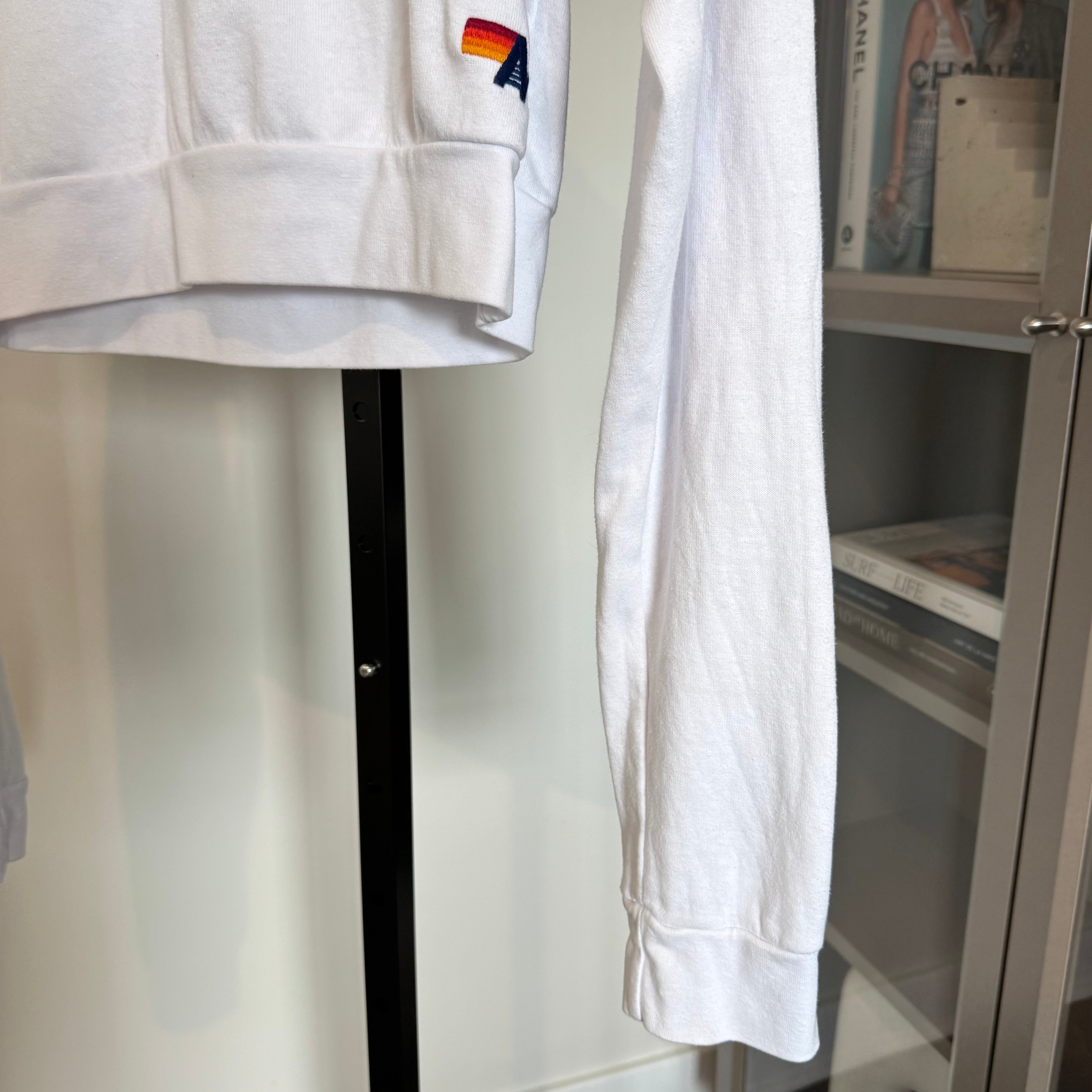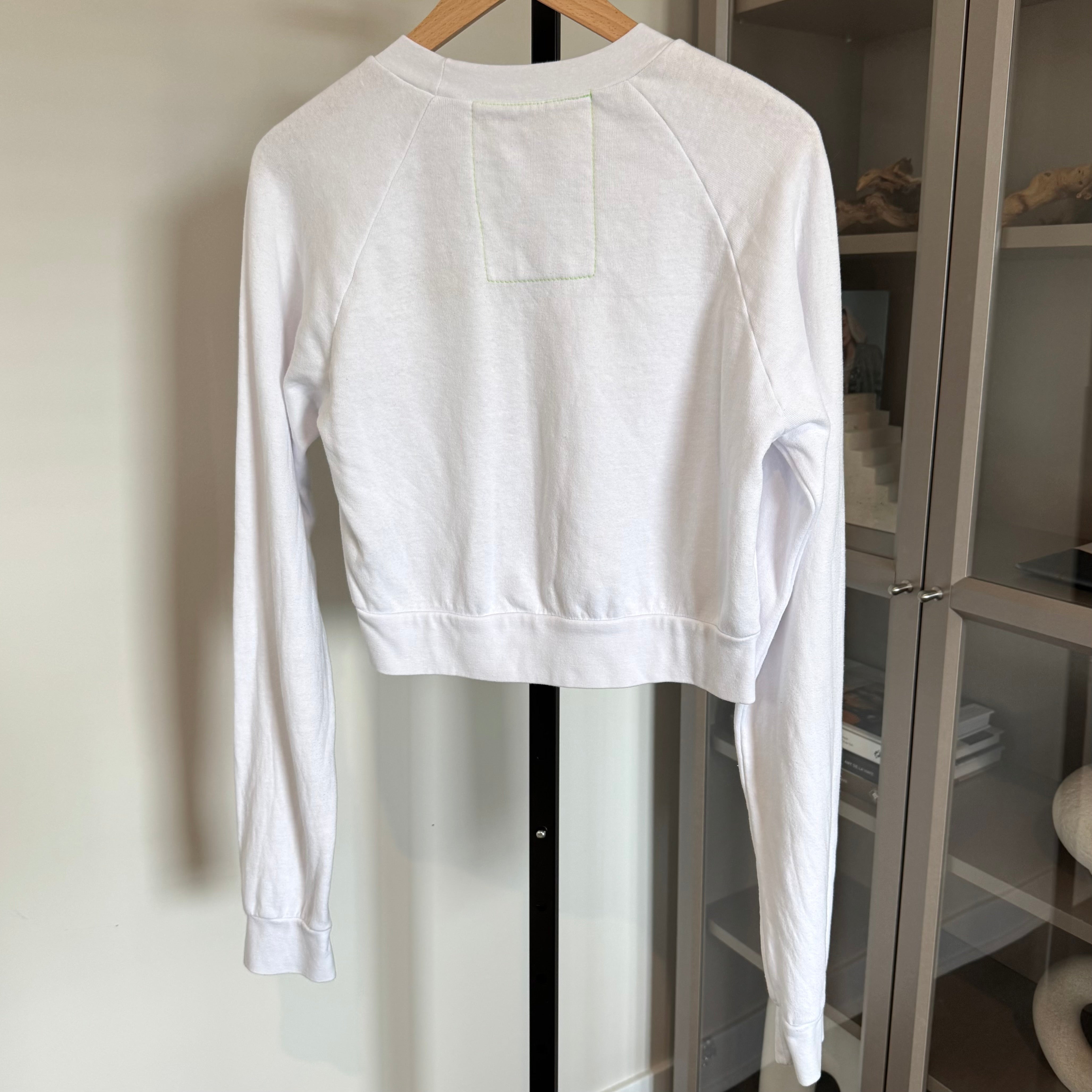 Aviator Nation Aspen Embroidered Cropped Crewneck White Sweatshirt