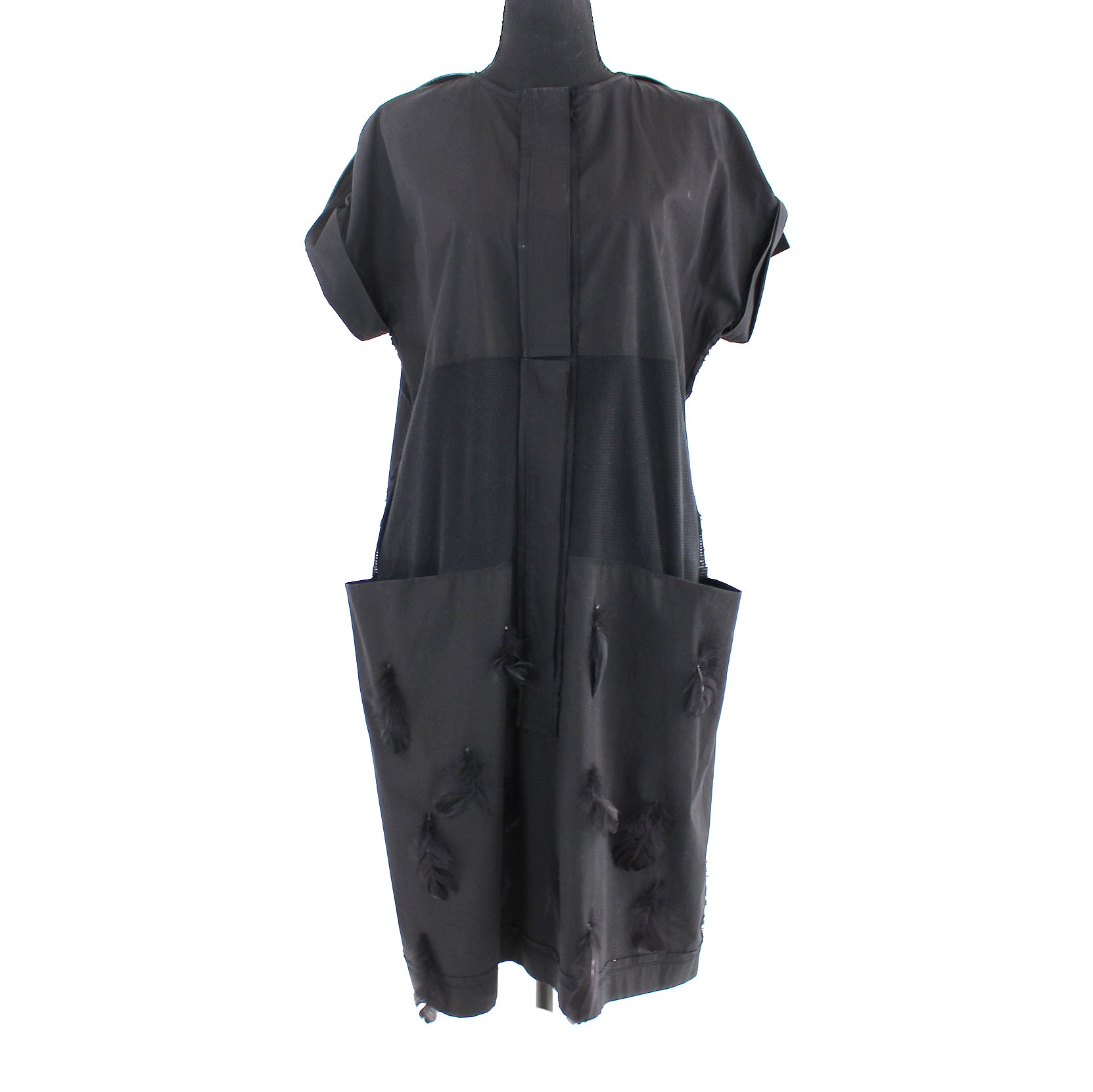 Bottega Veneta Black Feather Embellished Fly Fishing Motif Shirt Dress