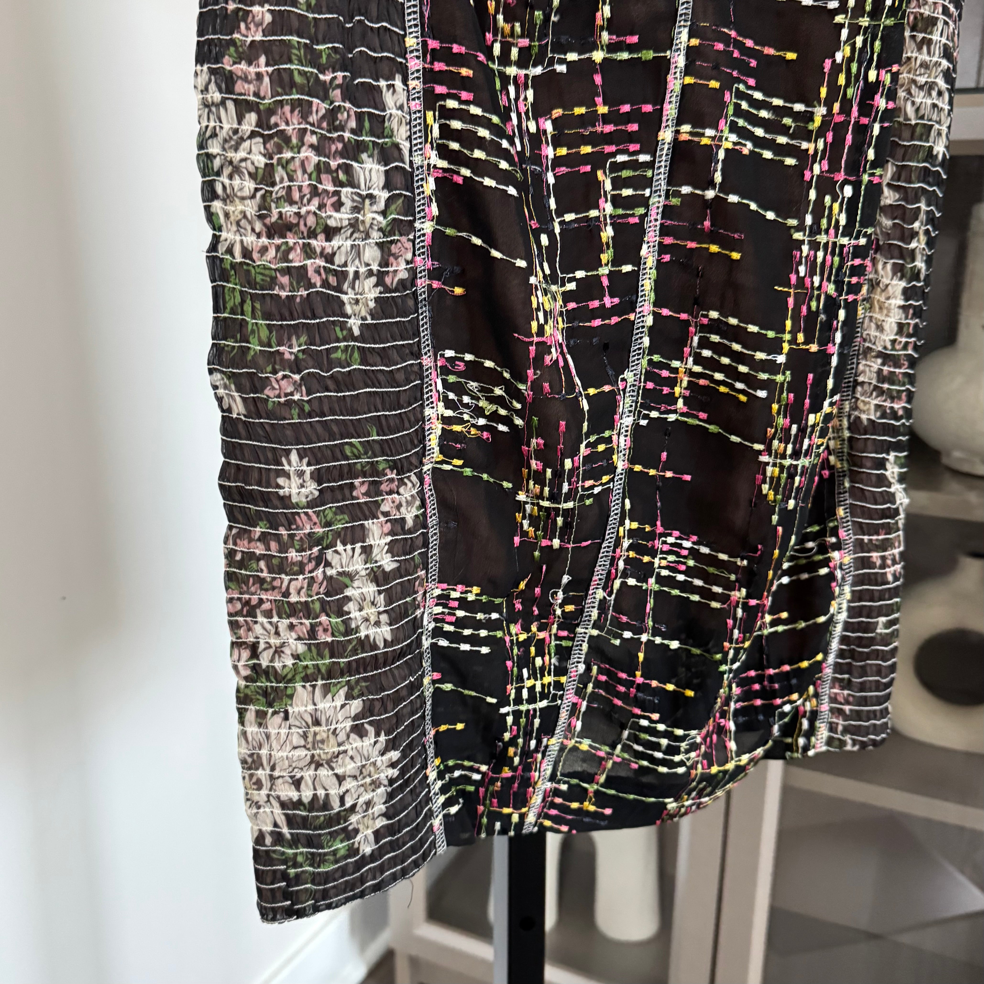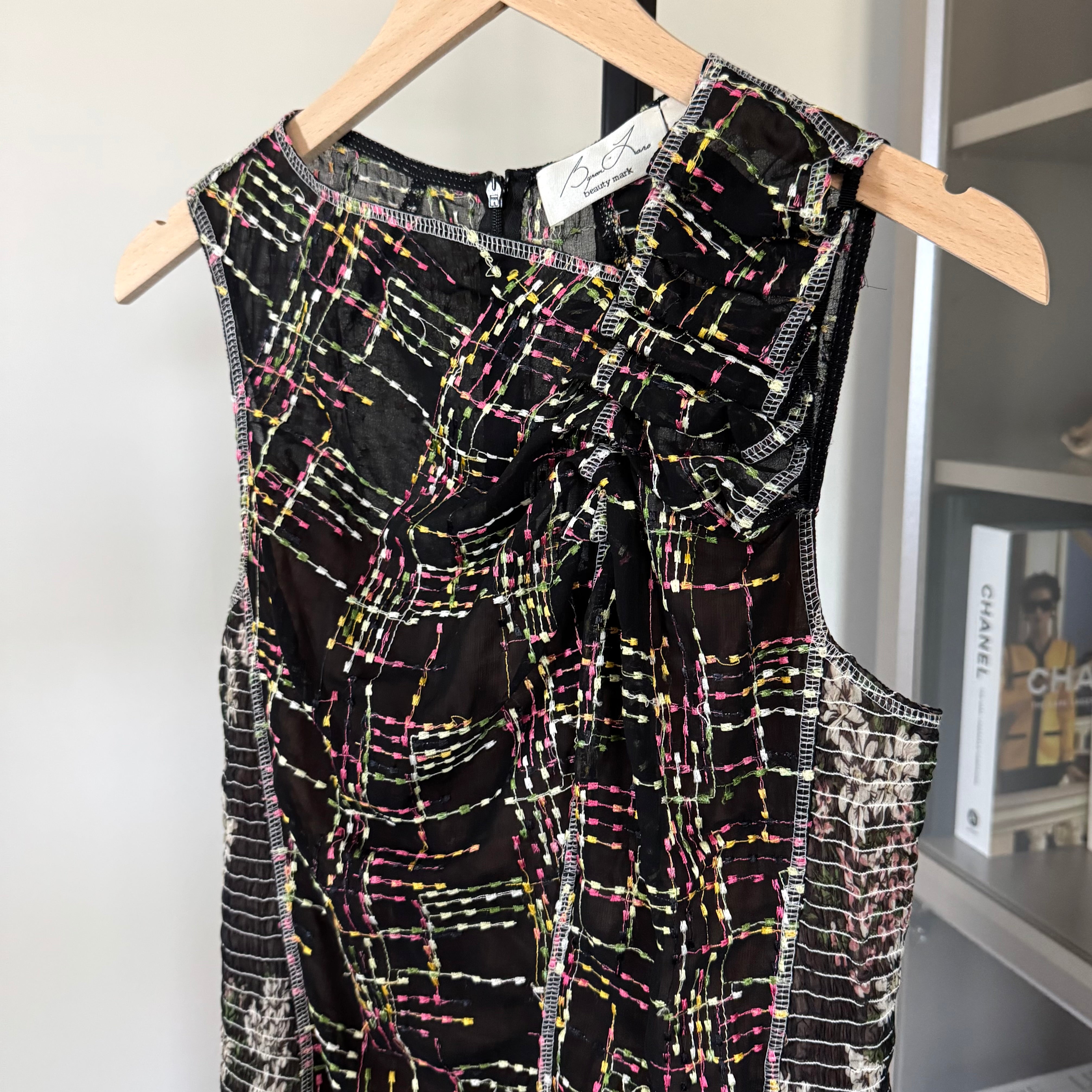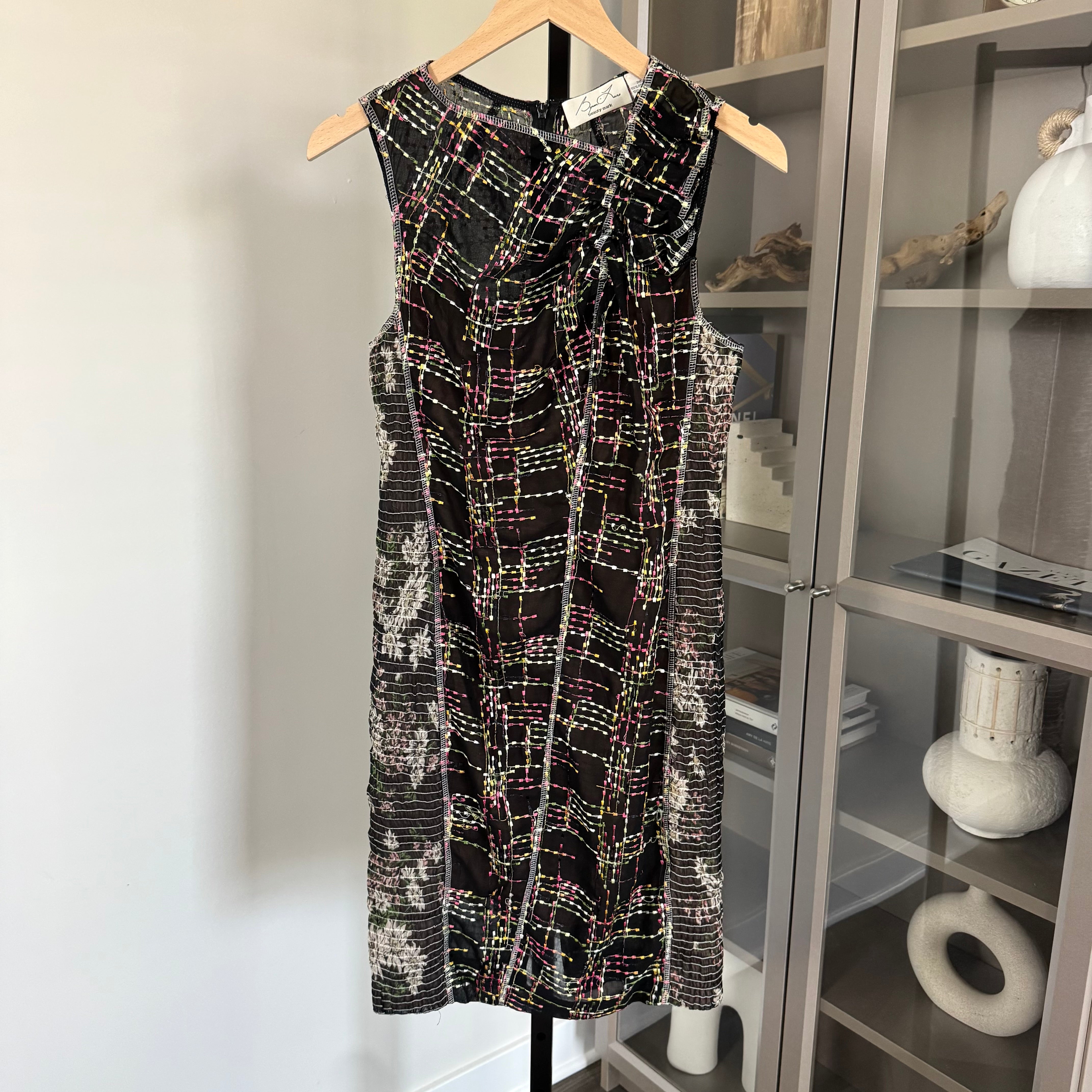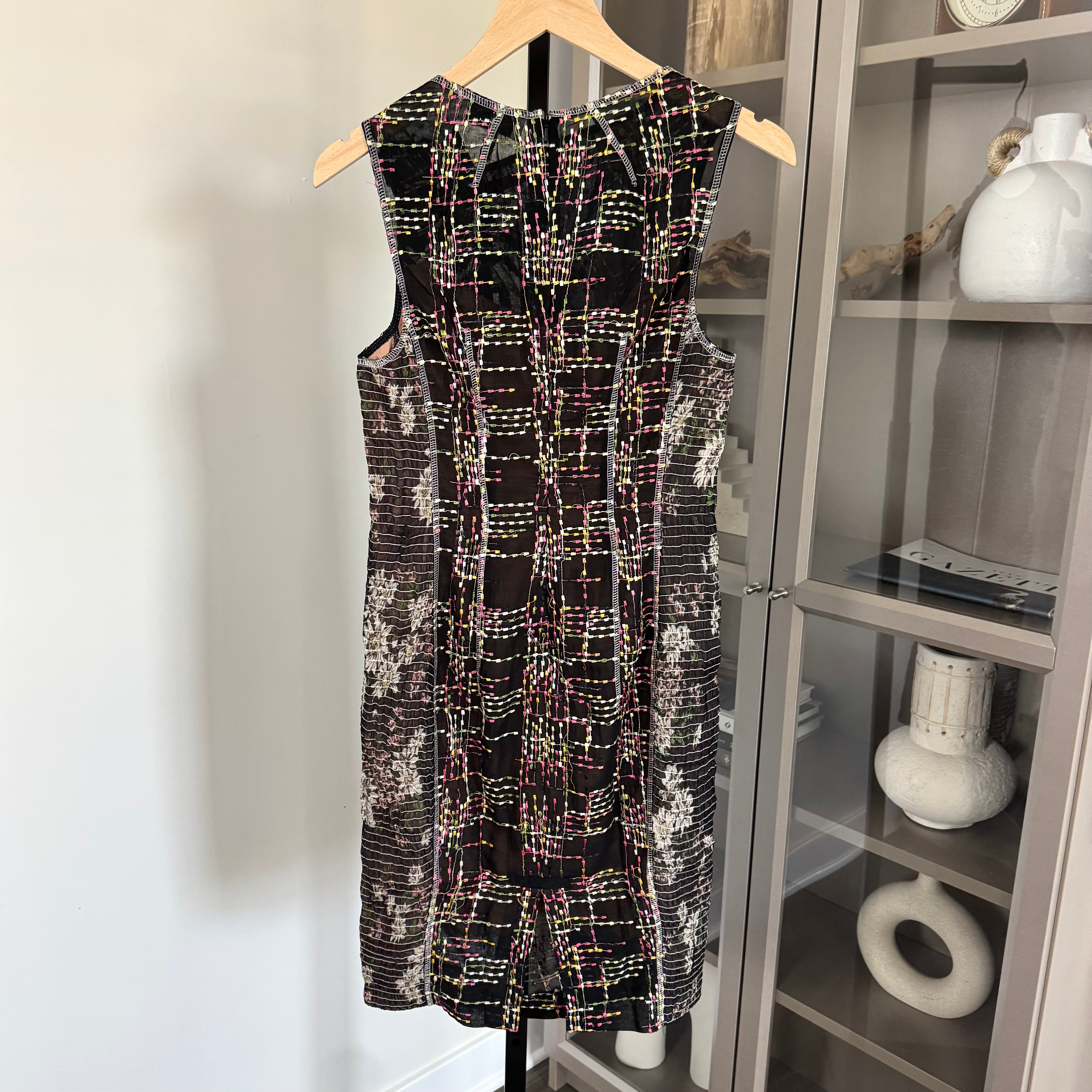 Byron Lars Beauty Mark London Lights Black Multicolor Sheath Embroidered Dress