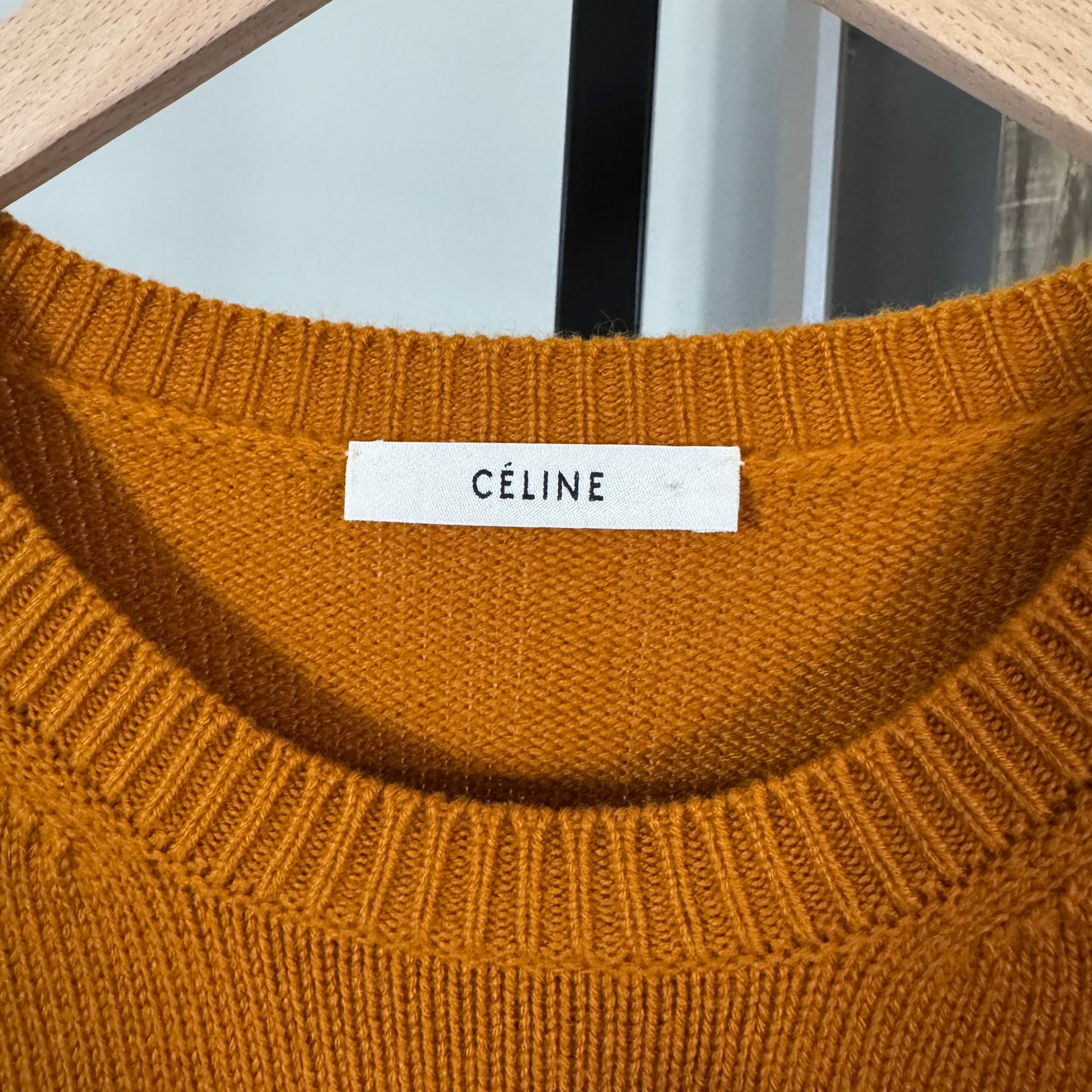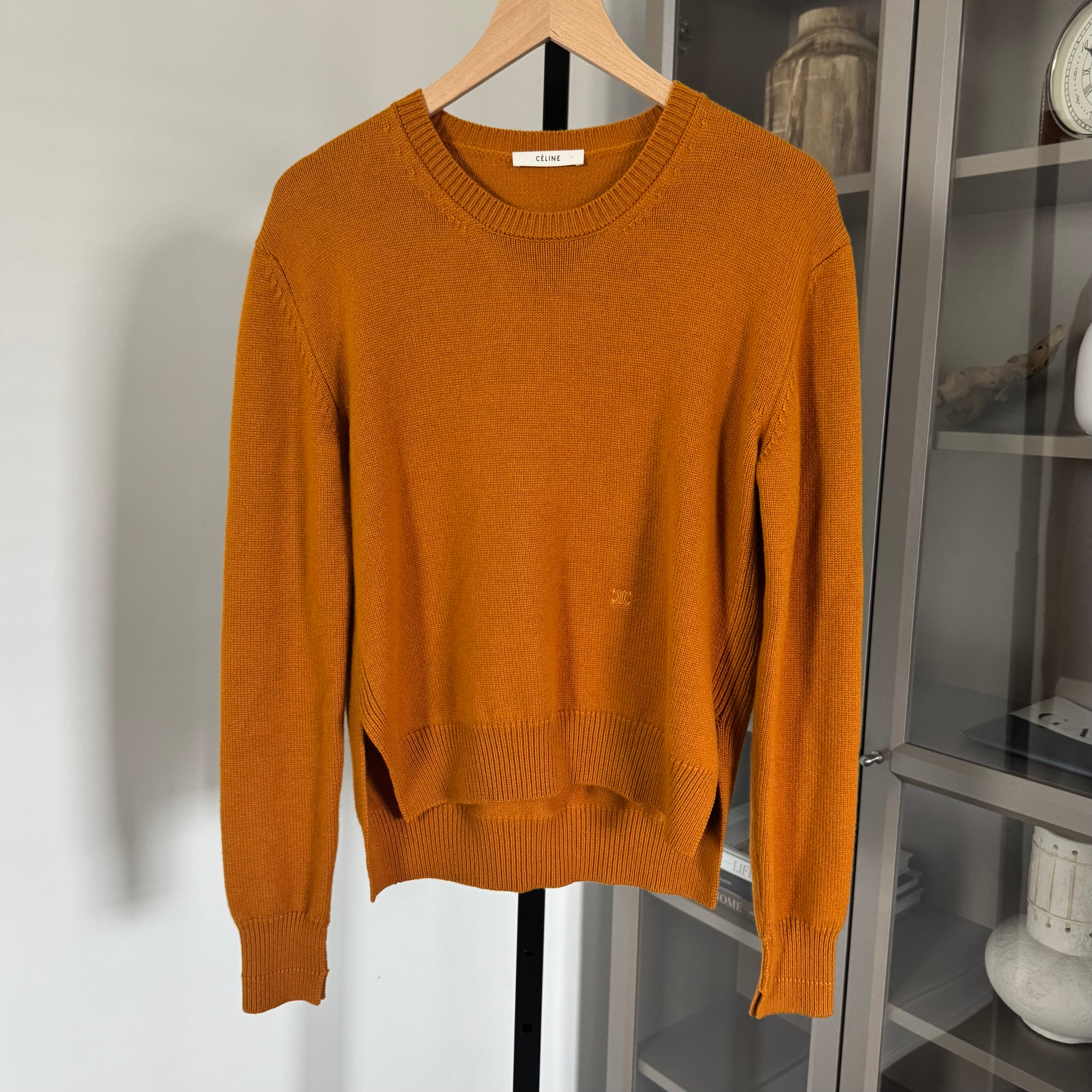 Celine Cashmere Burnt Orange Crewneck Side Slit Pullover Sweater