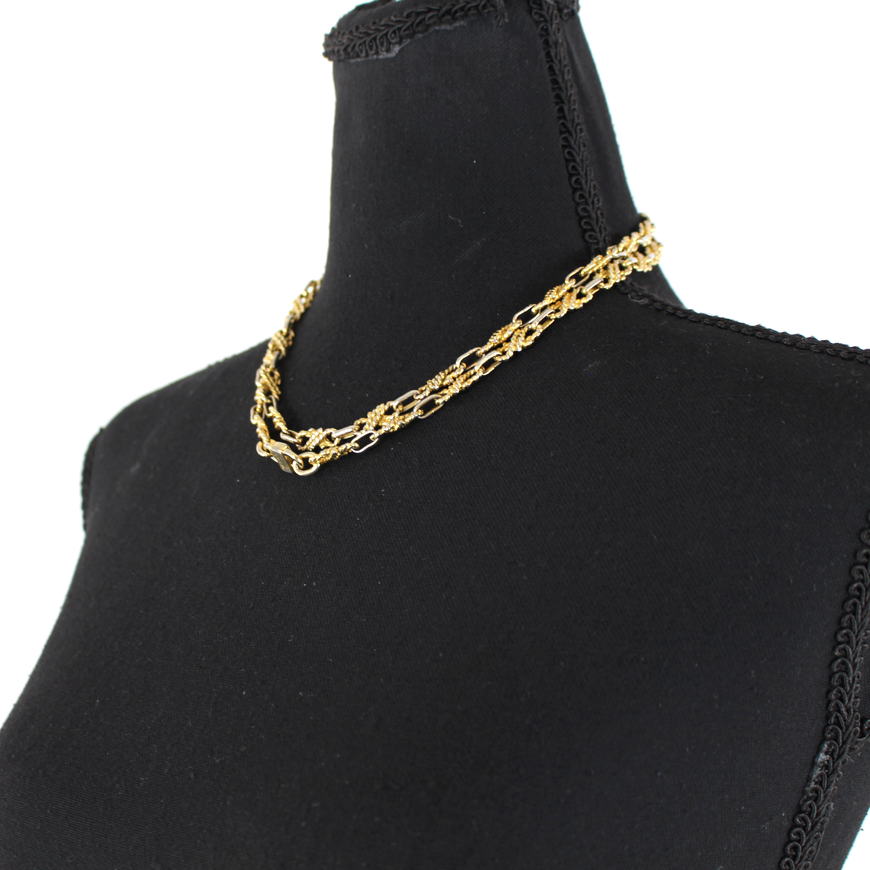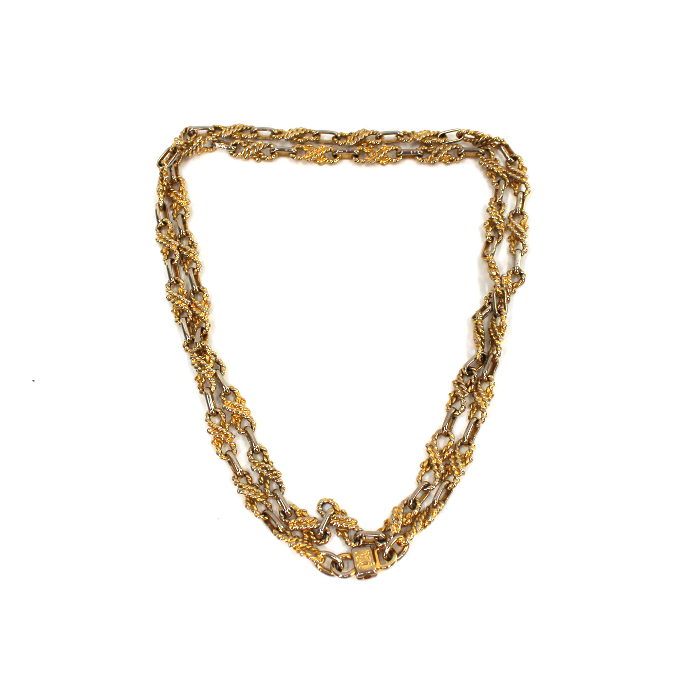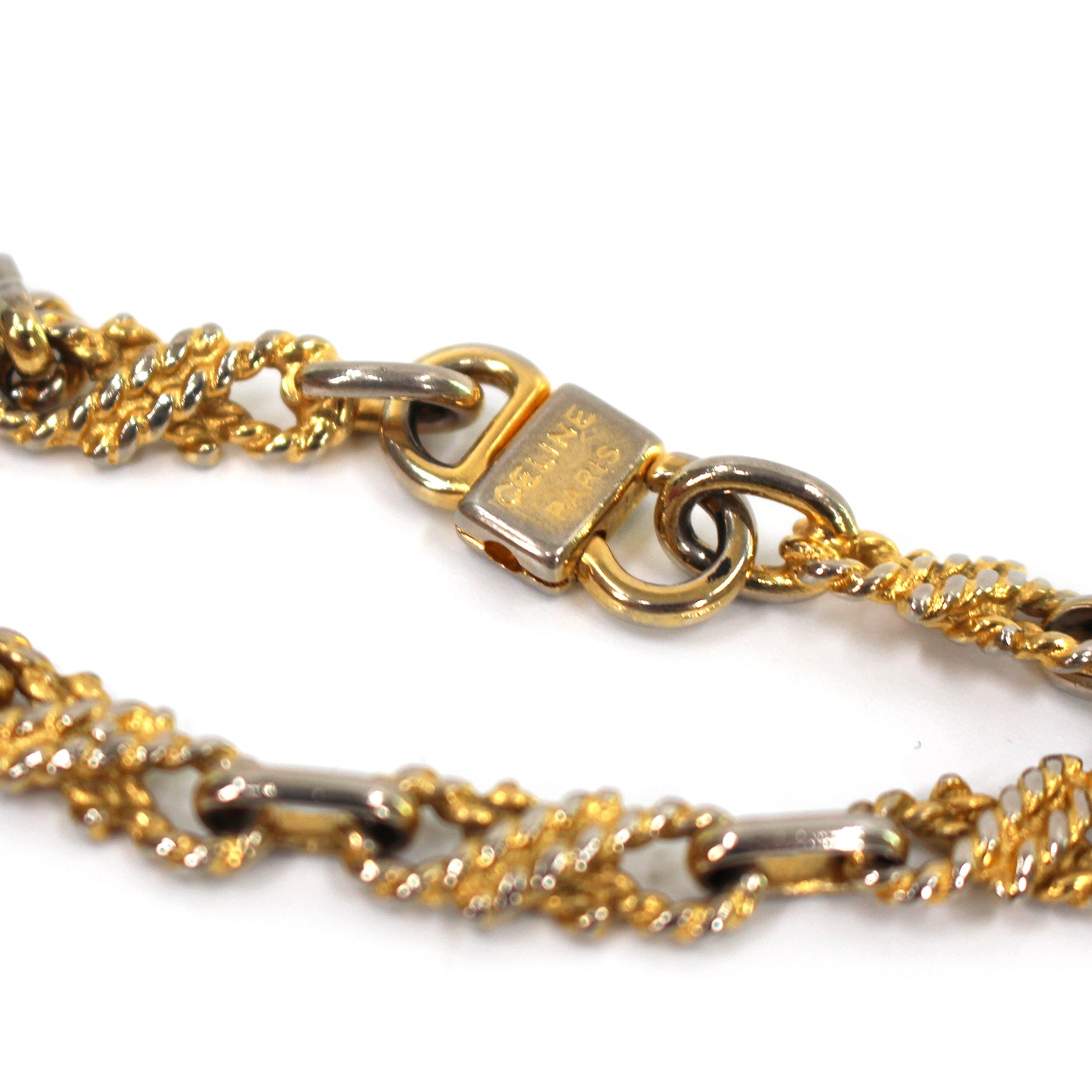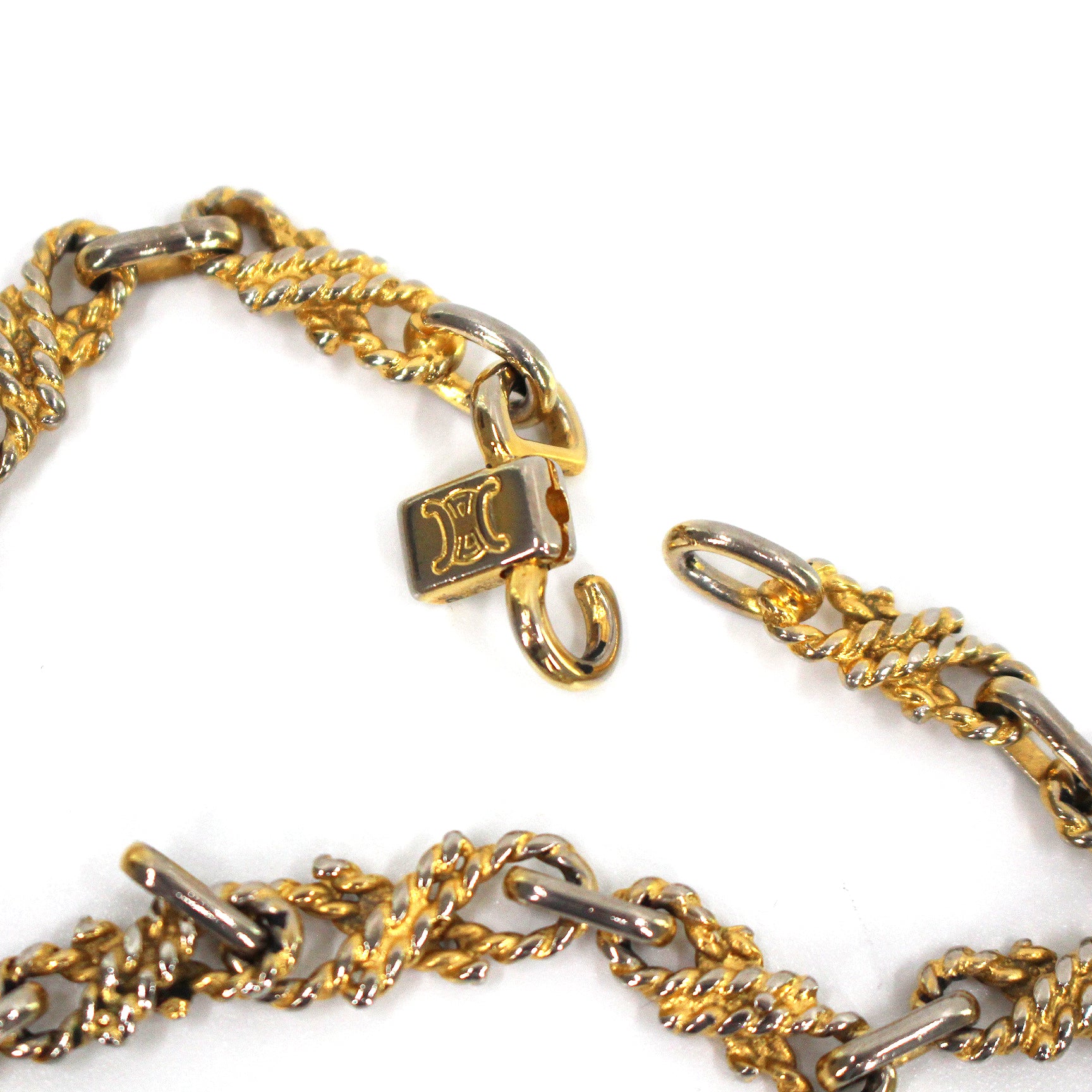 Celine Paris Vintage Gold Chainlink Long Triomphe Logo Necklace