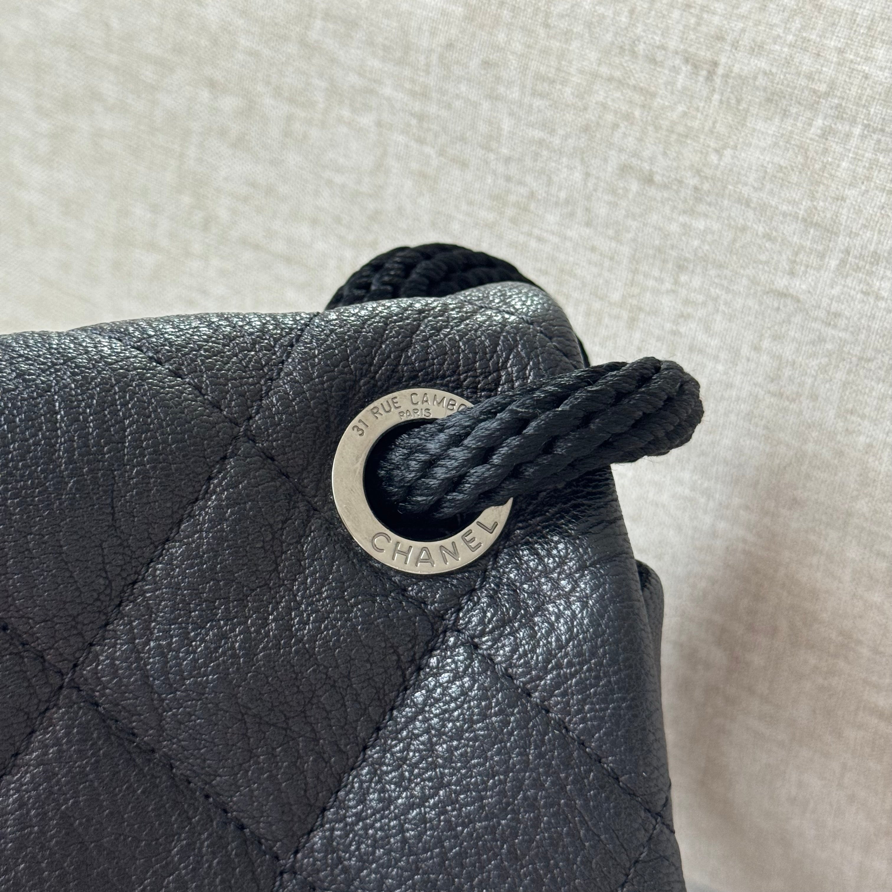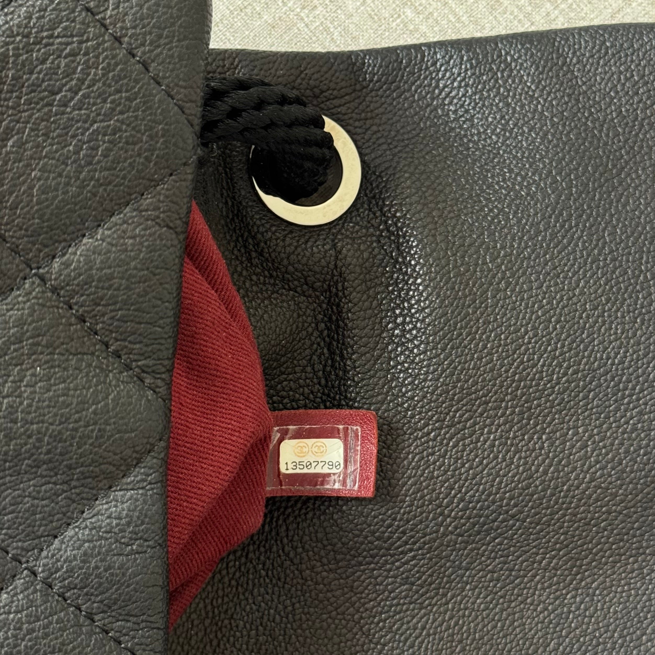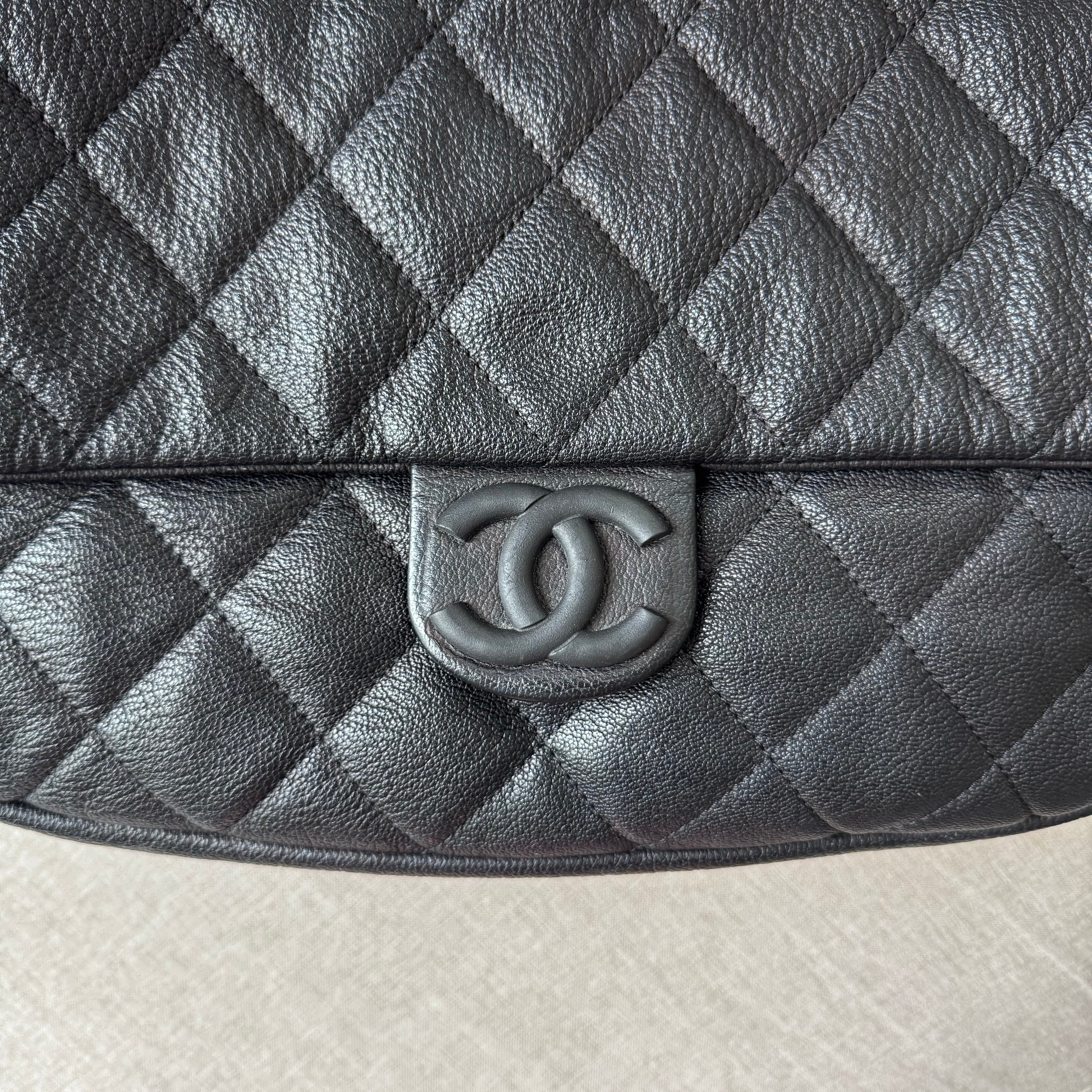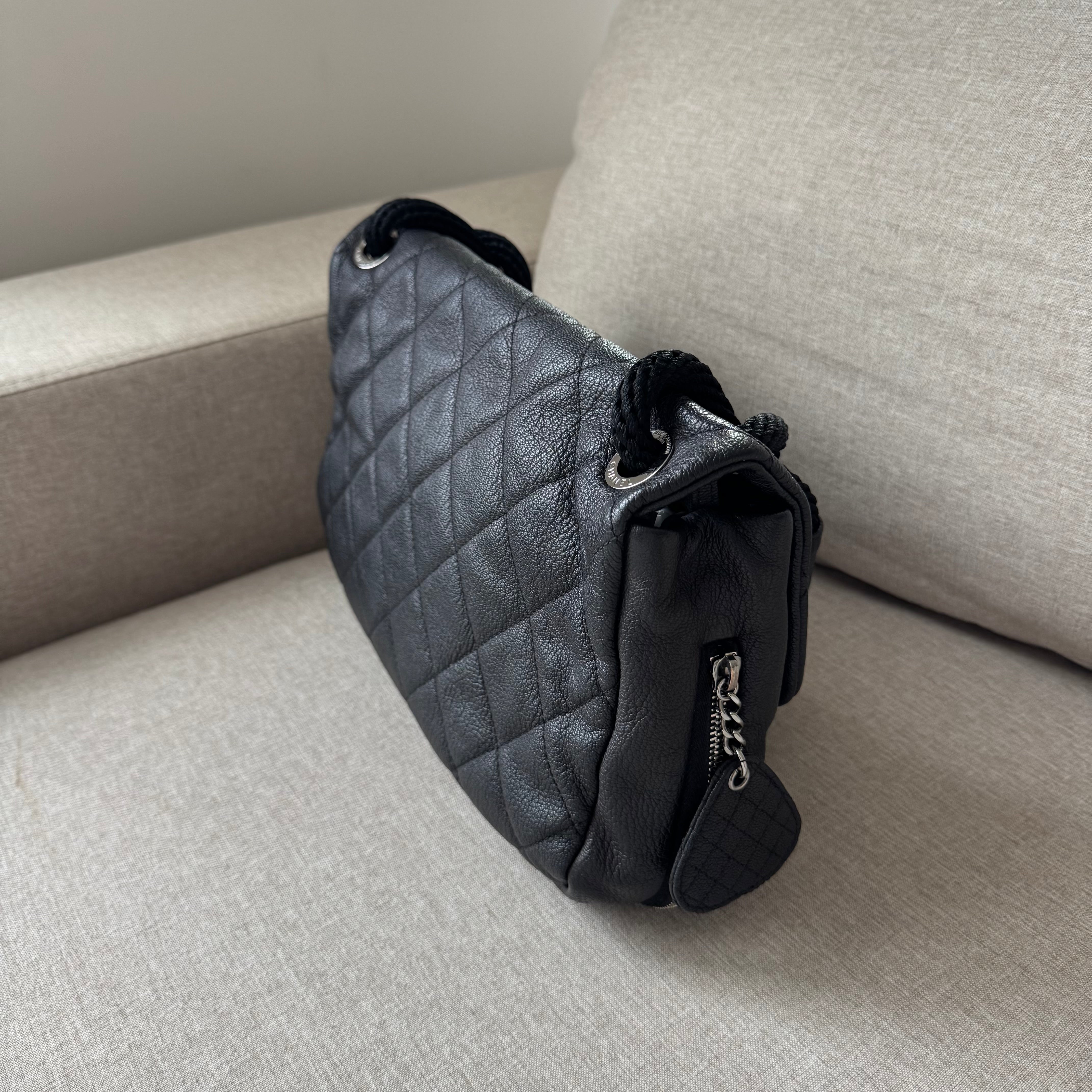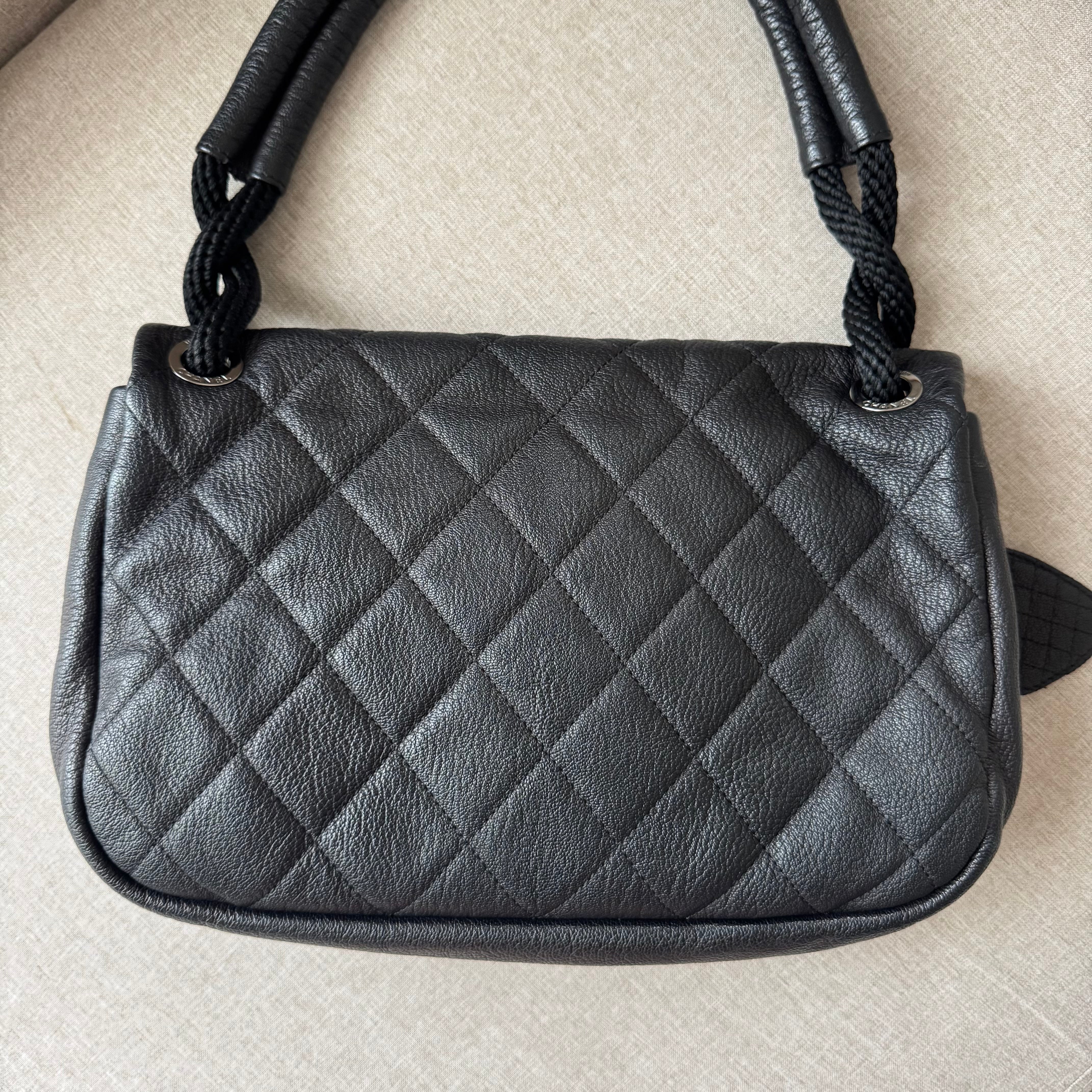 Chanel Black Diamond Quilted Expandable Zipper Bottom Rope Leather Handbag