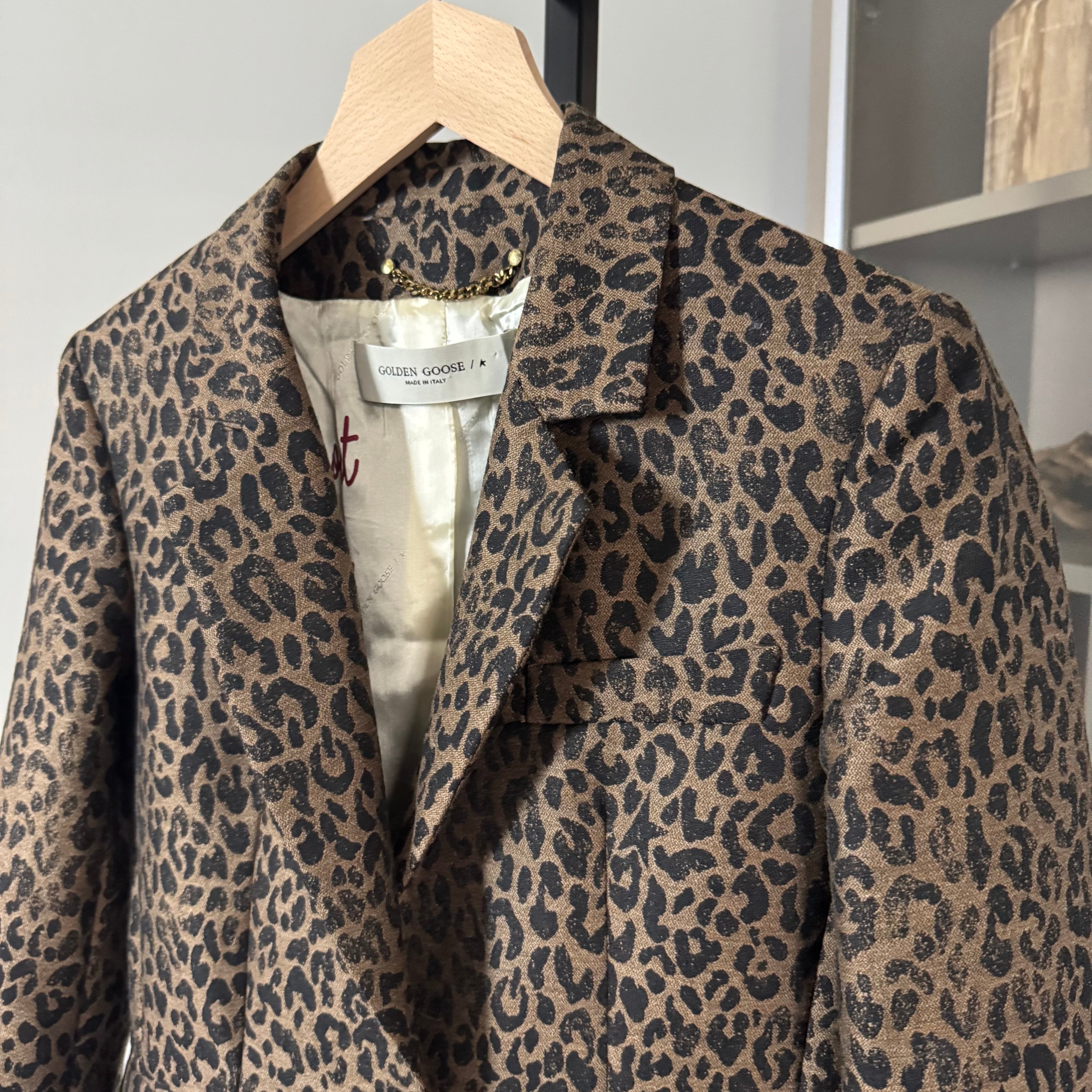 Golden Goose Leopard Jacquard Virgin Wool Brown Black Blazer
