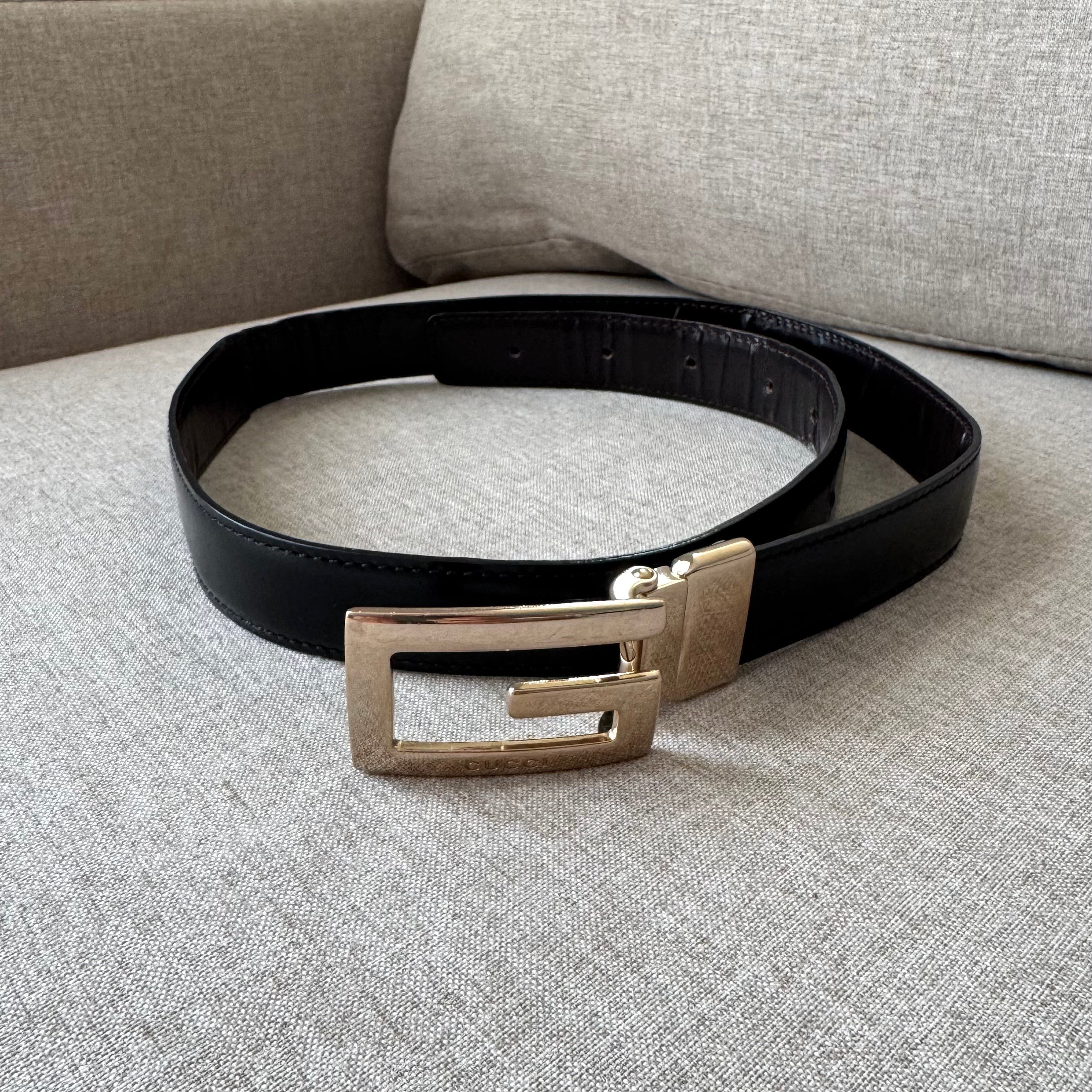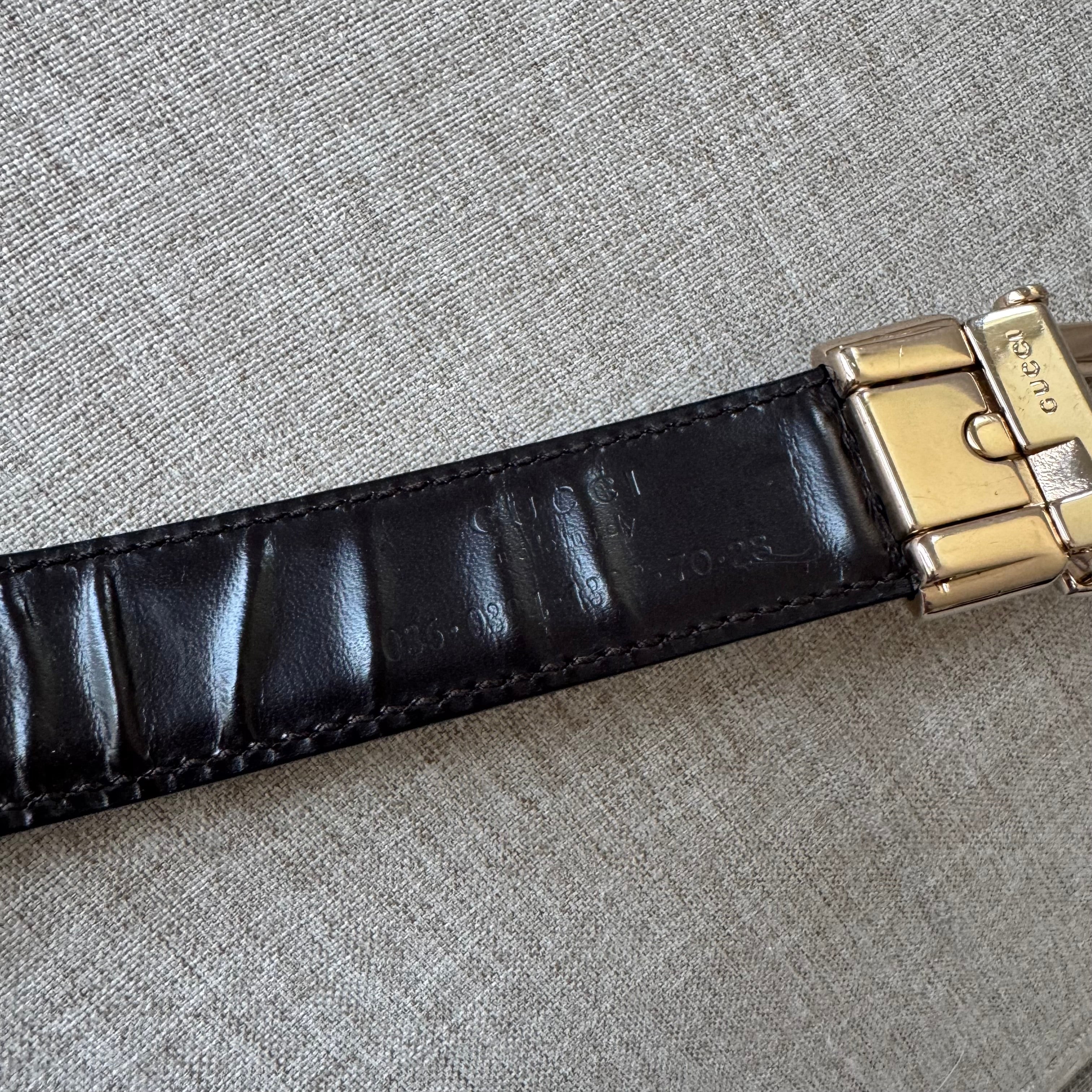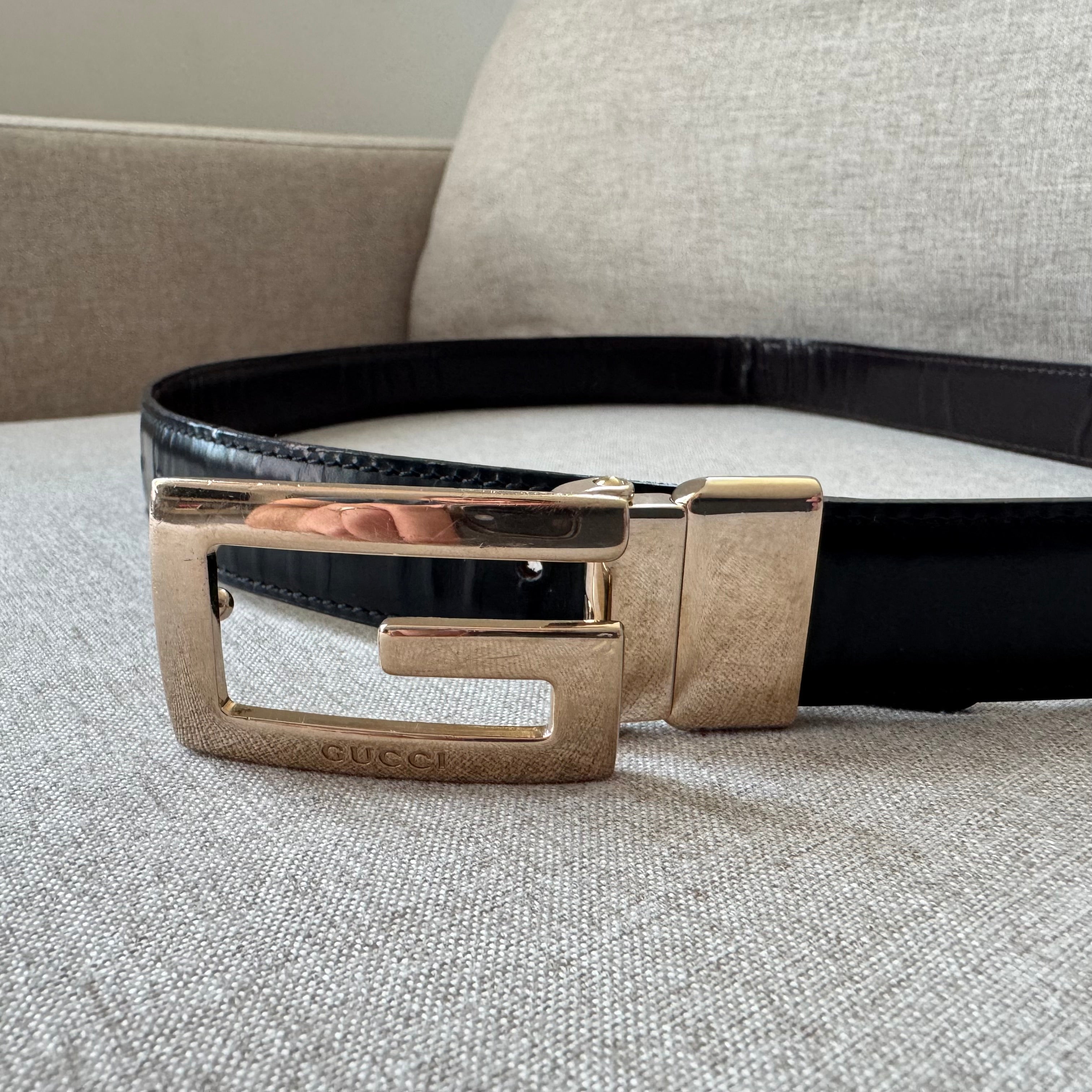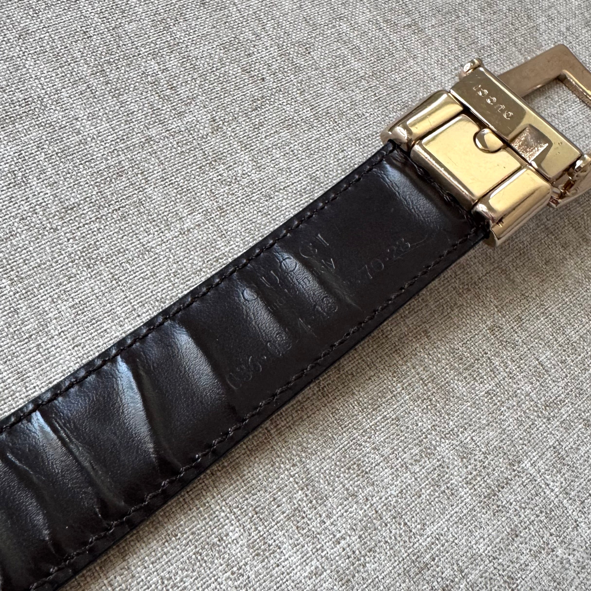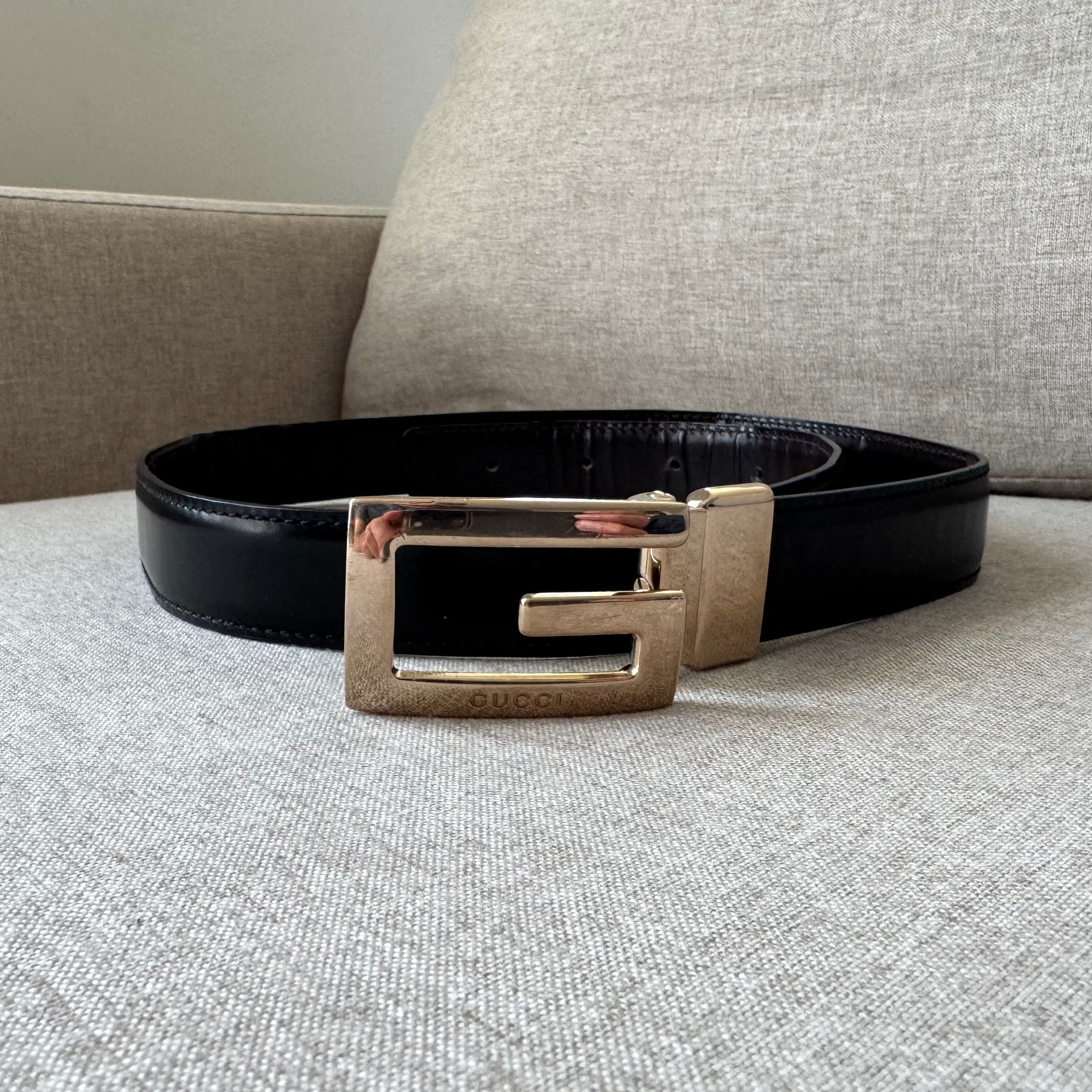 Gucci Reversible Leather Black Brown Gold Square G Buckle Belt