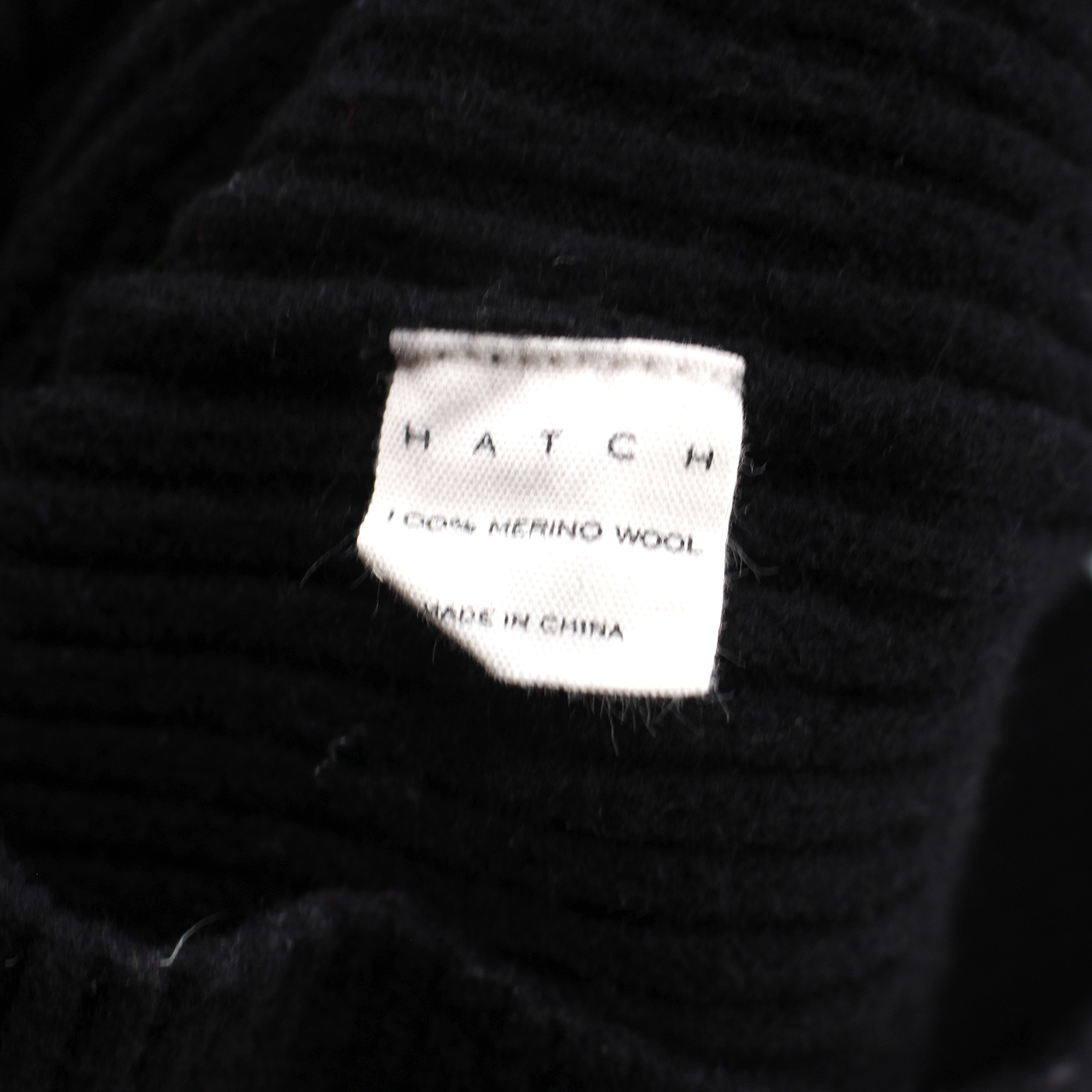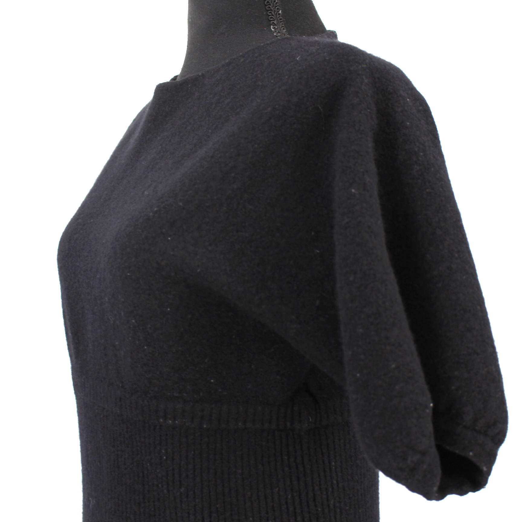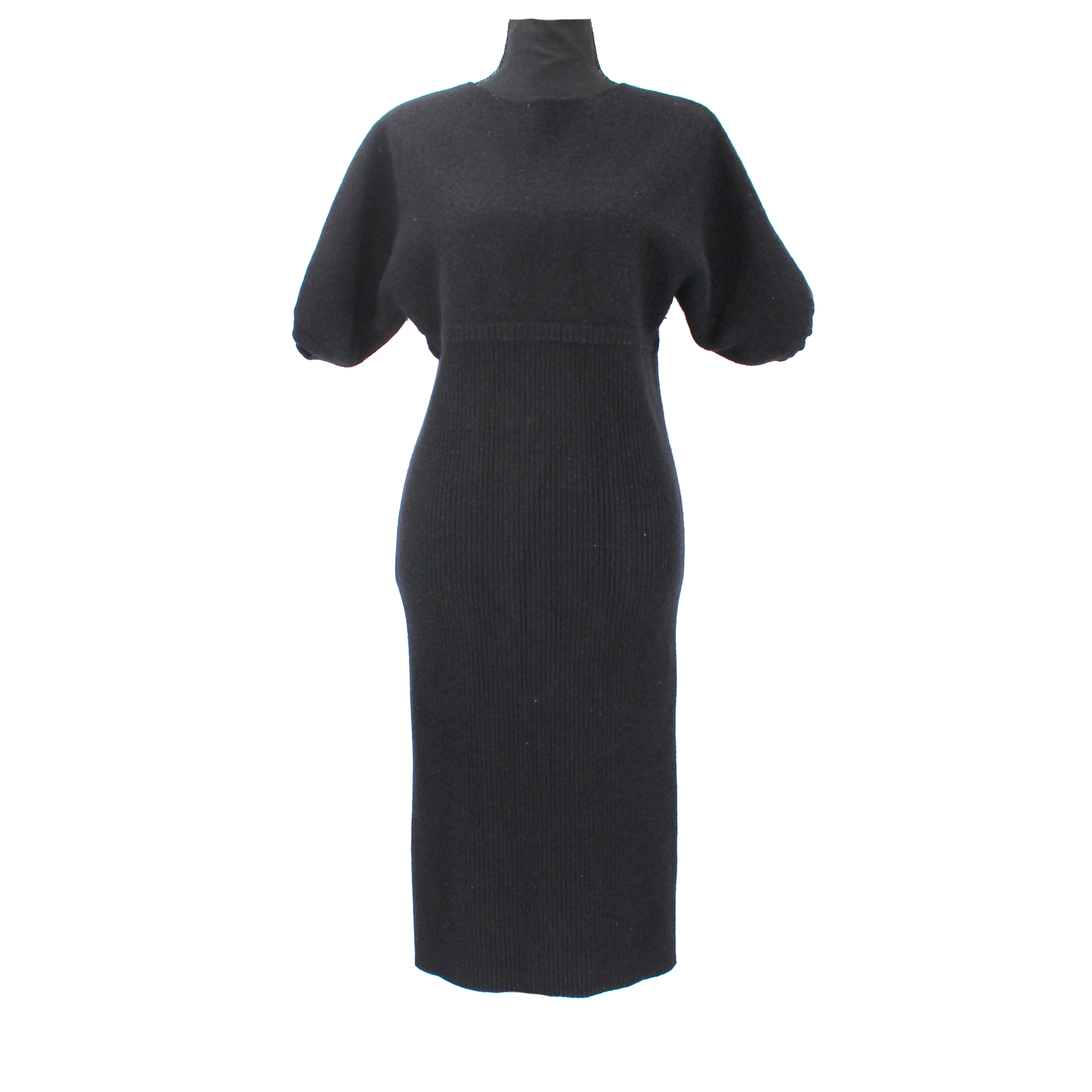 HATCH Black Boiled Wool Combination Ribbed knit Puff Sleeve Midi Dress