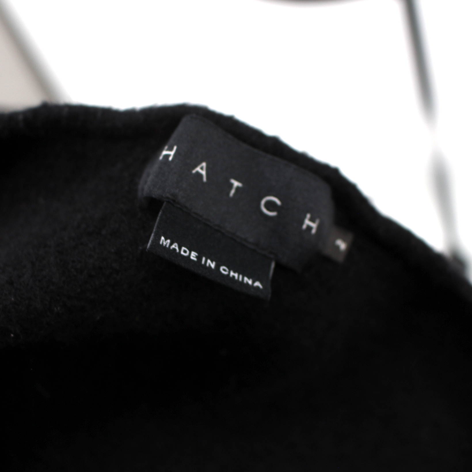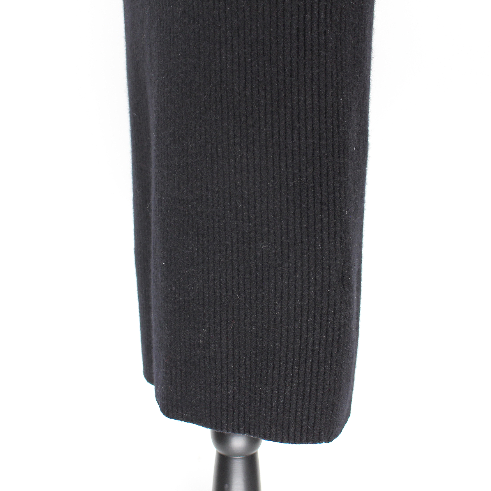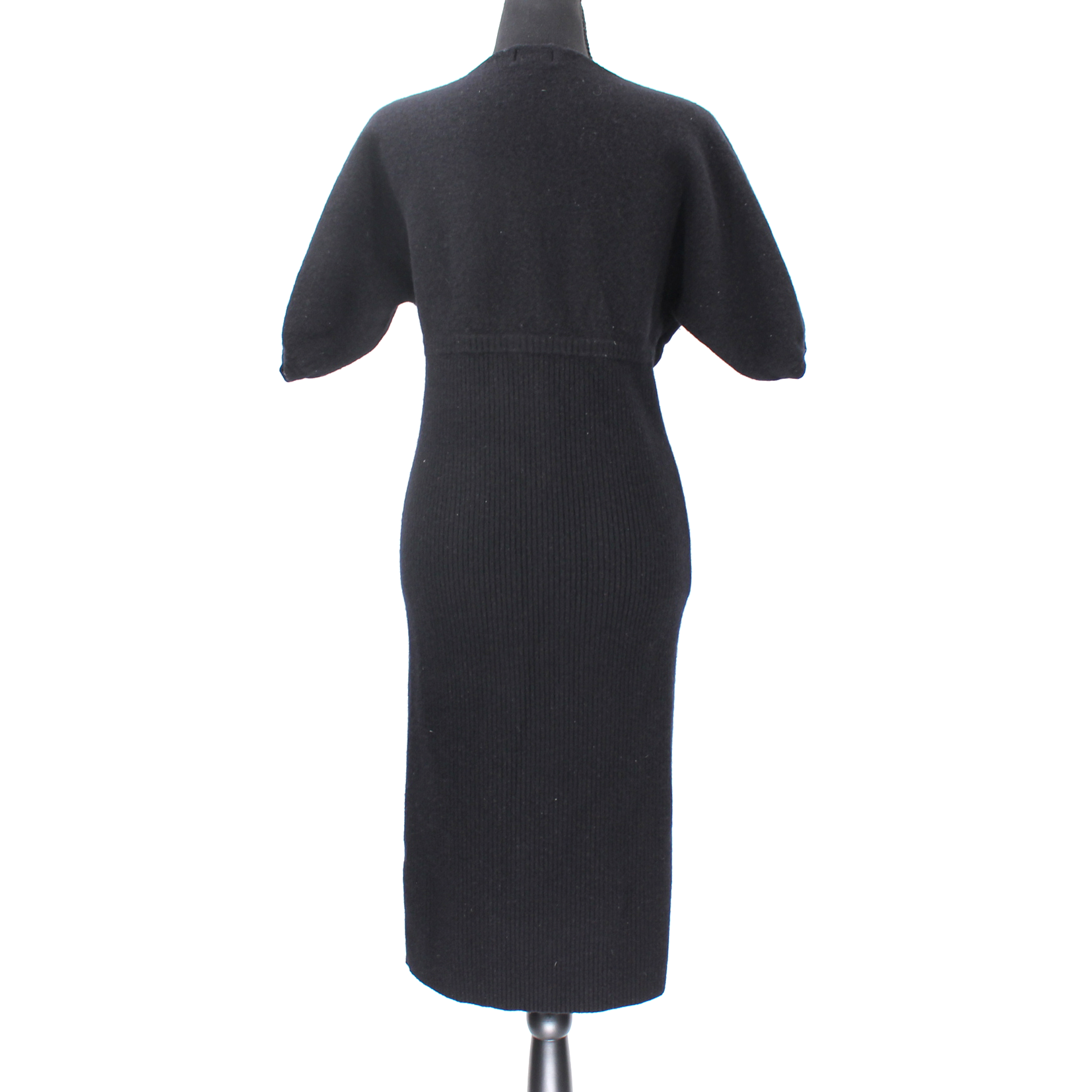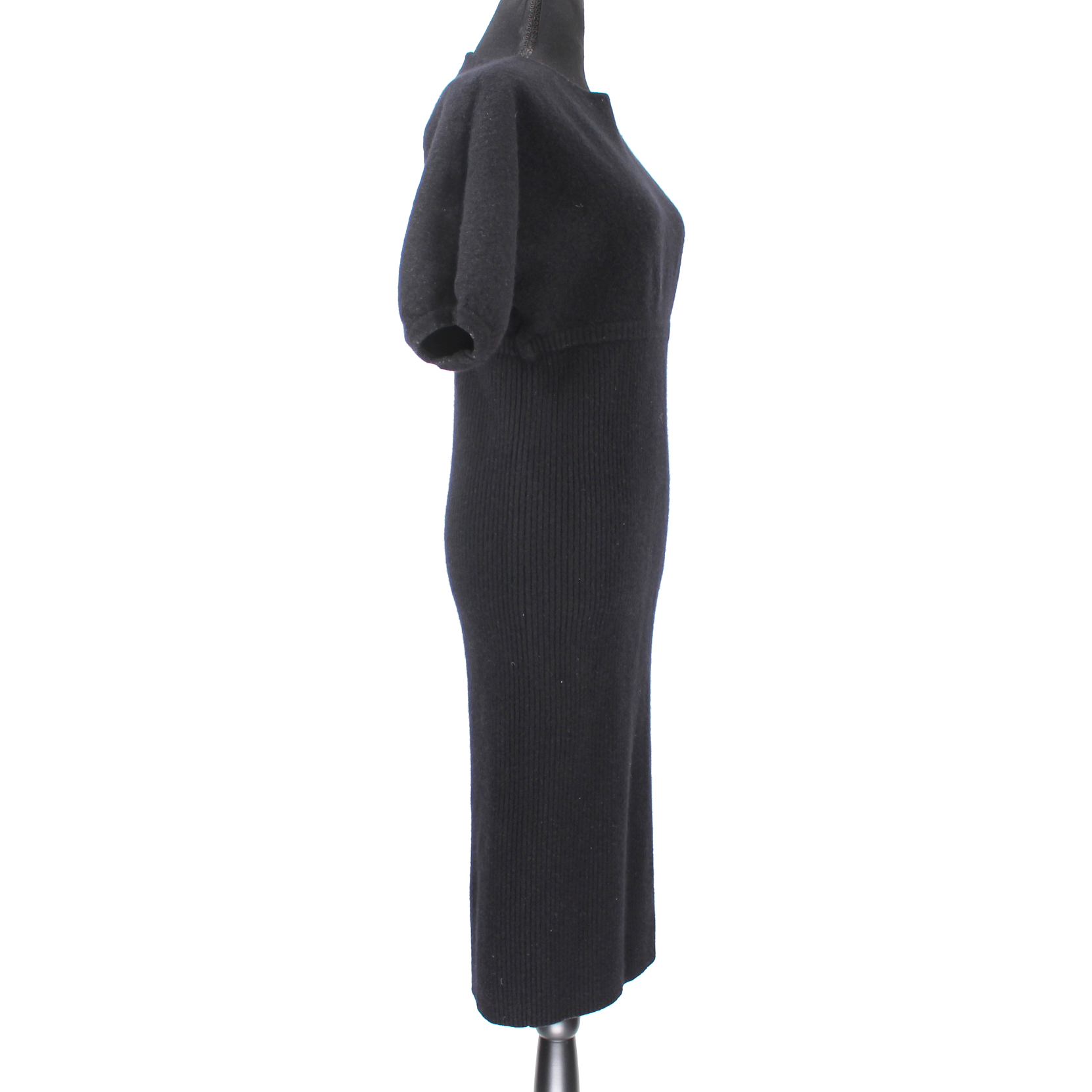 HATCH Black Boiled Wool Combination Ribbed knit Puff Sleeve Midi Dress