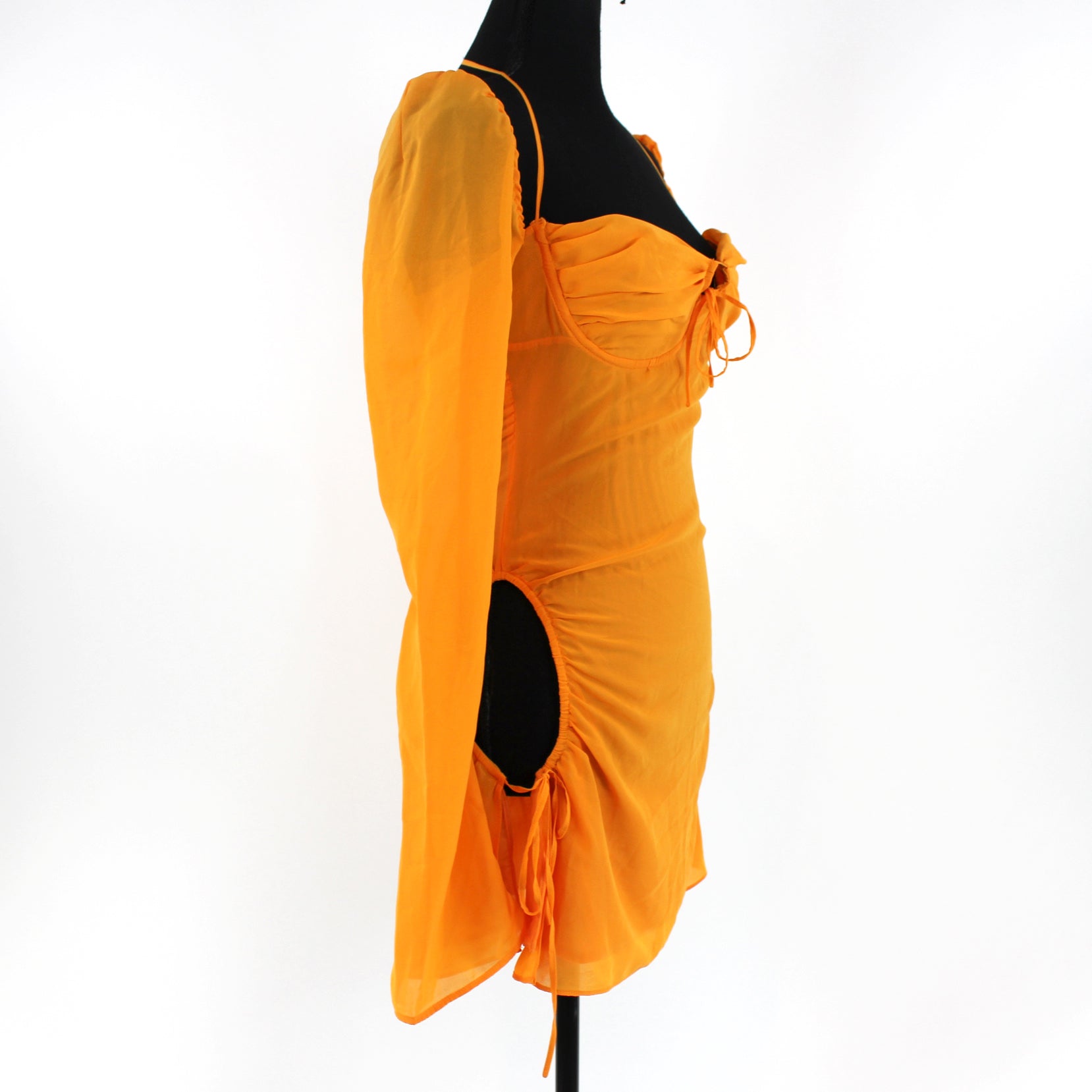 House Of CB Tangerine Baby Halter Cut-Out Long Sleeve Mini Dress