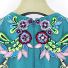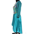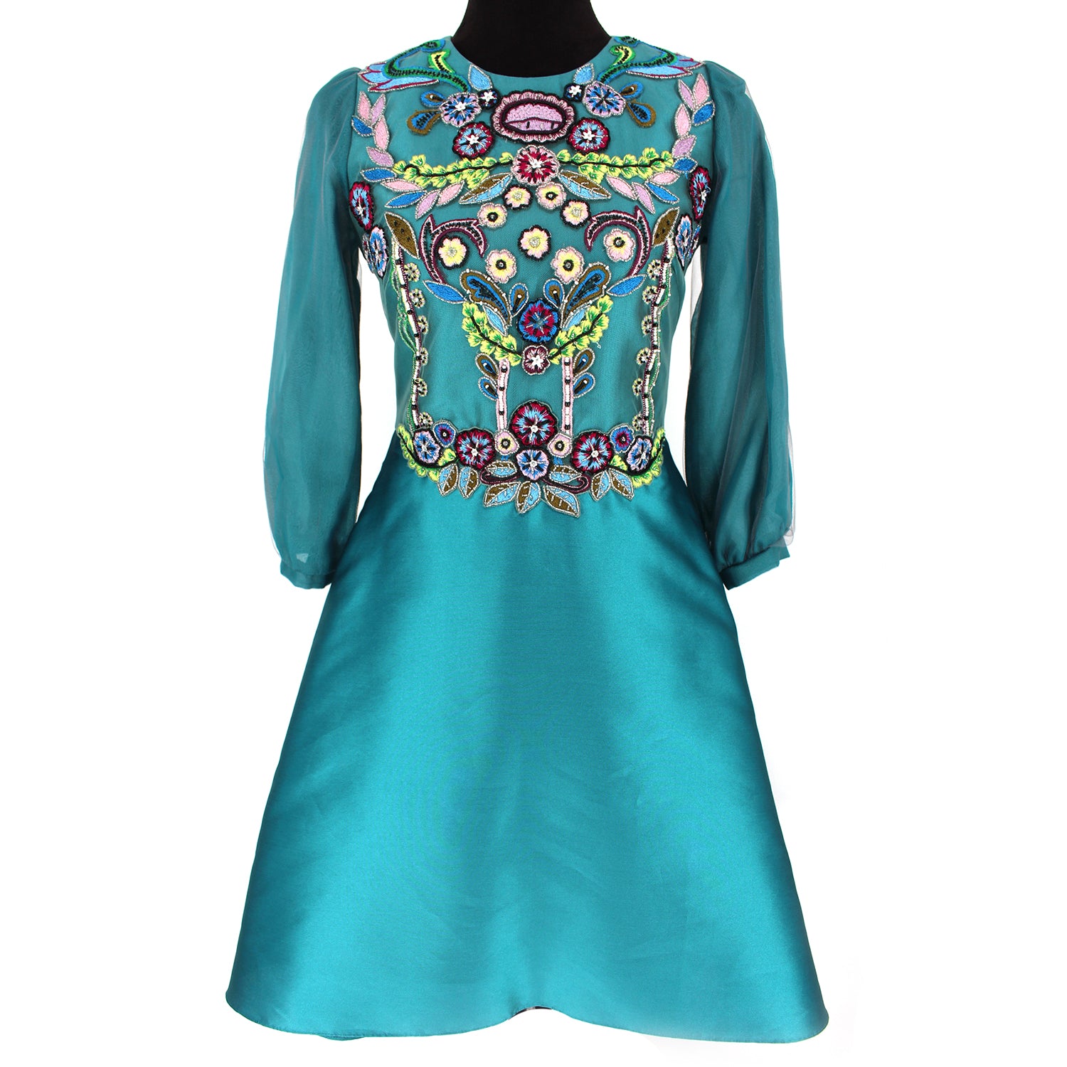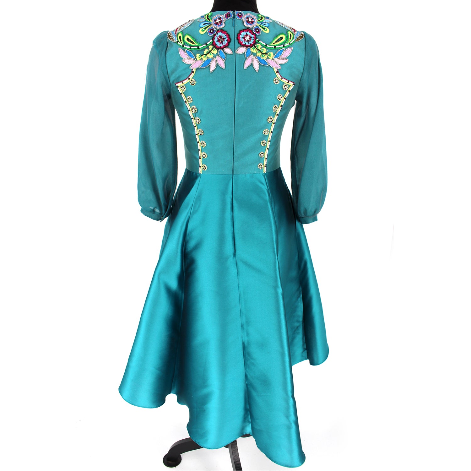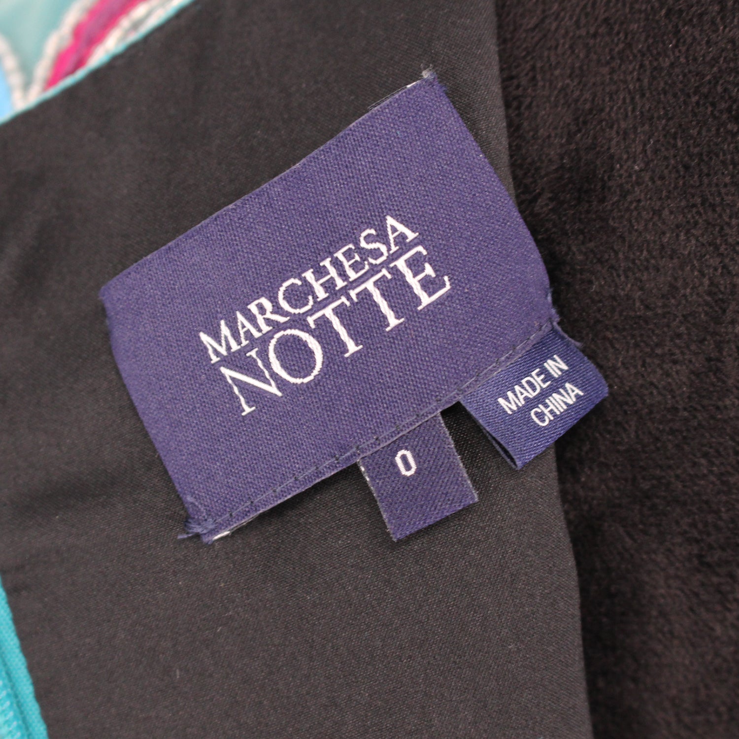 Marchesa Notte Teal Floral Embellished Satin 3/4 Sleeve Dress.