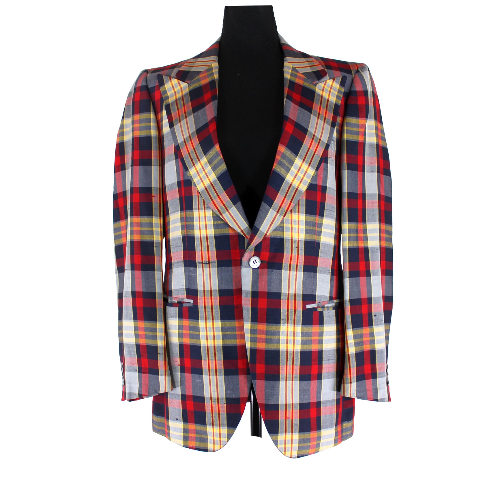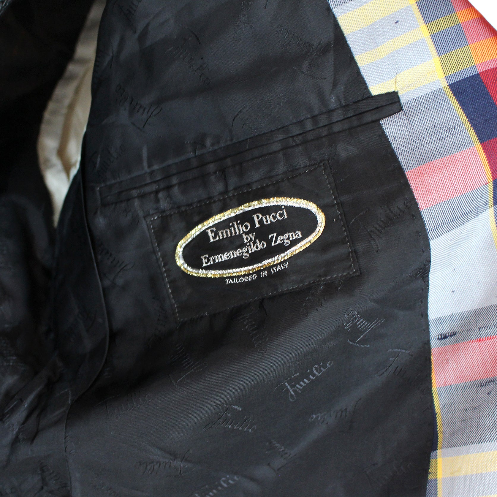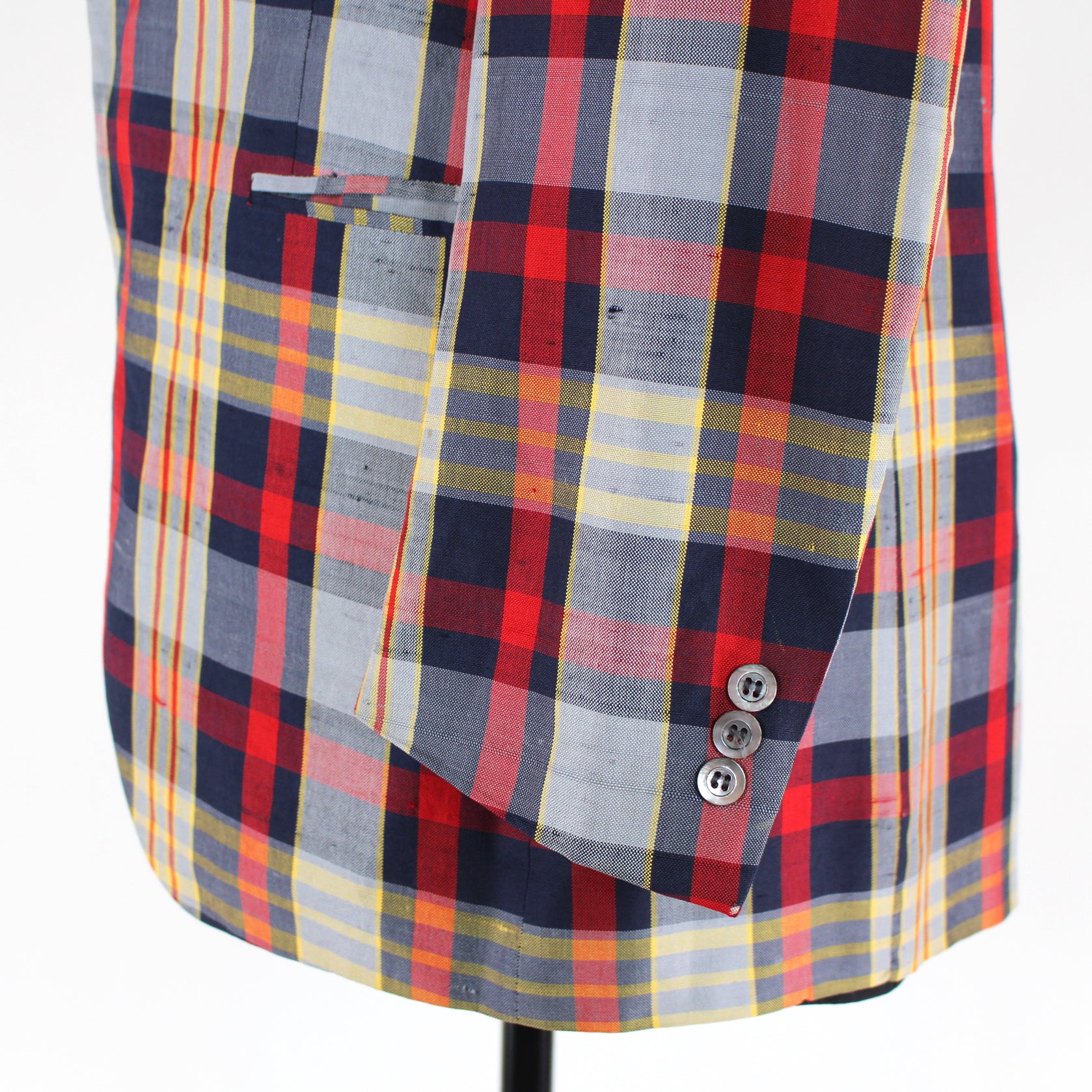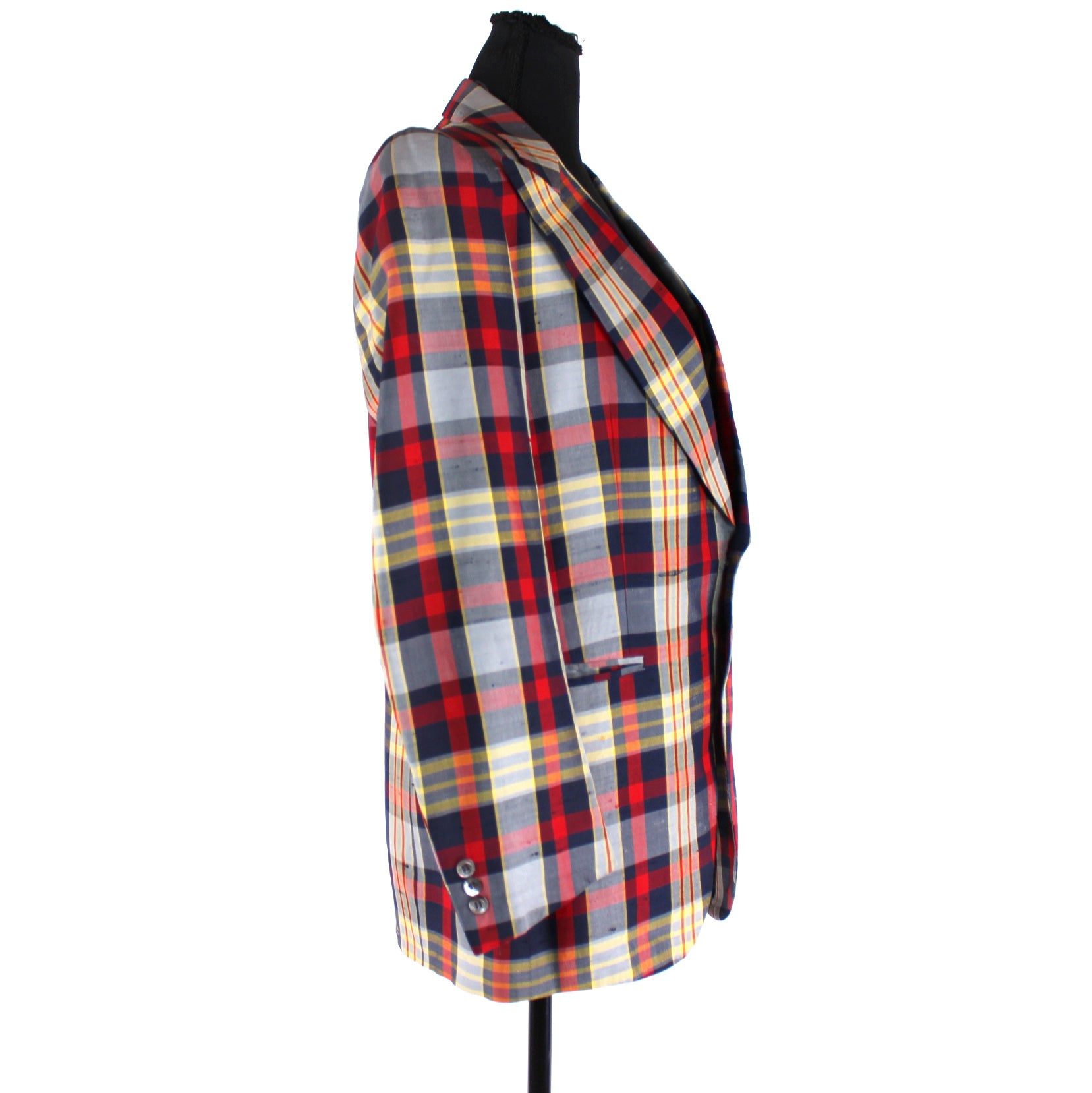 Emilio Pucci by Ermenegildo Zegna Red Navy Plaid Tailored Blazer Jacket