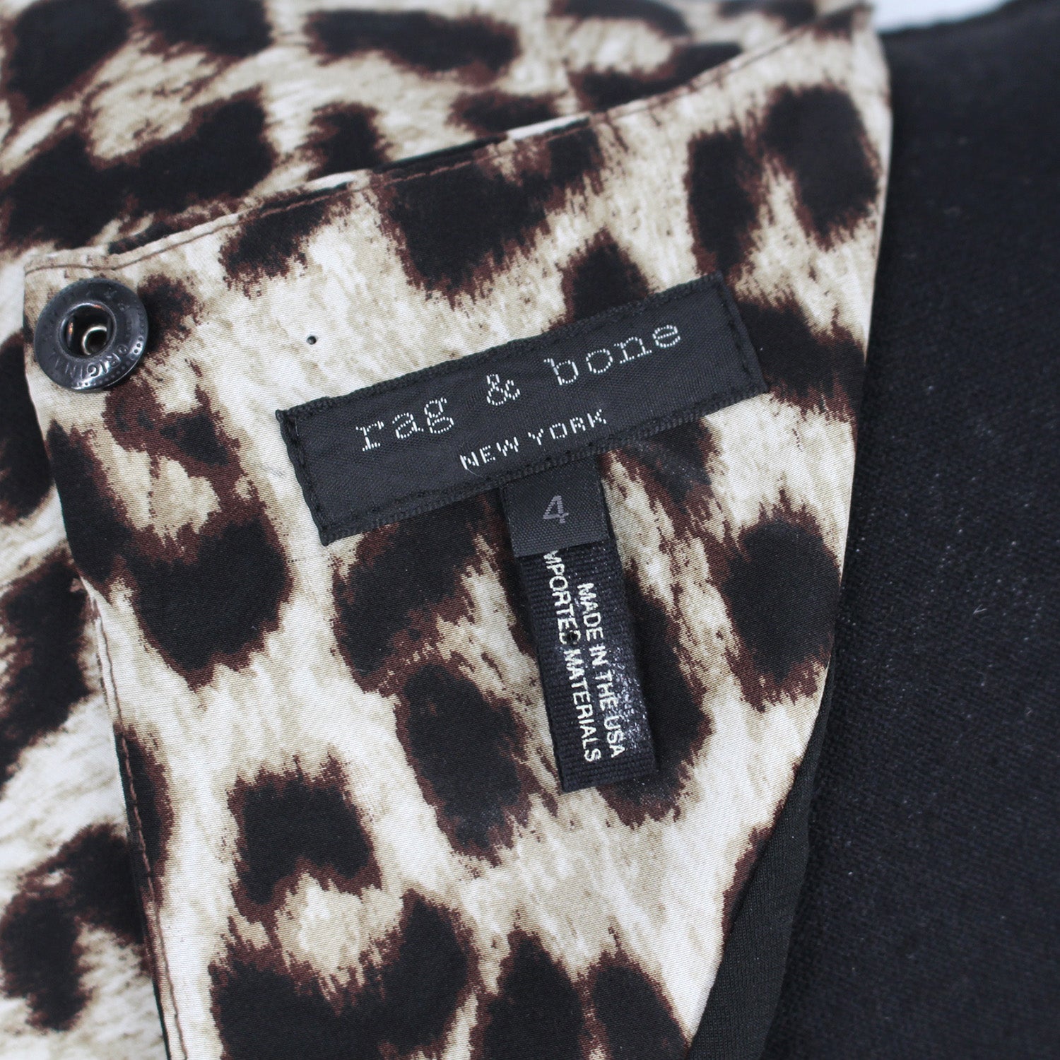 Rag & Bone Silk Leopard Cheetah Print 3/4 Sleeves Mini Dress.