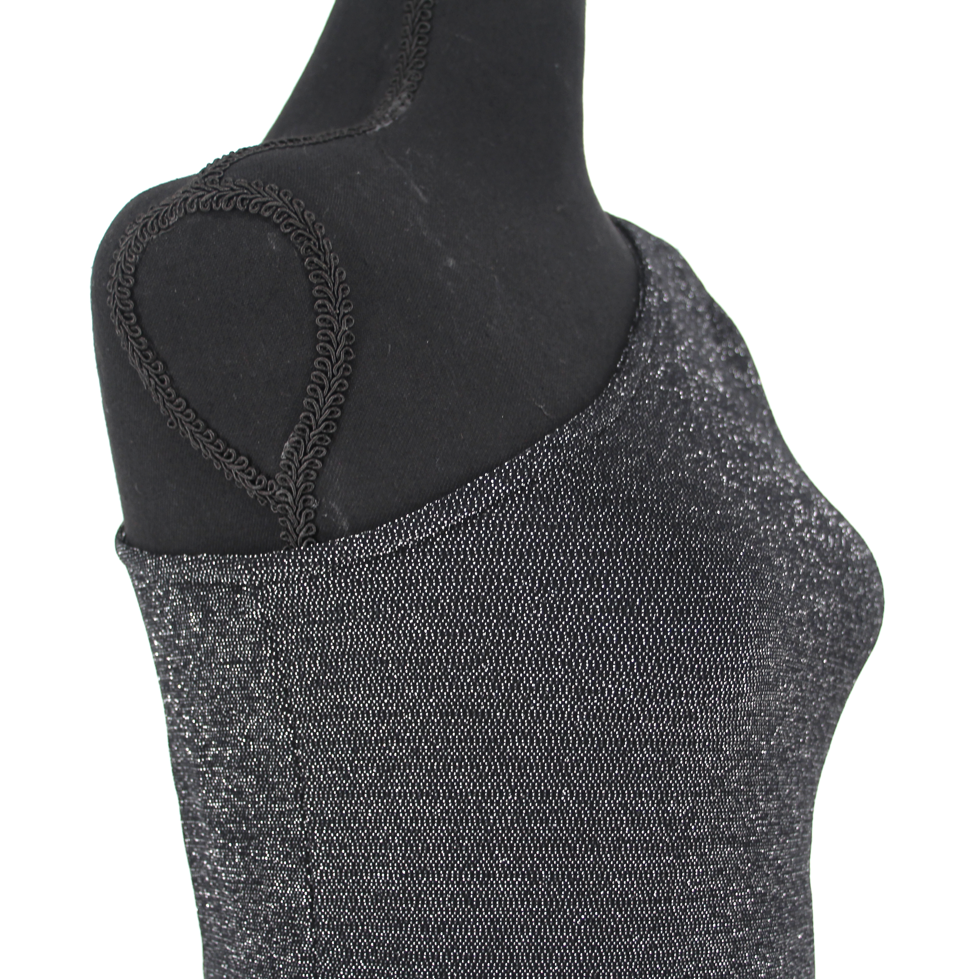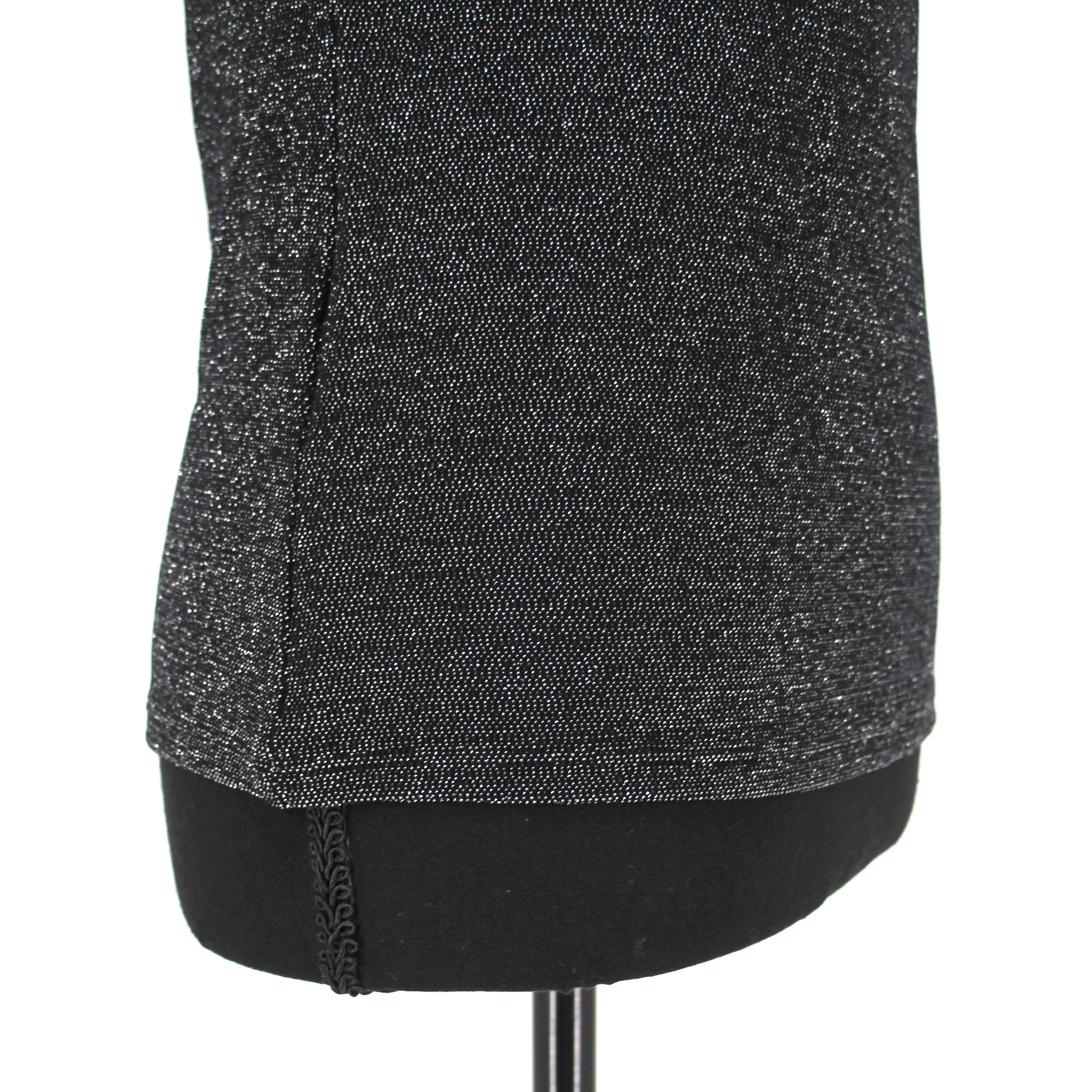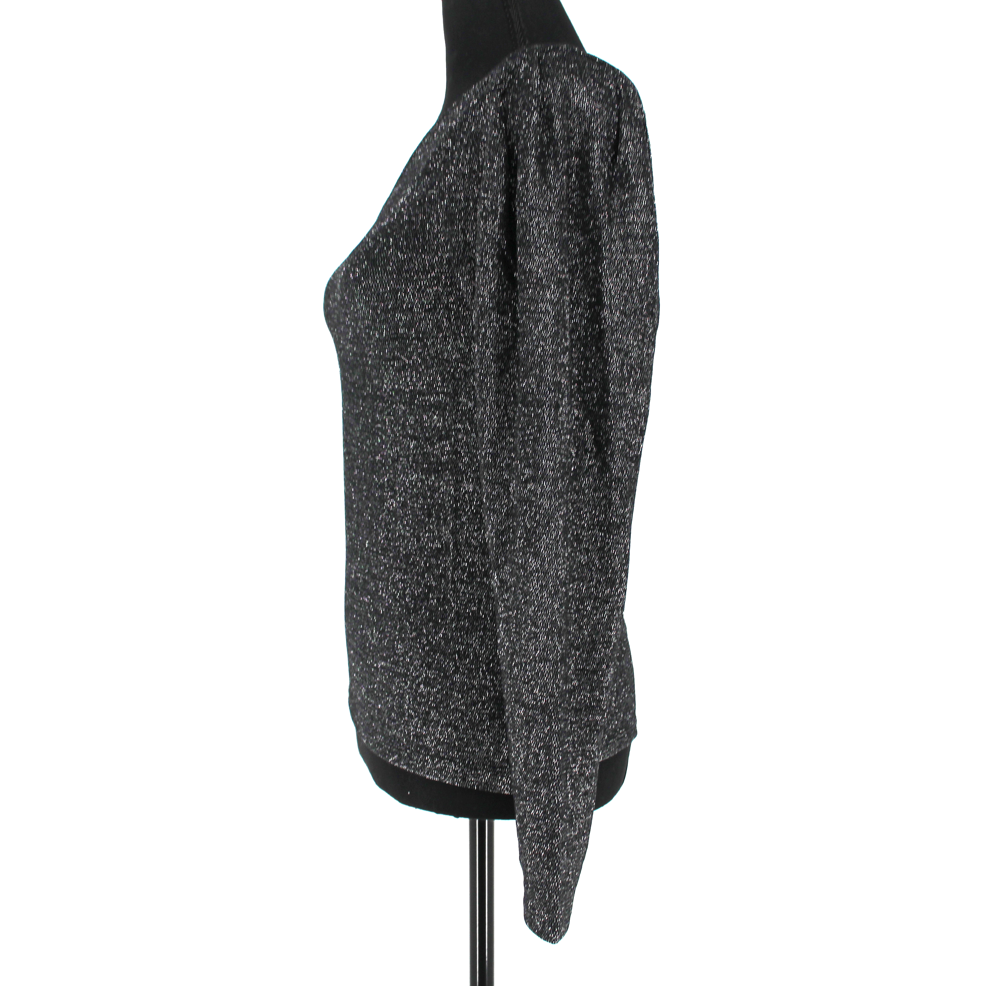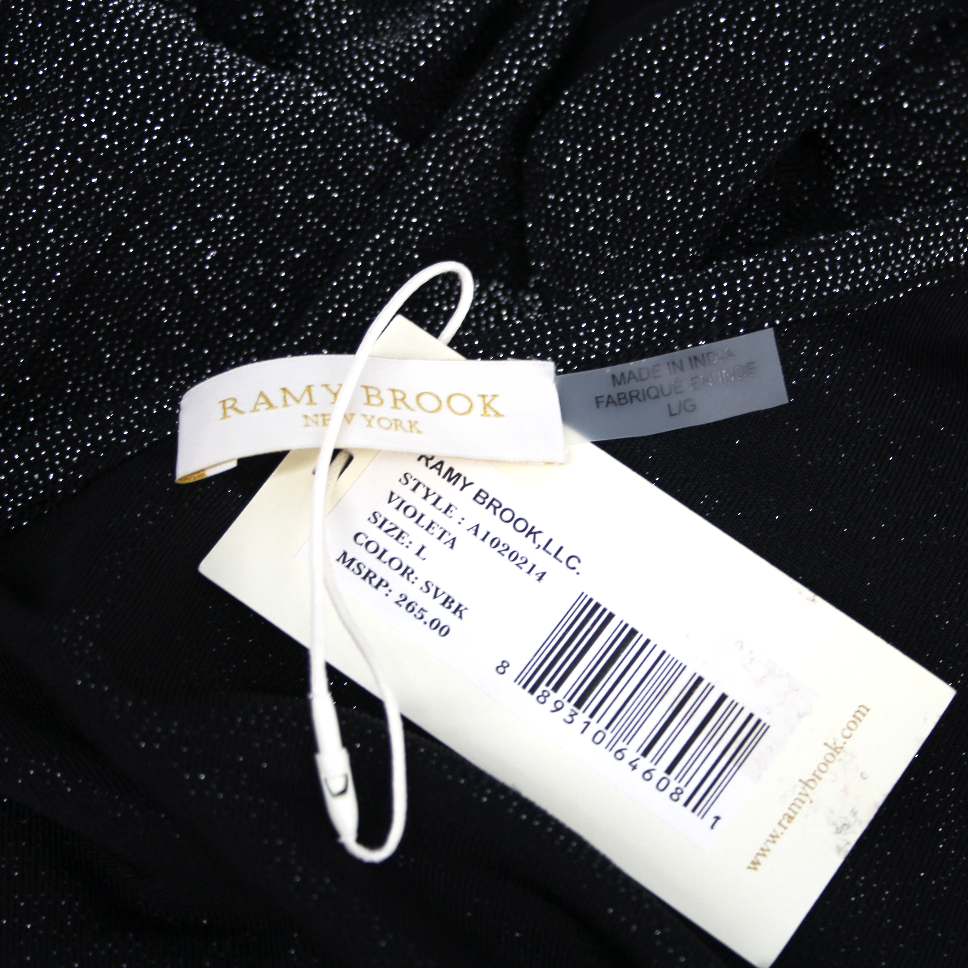 Ramy Brook Violeta Black Silver Metallic Nylon One Shoulder Long Sleeve Top.