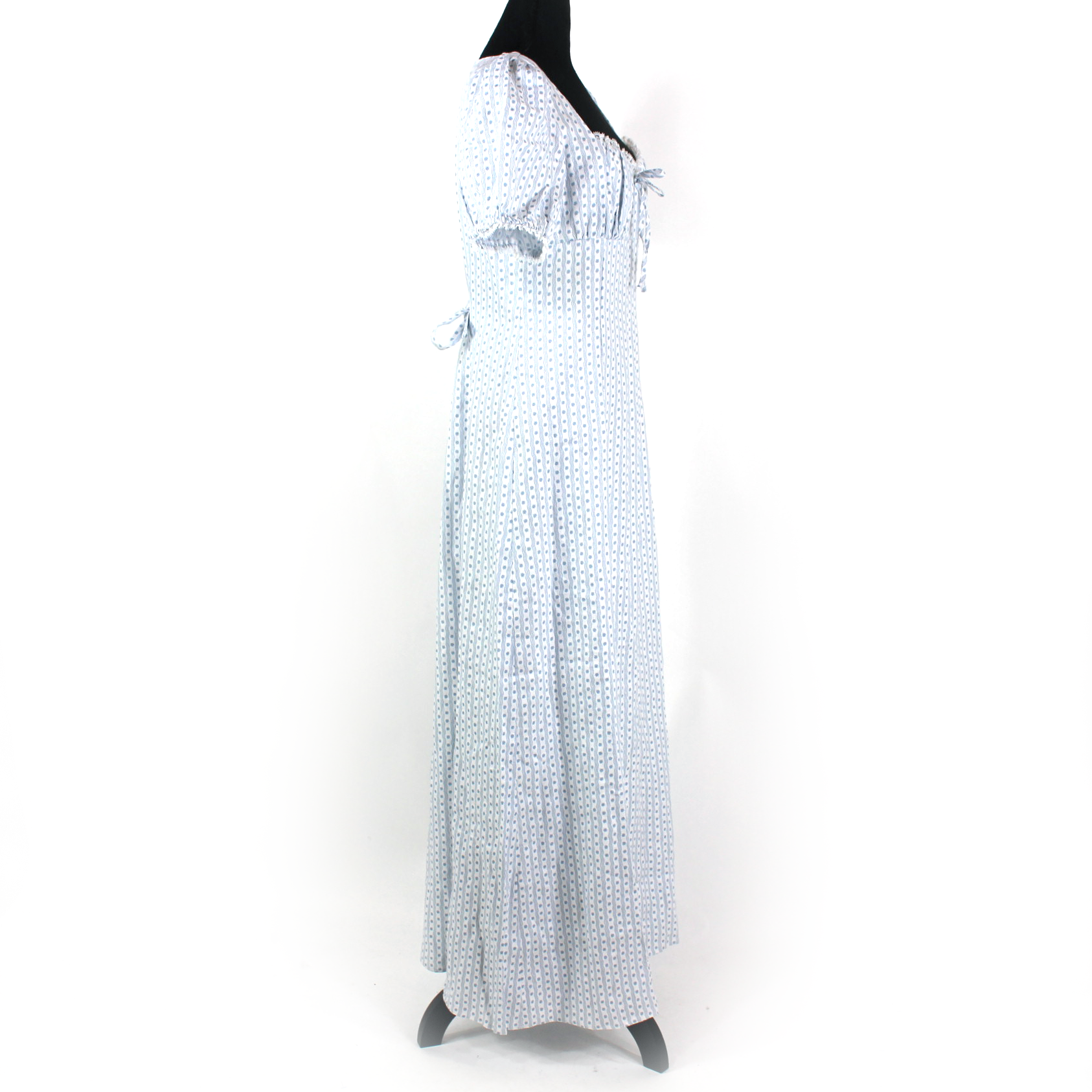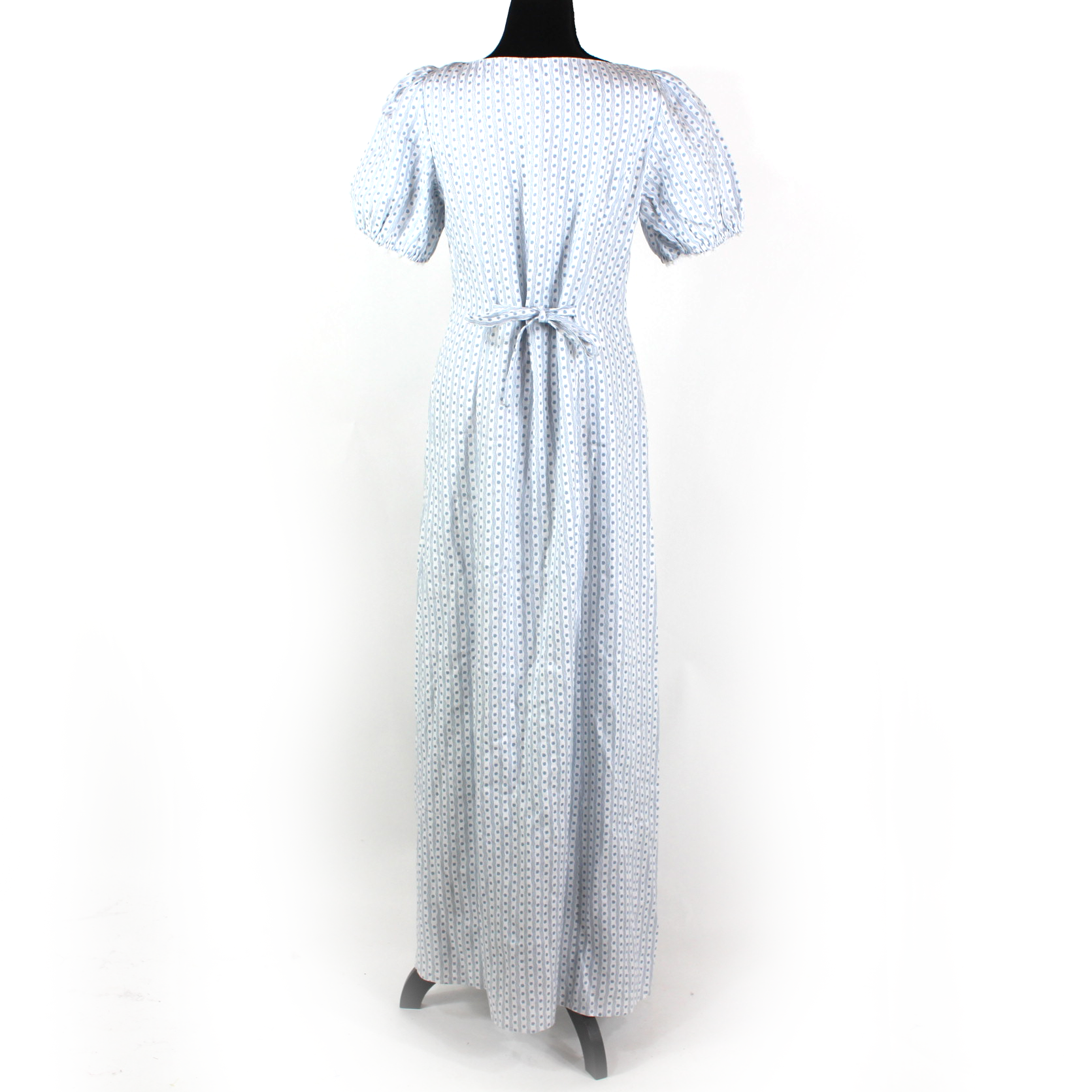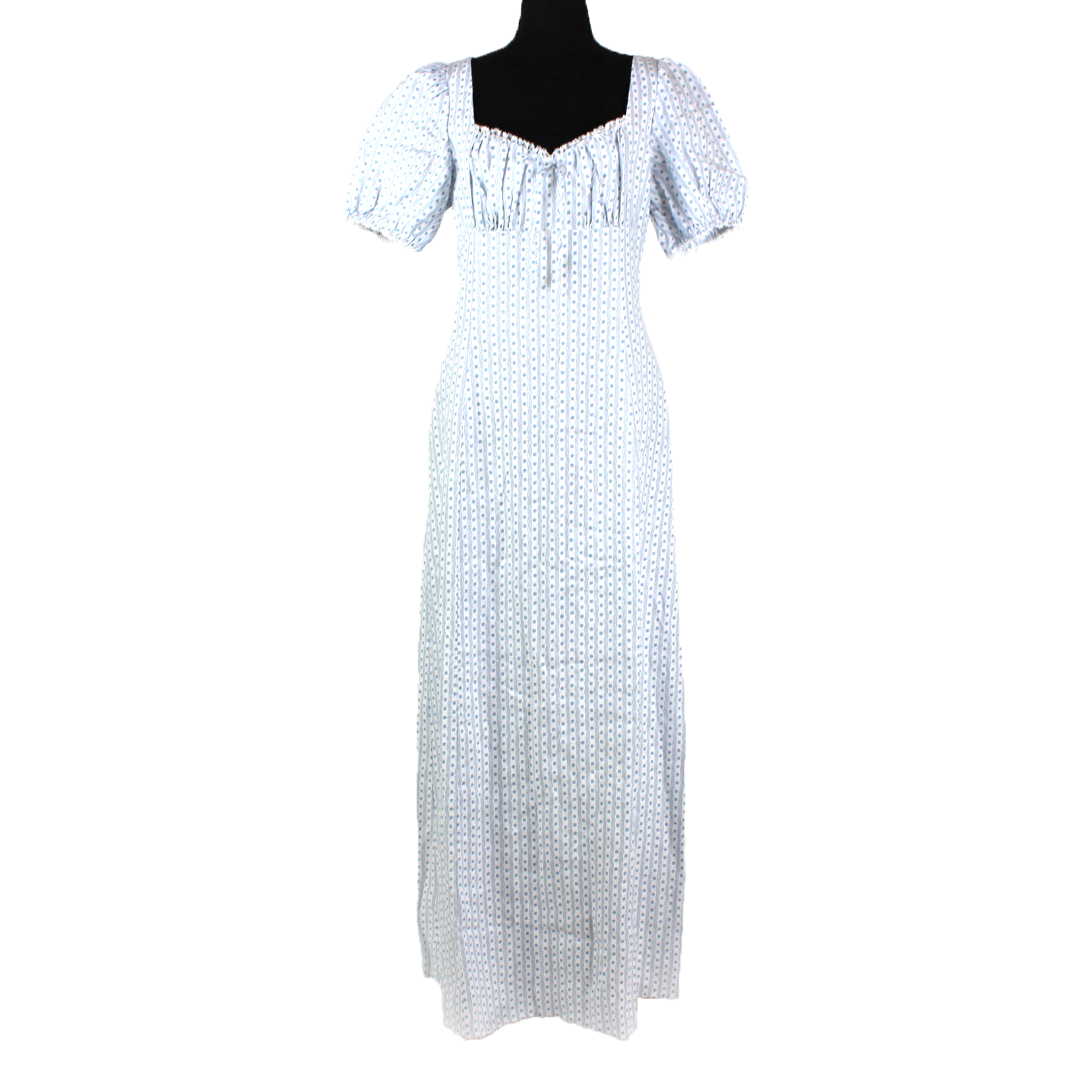 Reformation Cherise Linen Blue Motif Short Puff Sleeve Maxi Dress