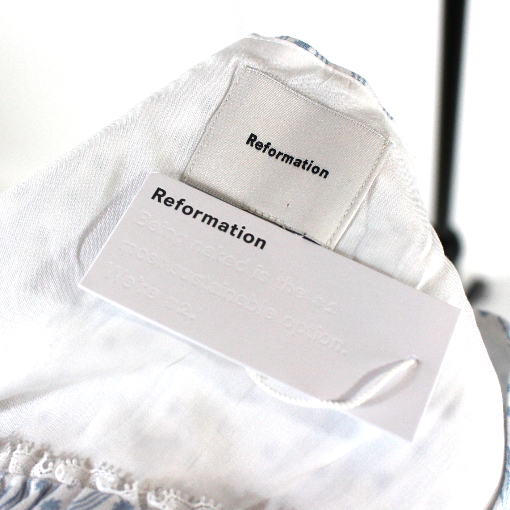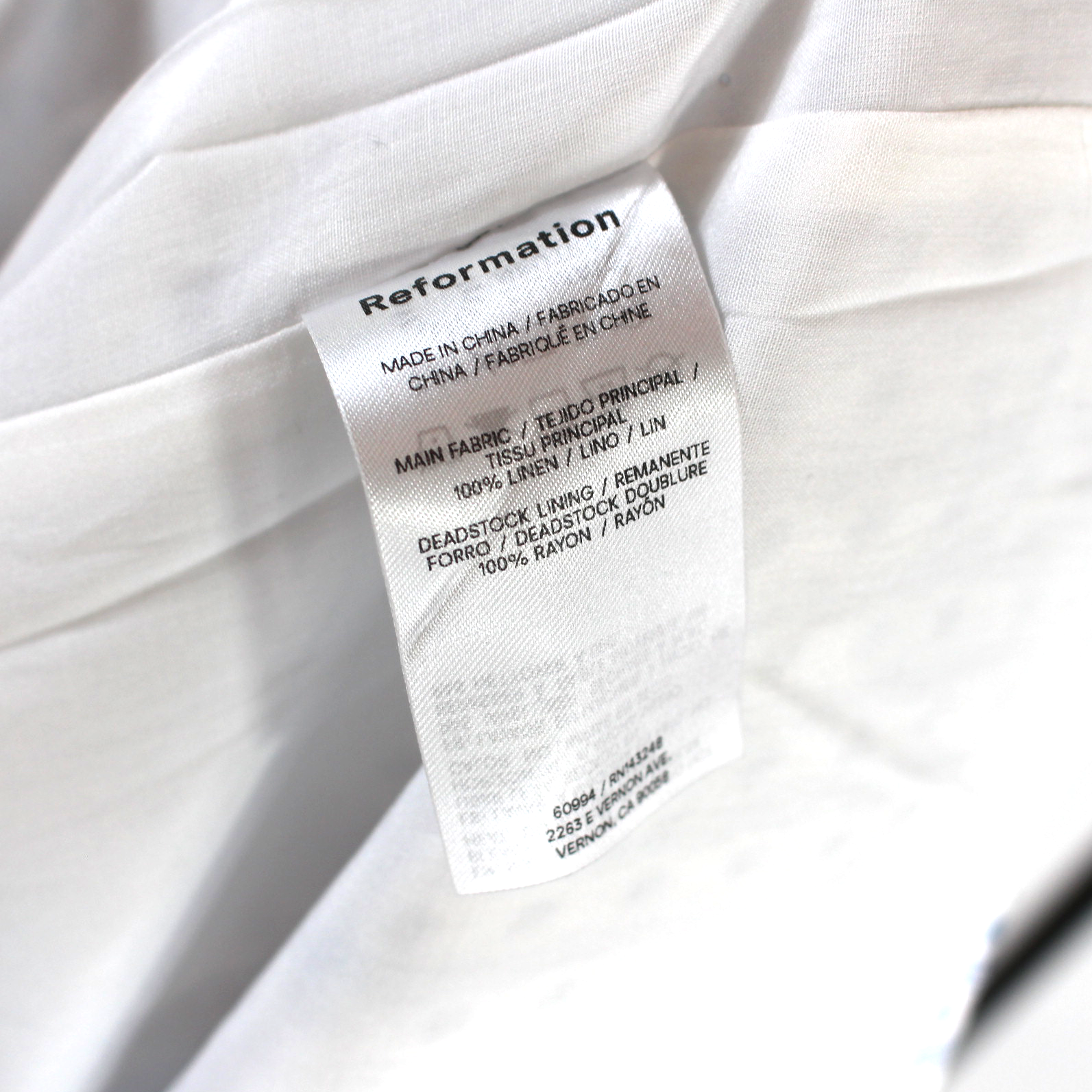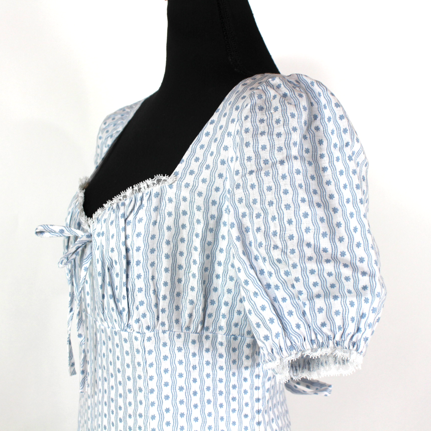 Reformation Cherise Linen Blue Motif Short Puff Sleeve Maxi Dress